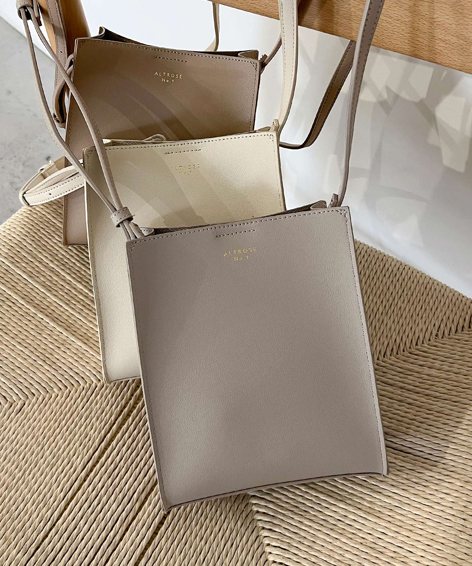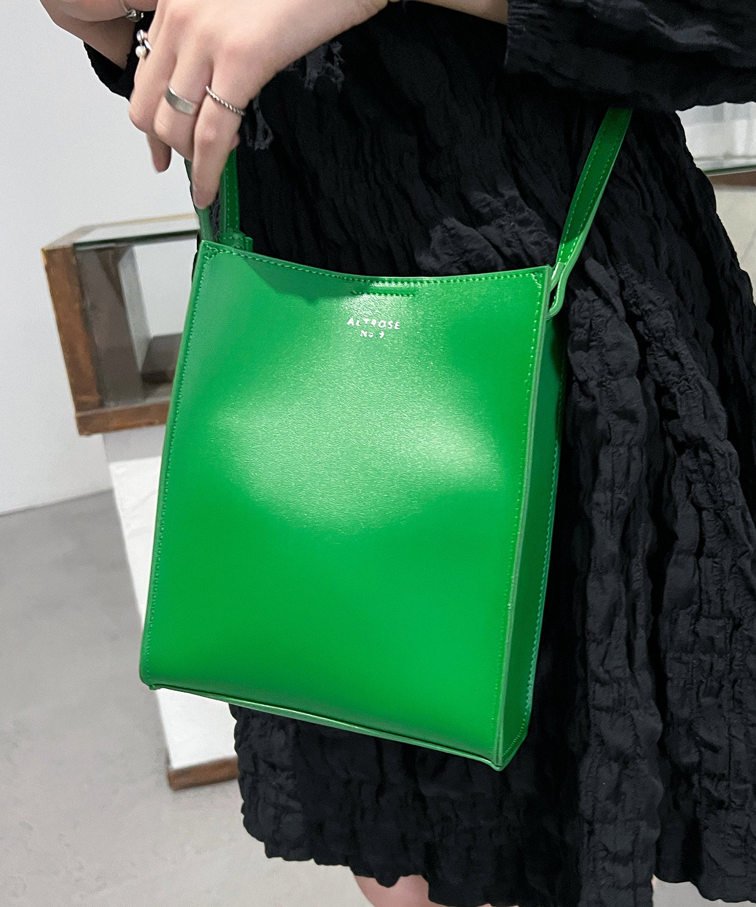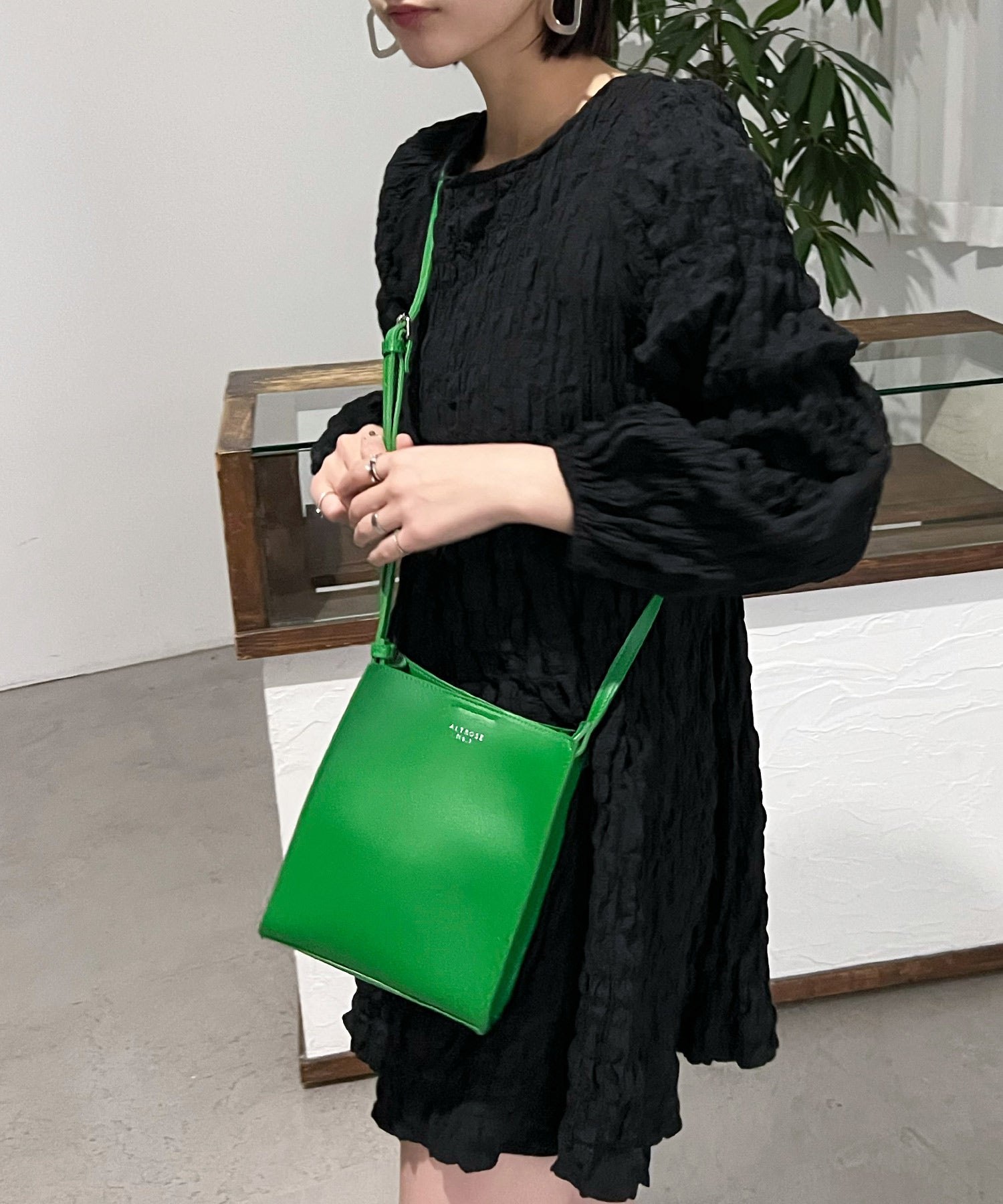 ベーシックなデザインのミニマムなスクエア型ショルダーバッグ。