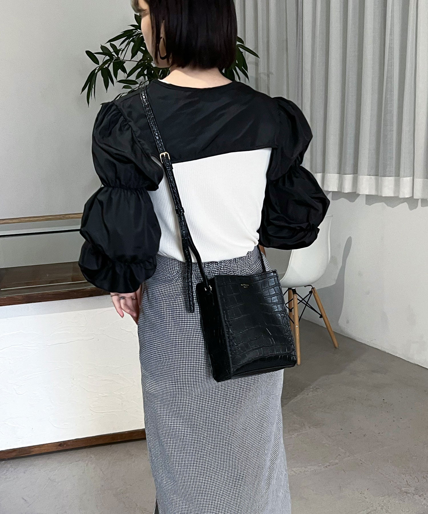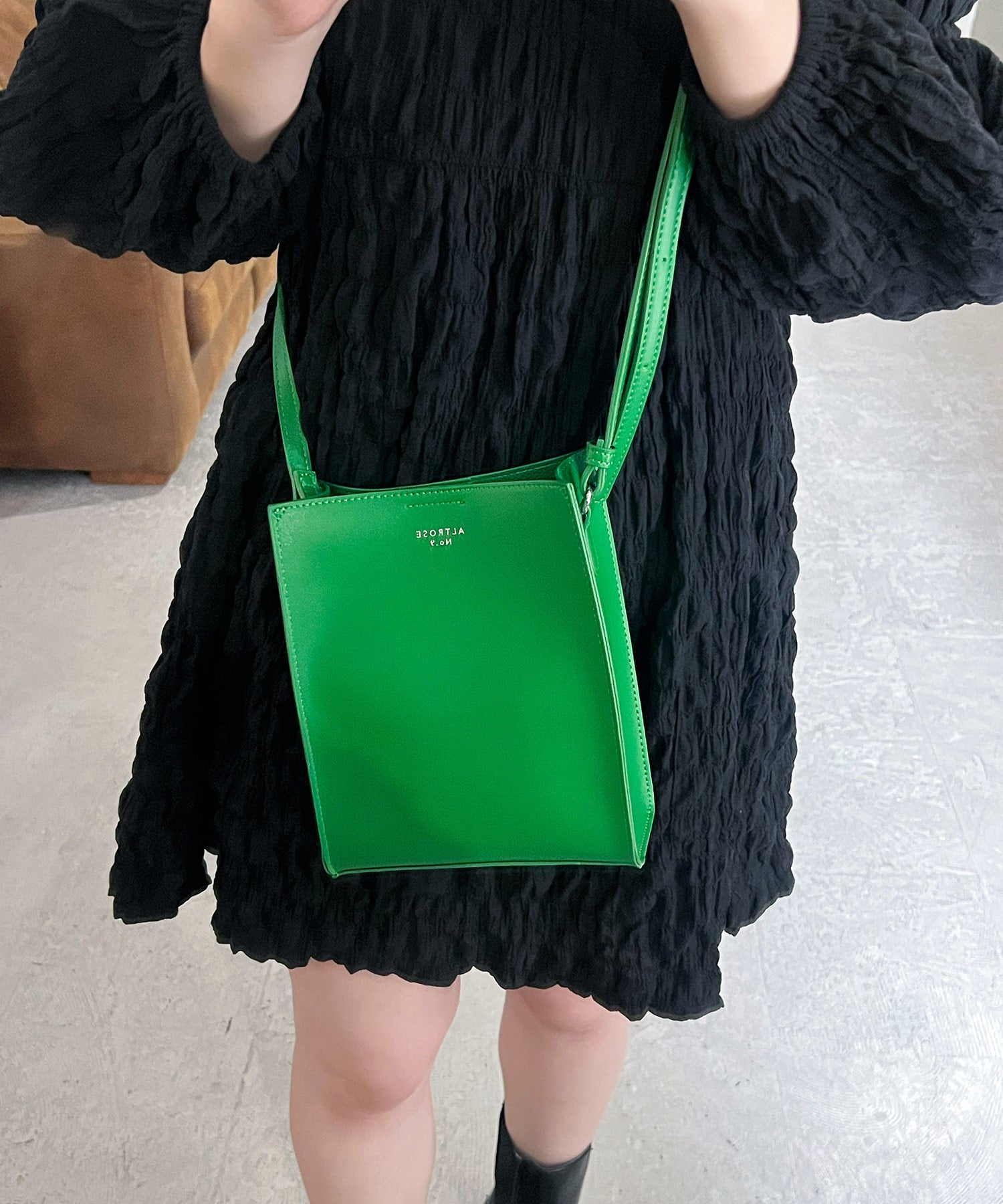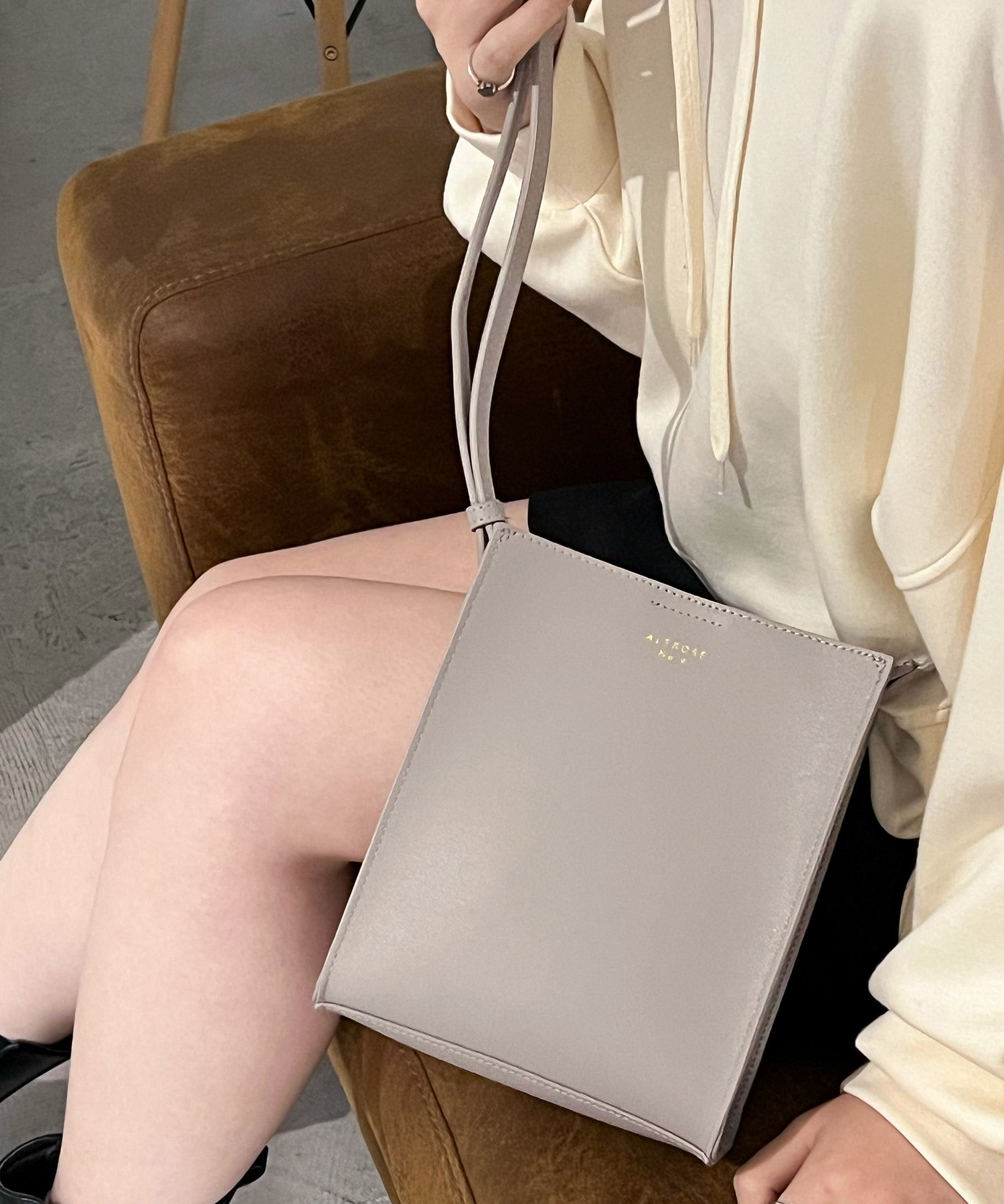 ベーシックなデザインのミニマムなスクエア型ショルダーバッグ。