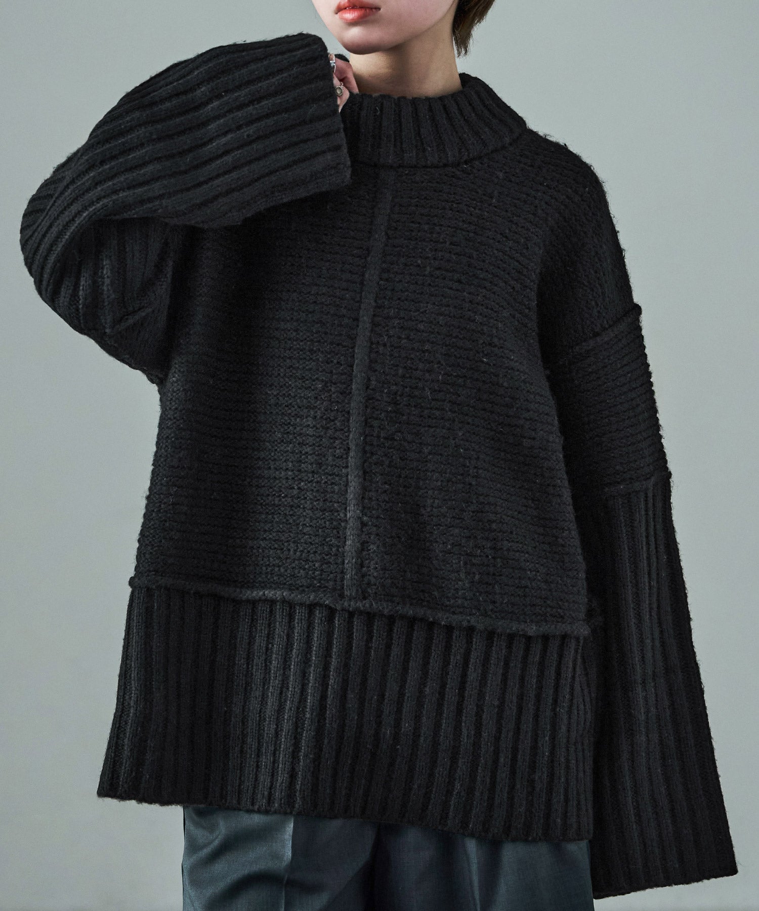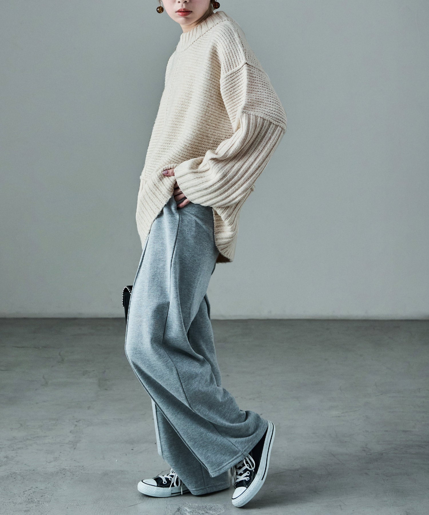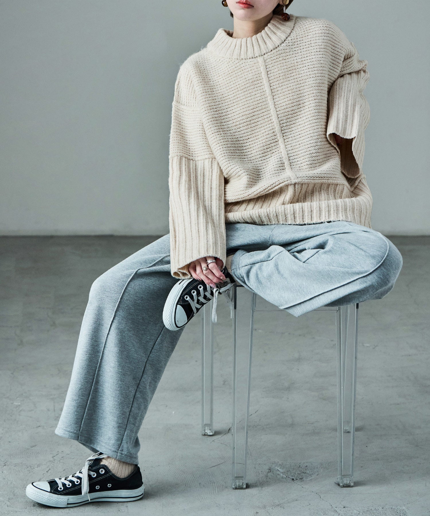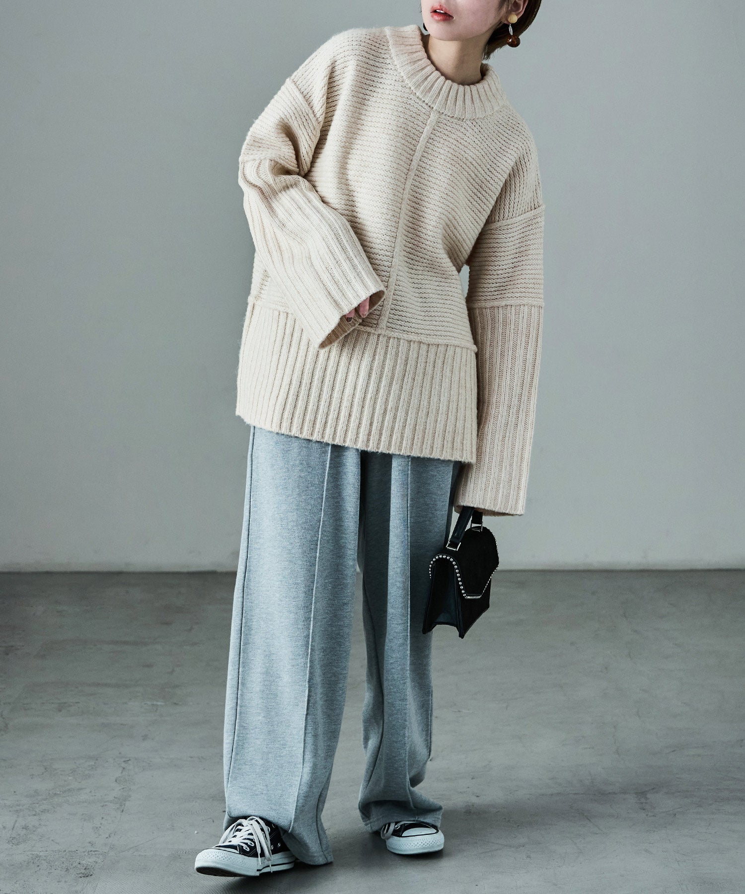 アウトシームのデザインや袖や裾の太リブ切り替えがモードな雰囲気もプラス。