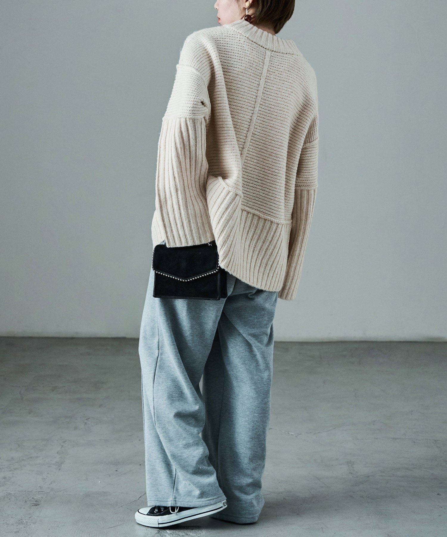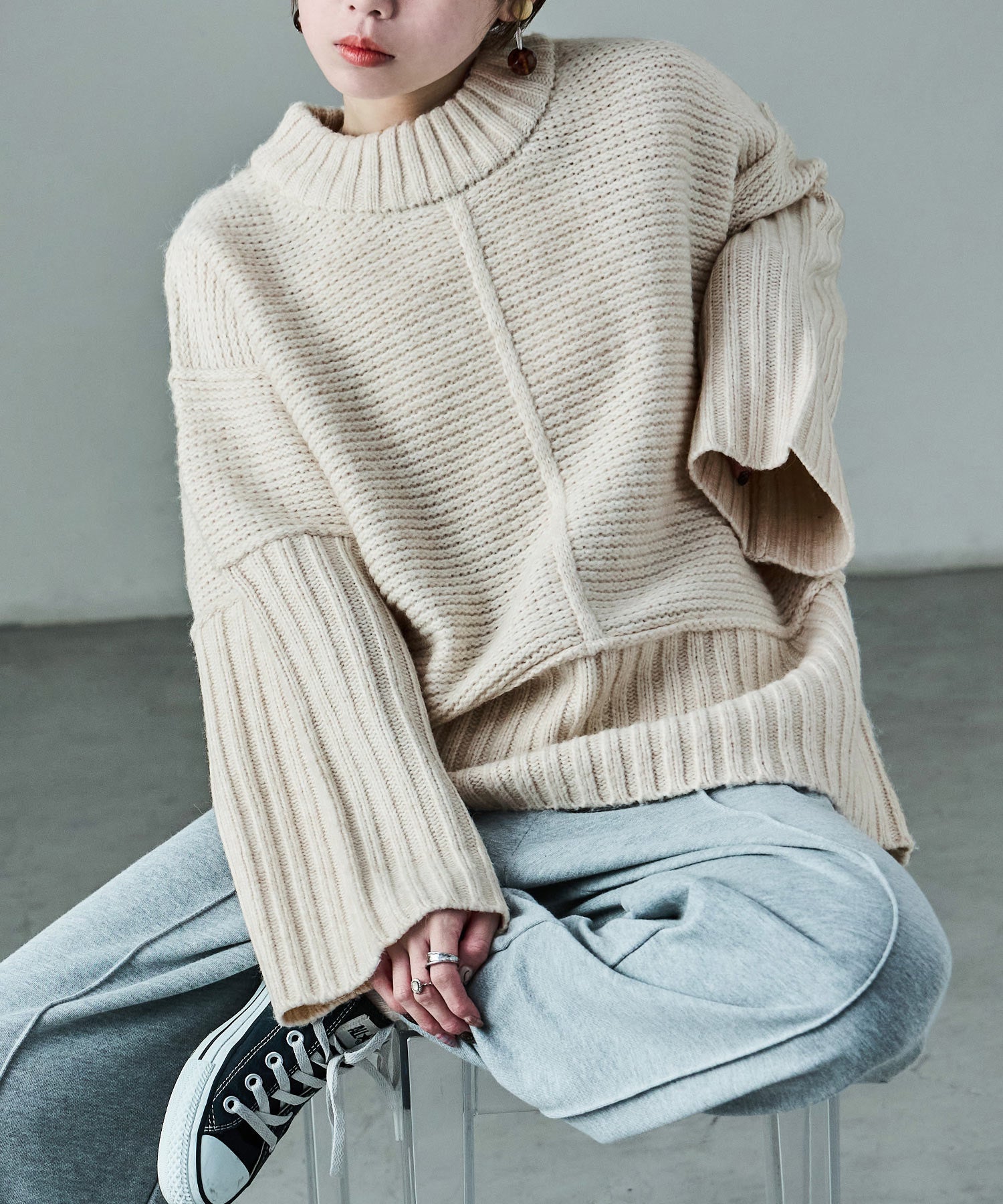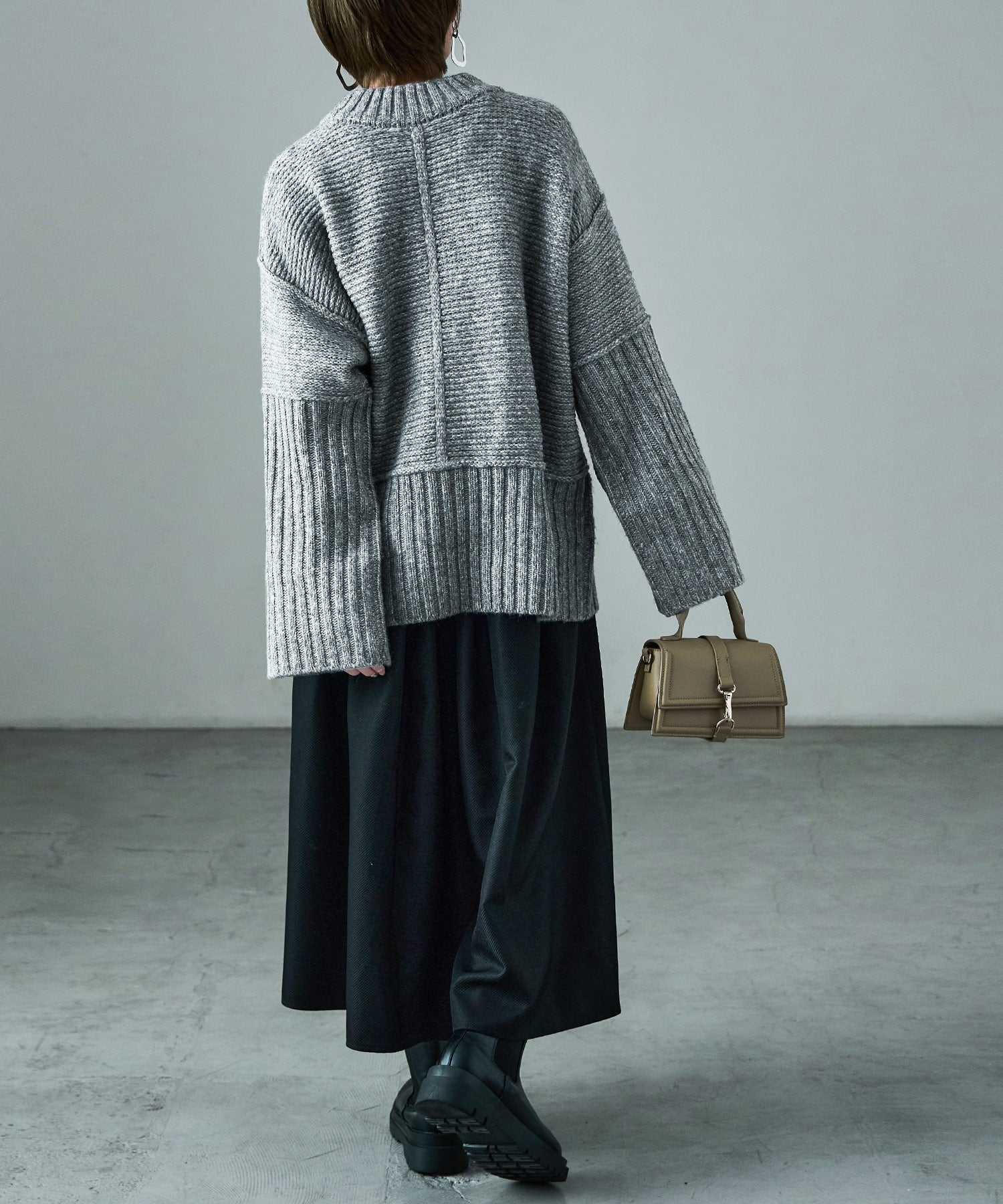 アウトシームのデザインや袖や裾の太リブ切り替えがモードな雰囲気もプラス。