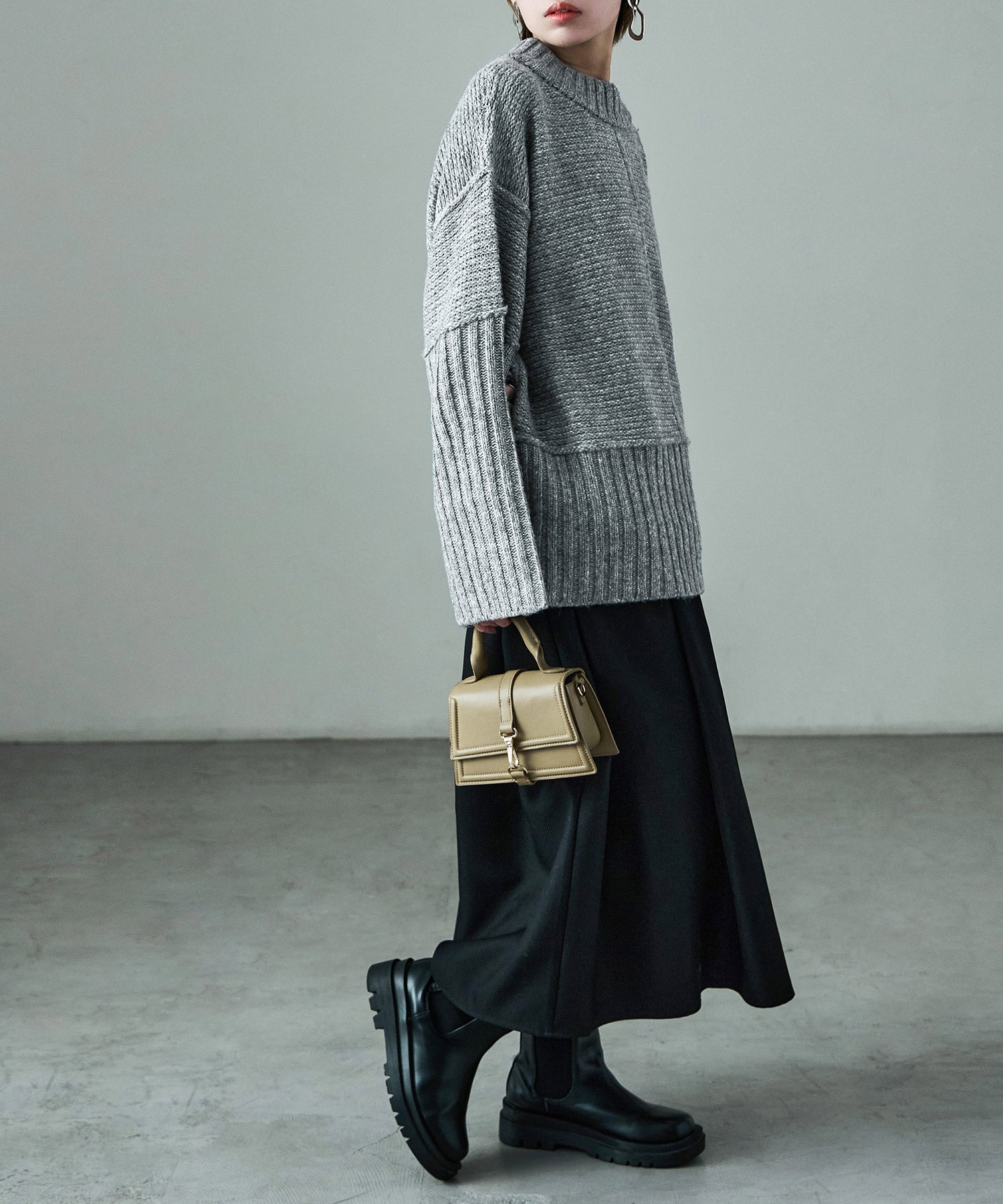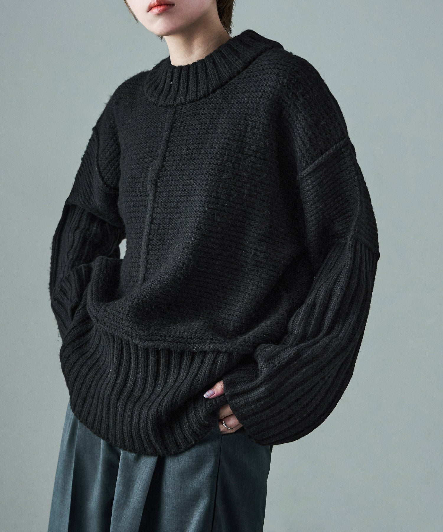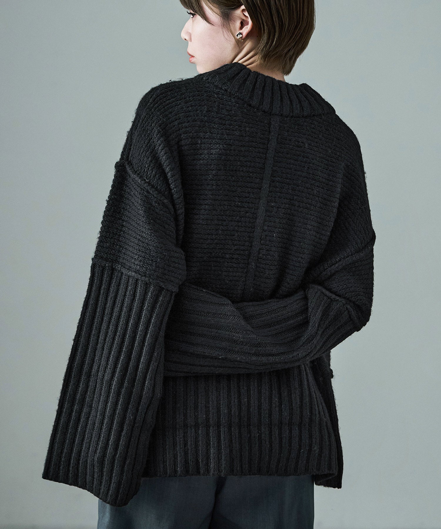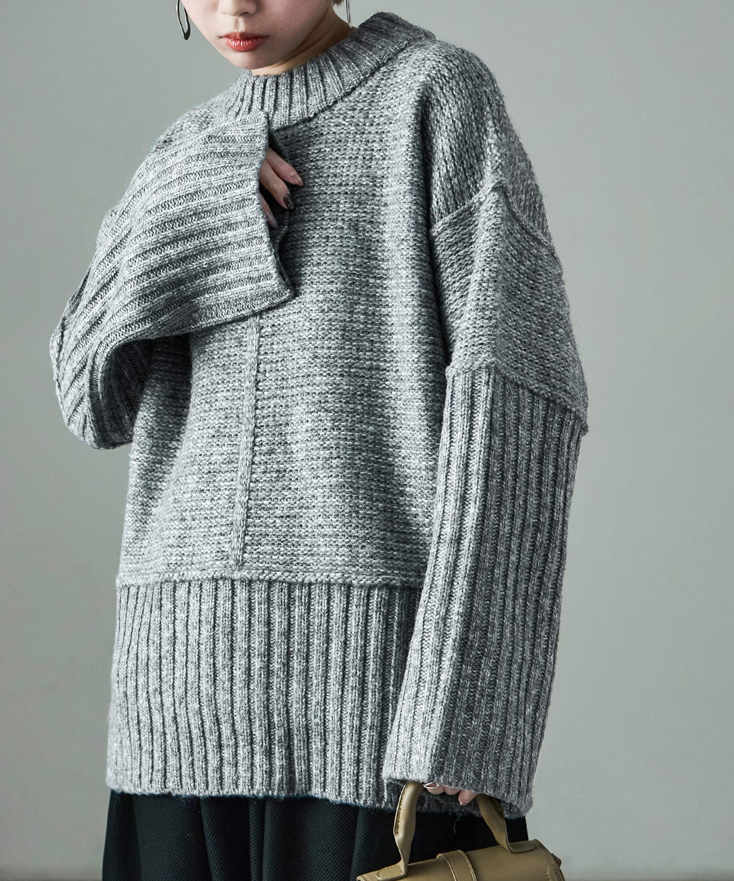 アウトシームのデザインや袖や裾の太リブ切り替えがモードな雰囲気もプラス。