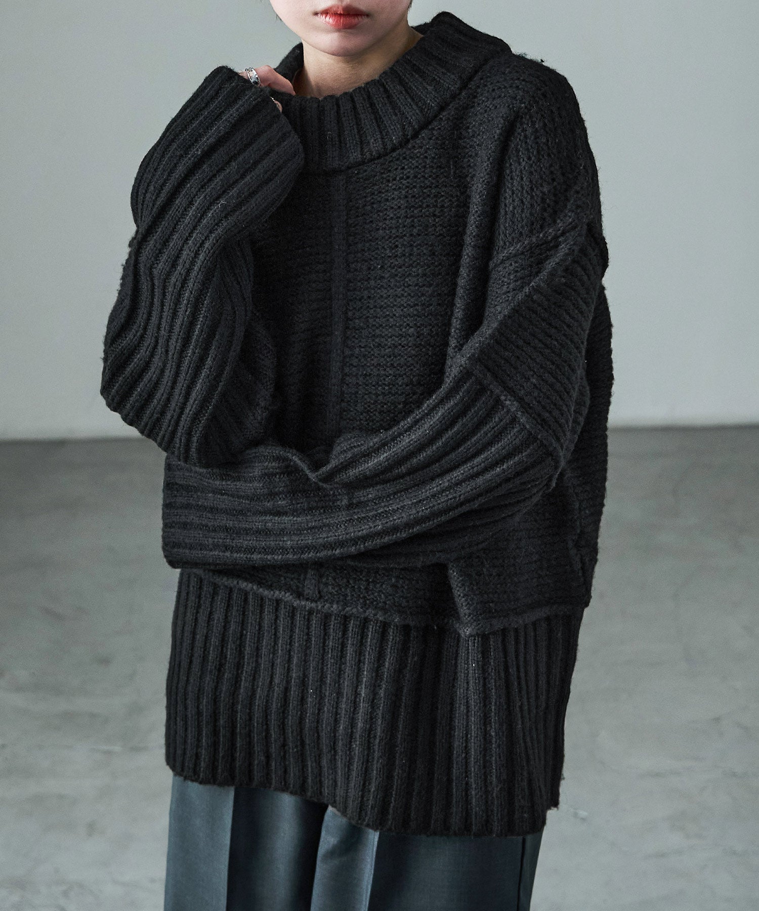 Zname オーバーサイズ アウトシームニットプルオーバー