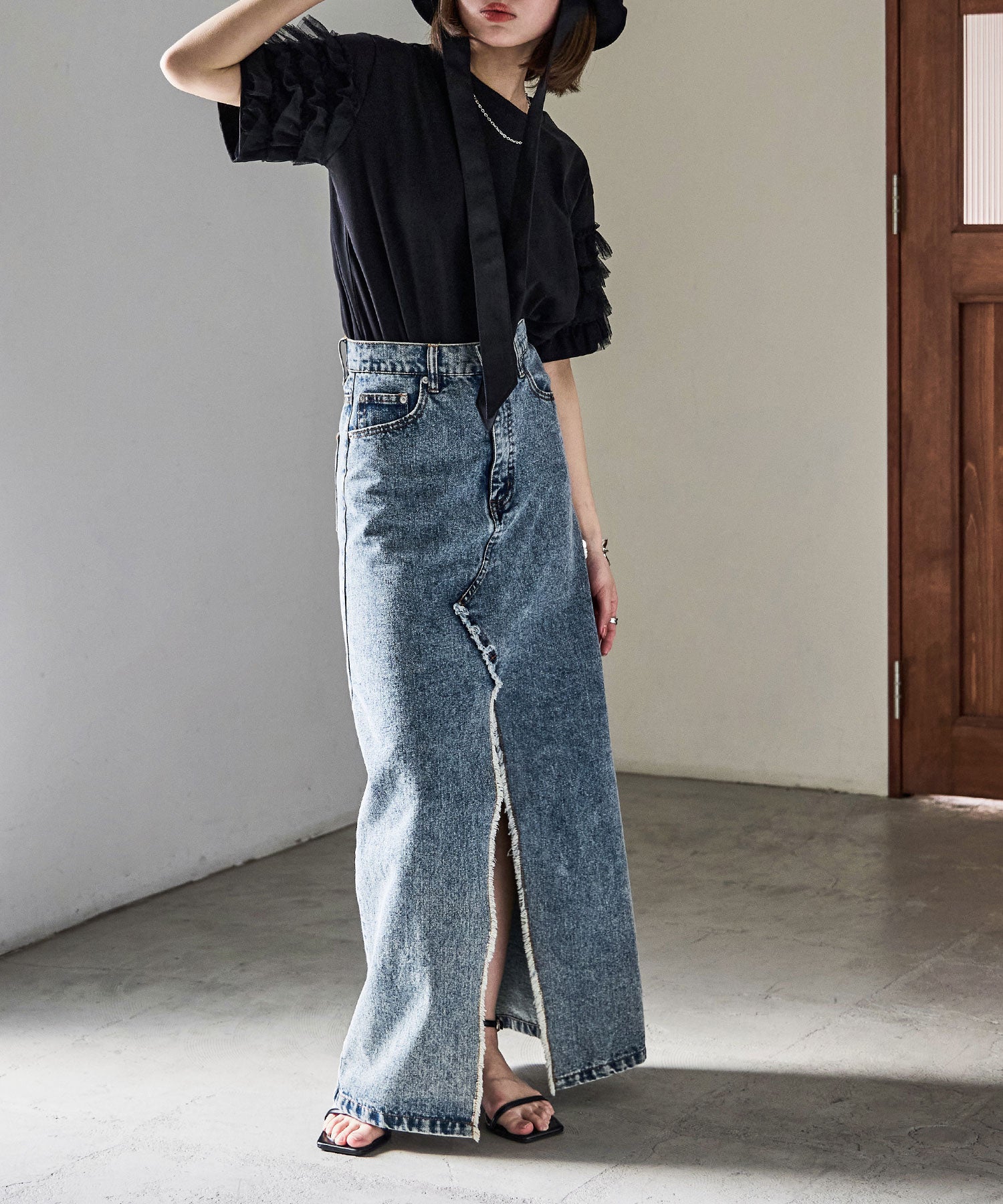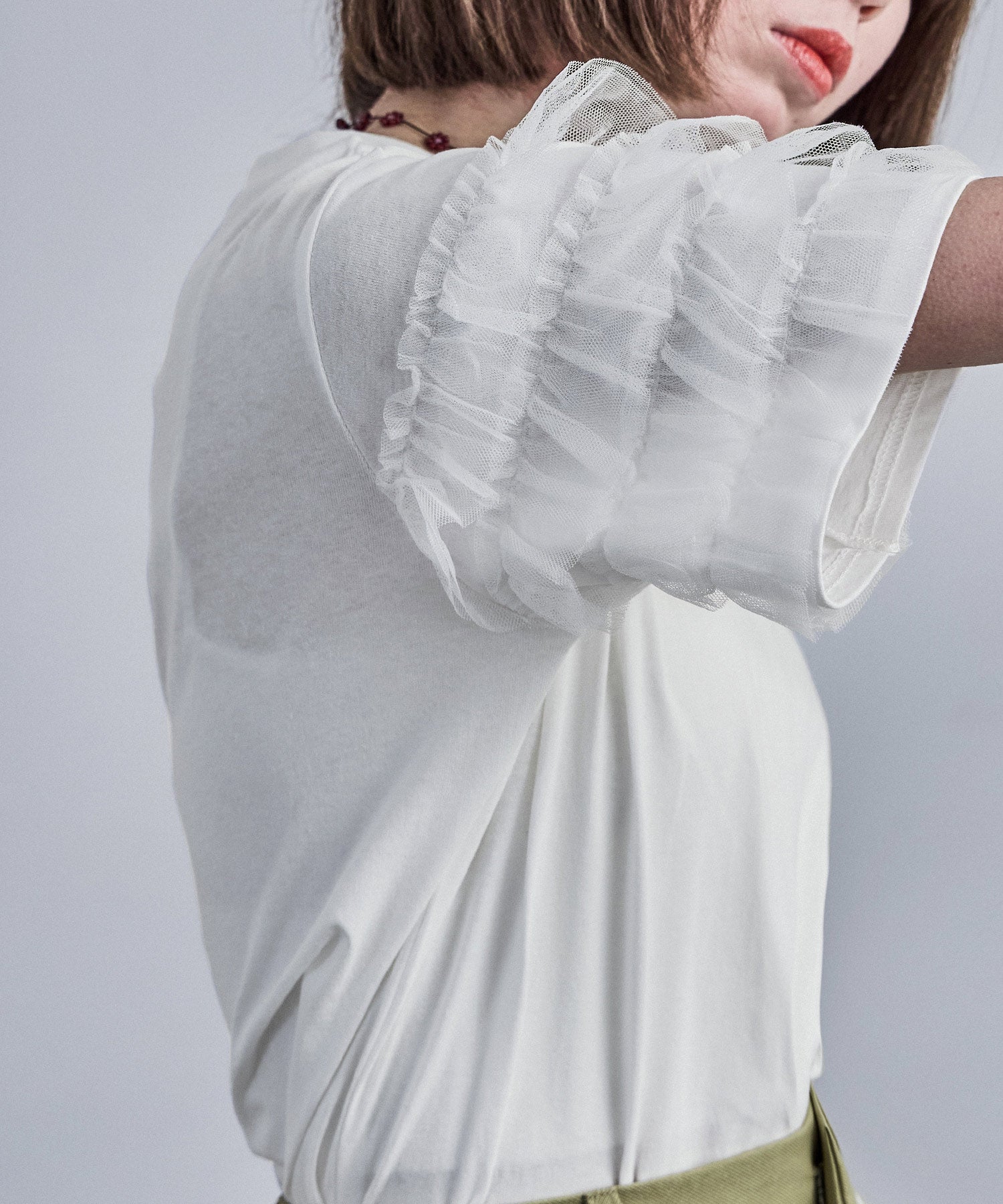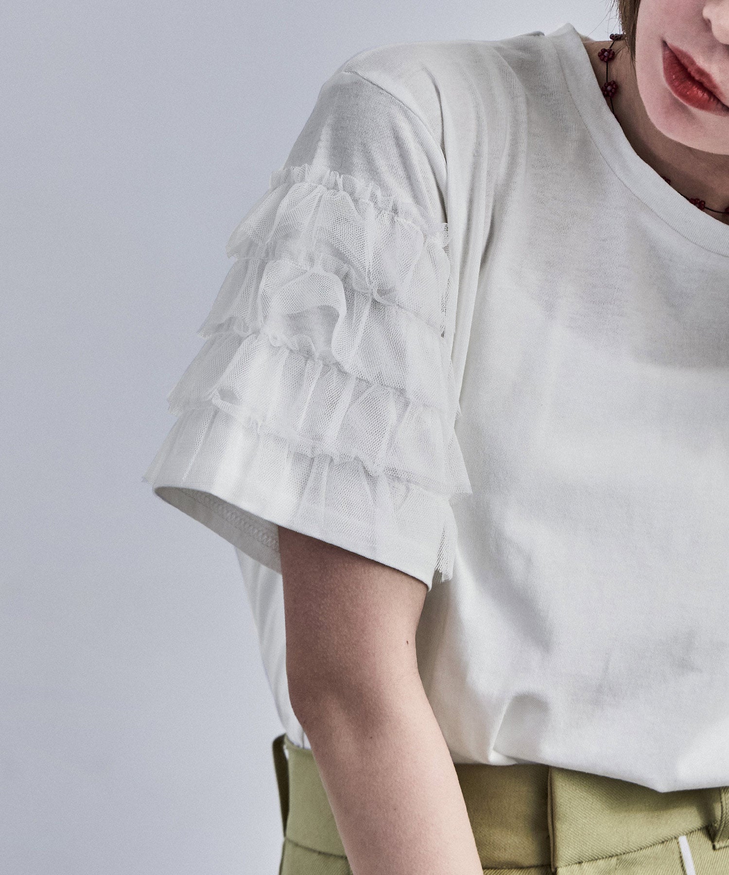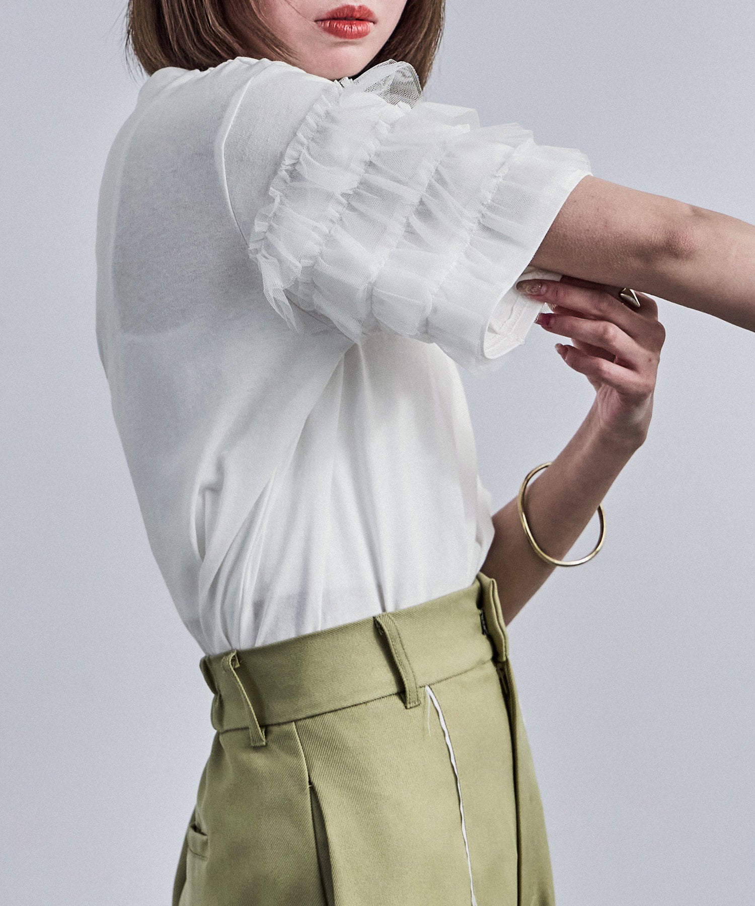カジュアルすぎないフェミニンな雰囲気のTシャツは1枚で主役級。