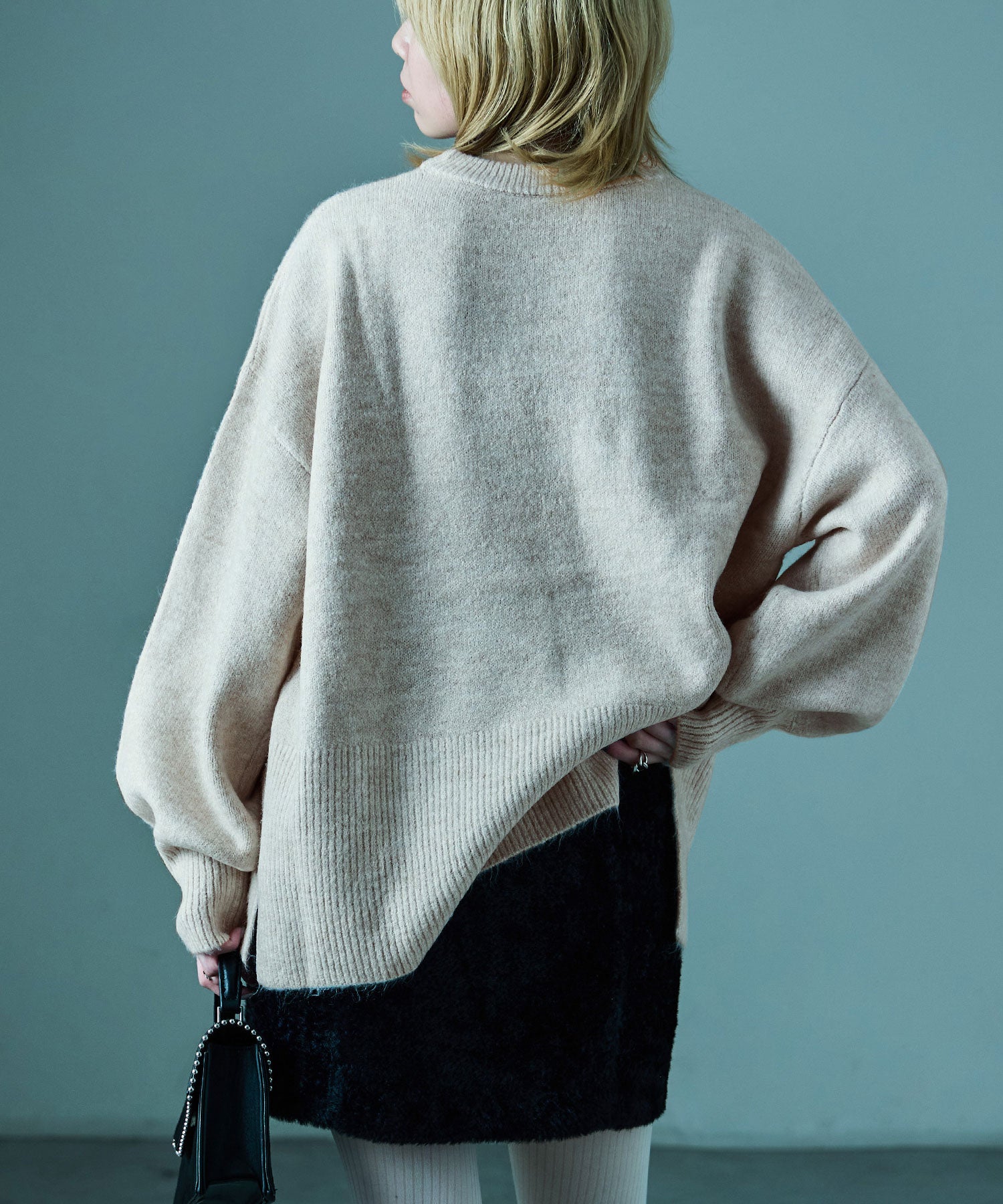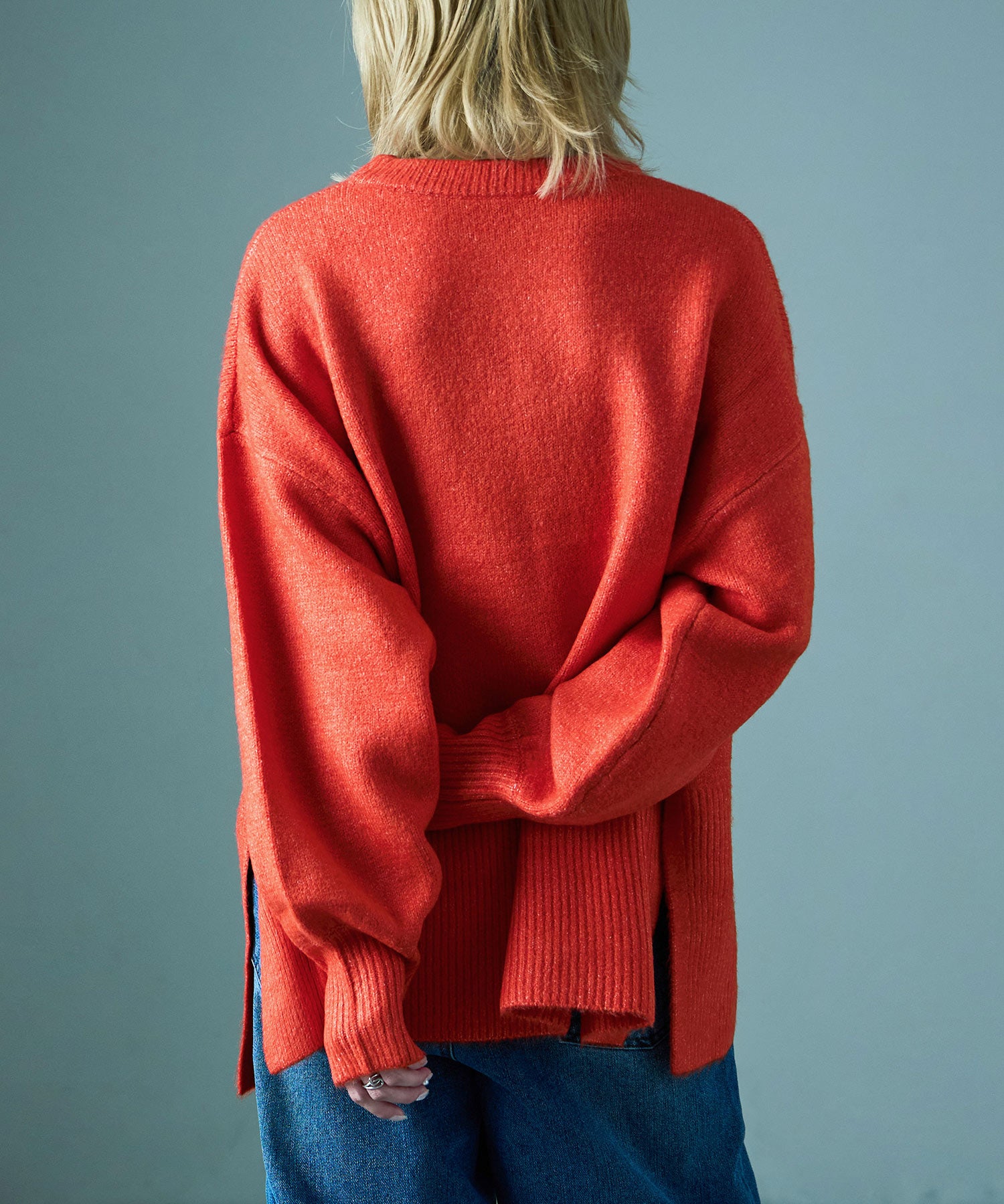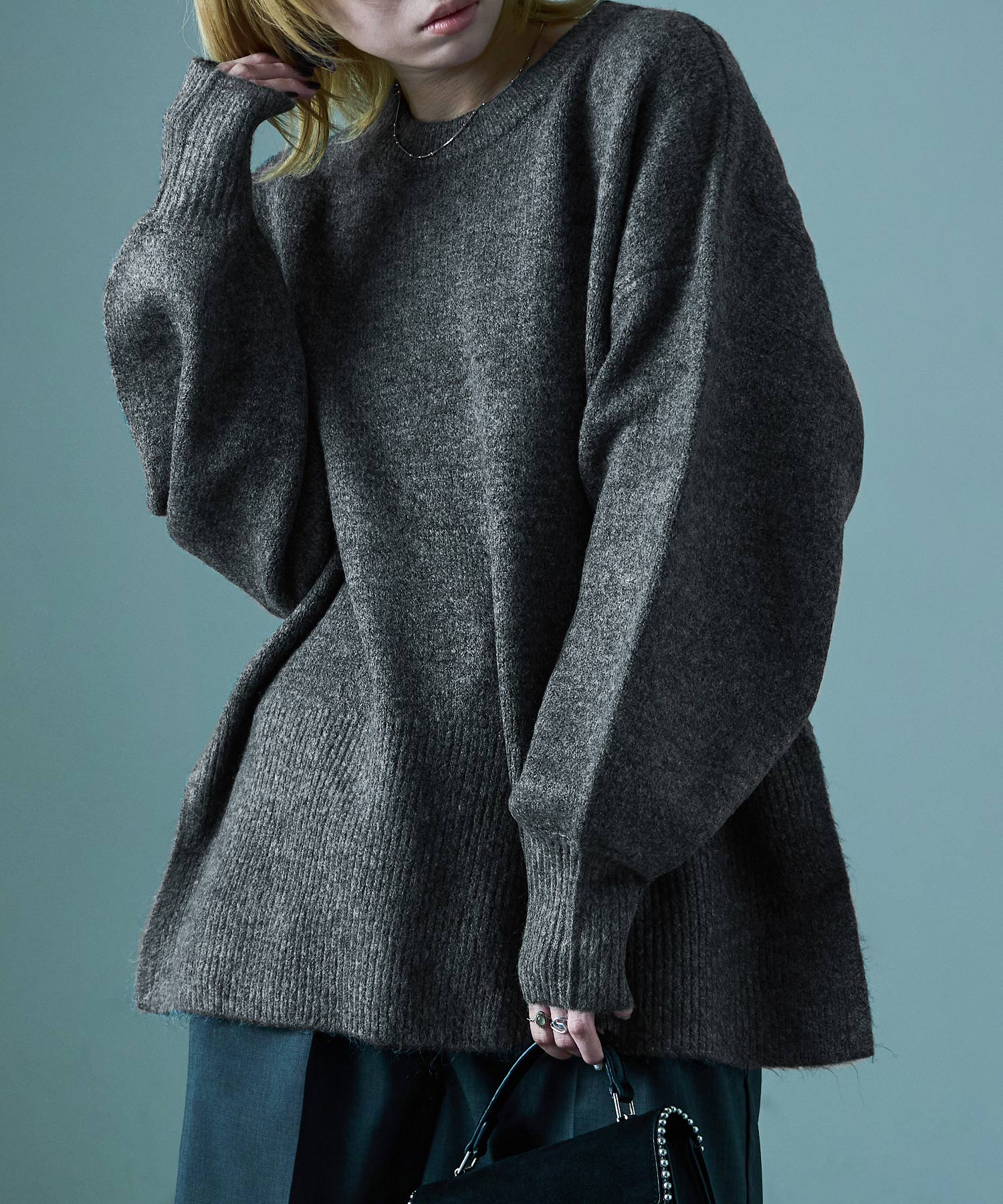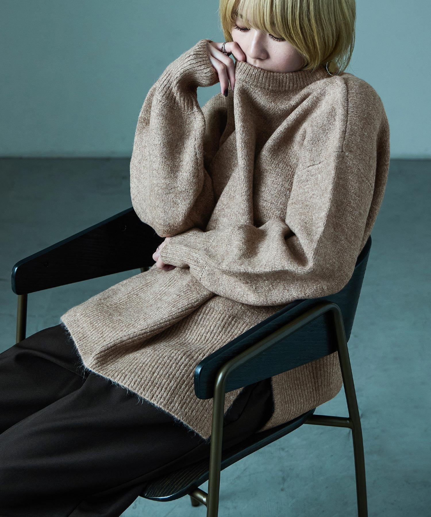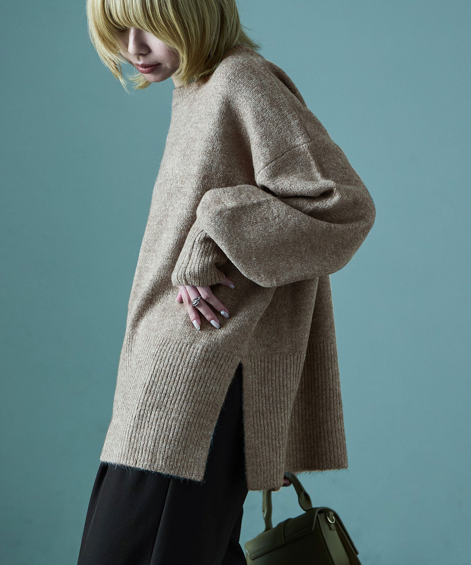 Zname サイドスリット オーバーサイズ ロングニットプルオーバー