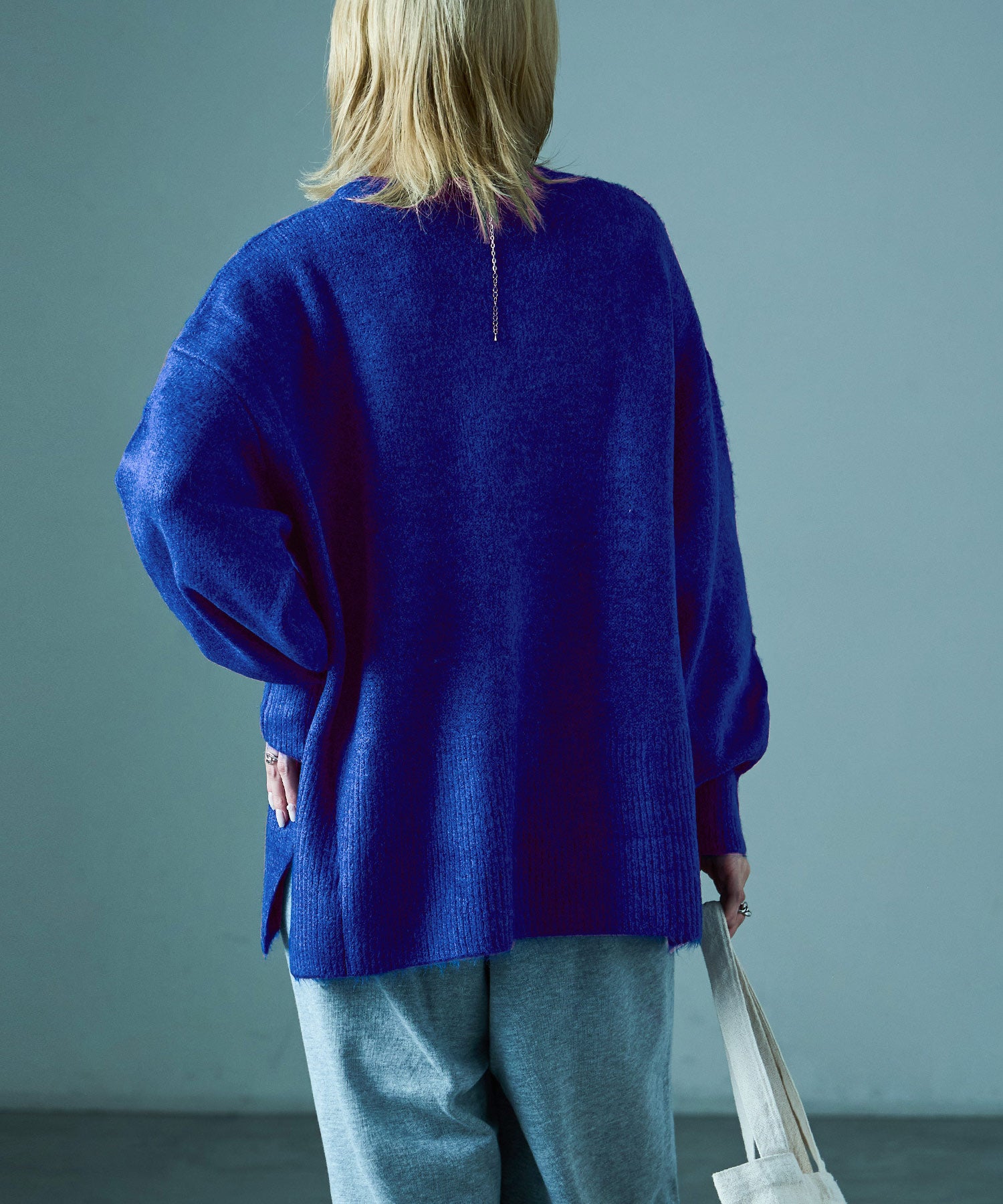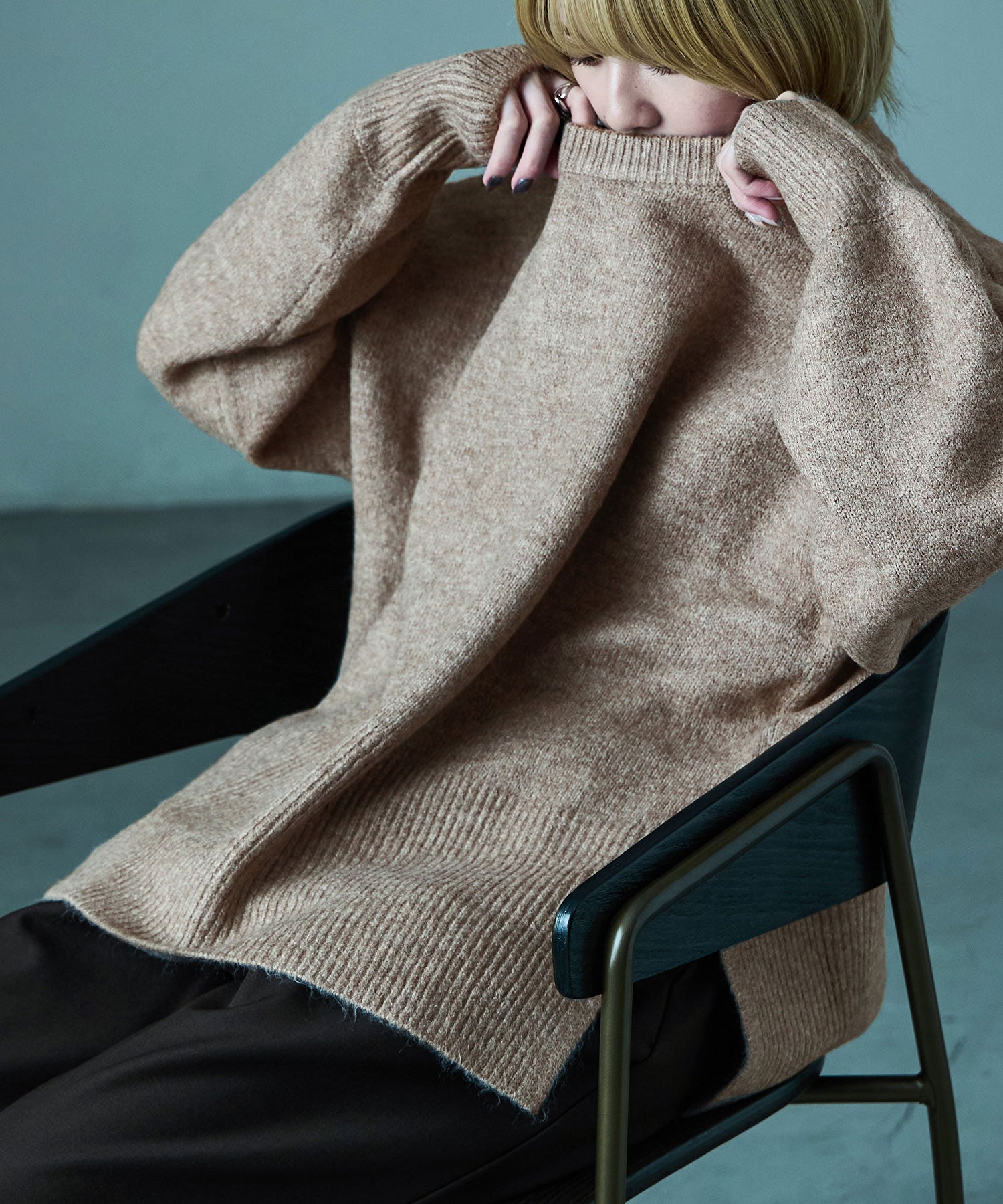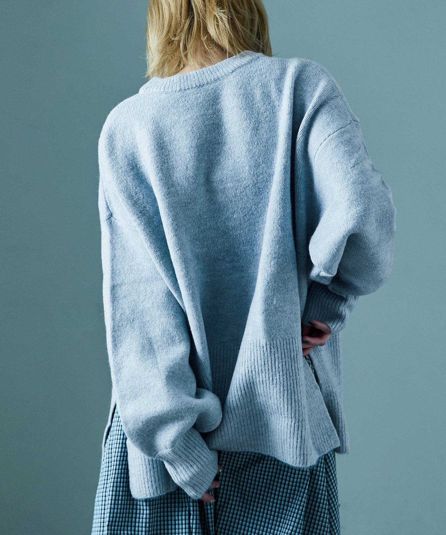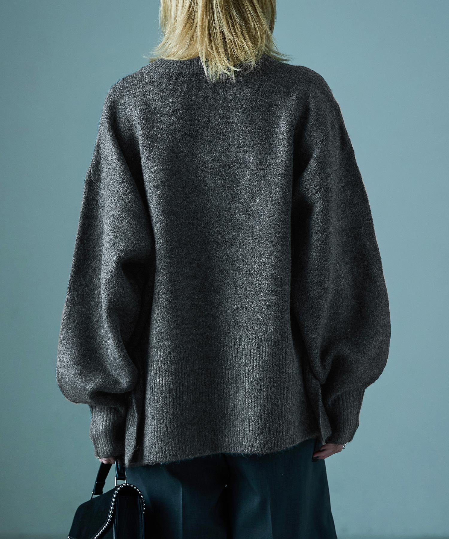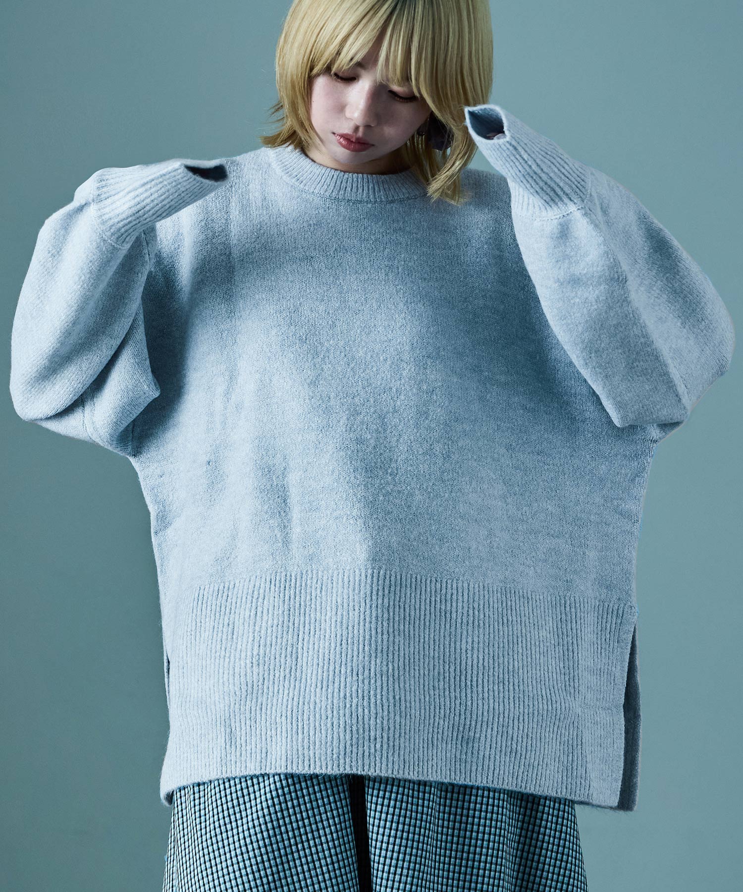Zname サイドスリット オーバーサイズ ロングニットプルオーバー