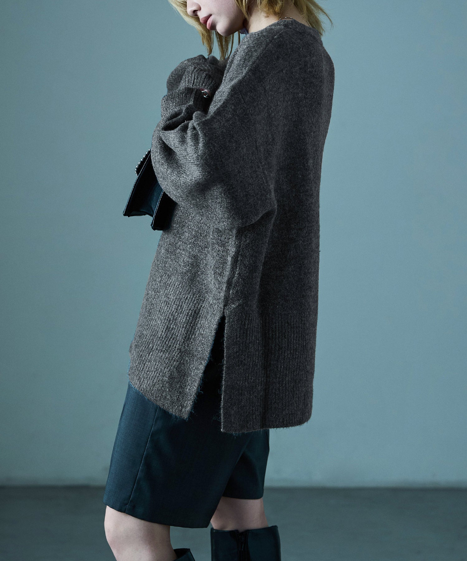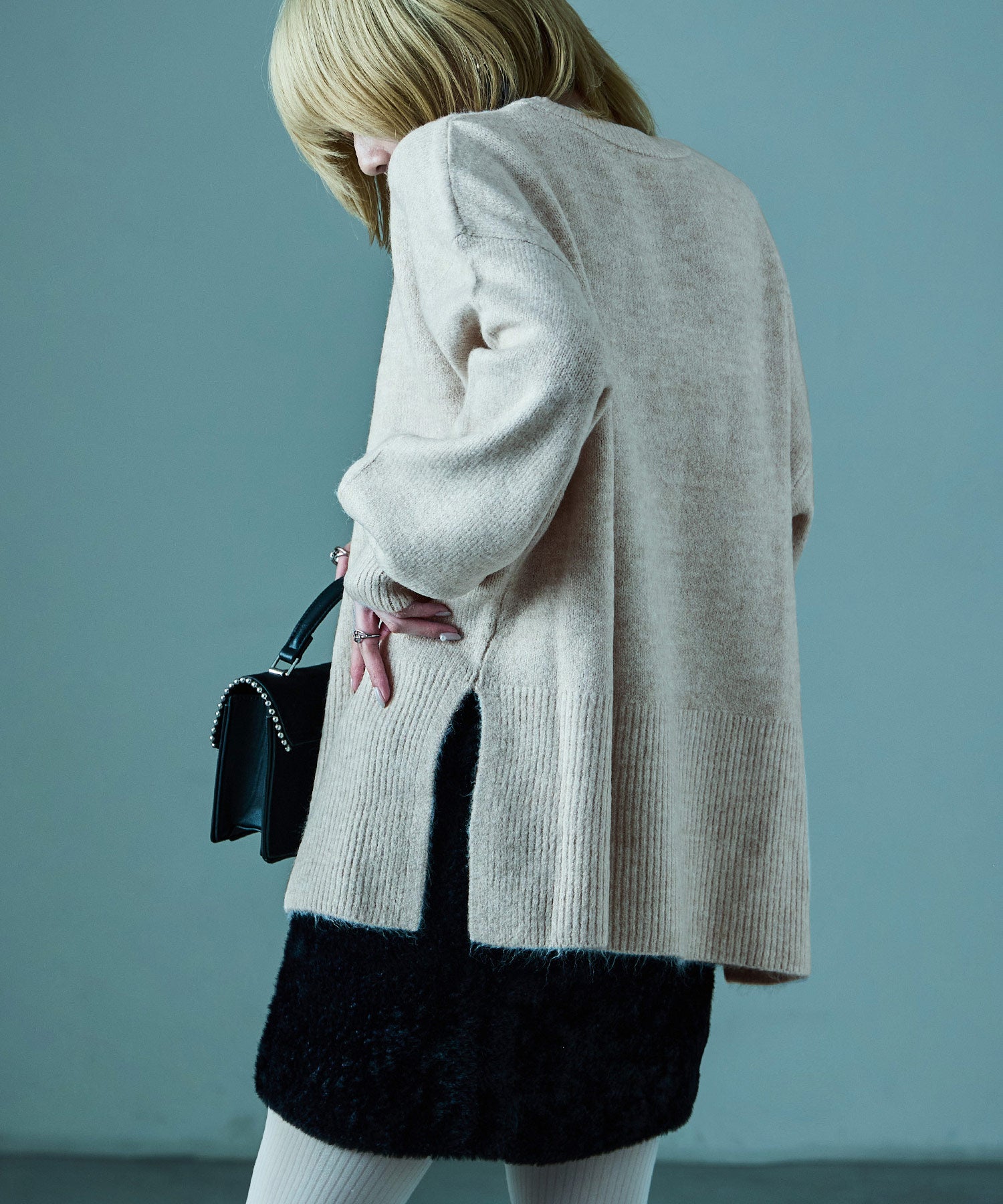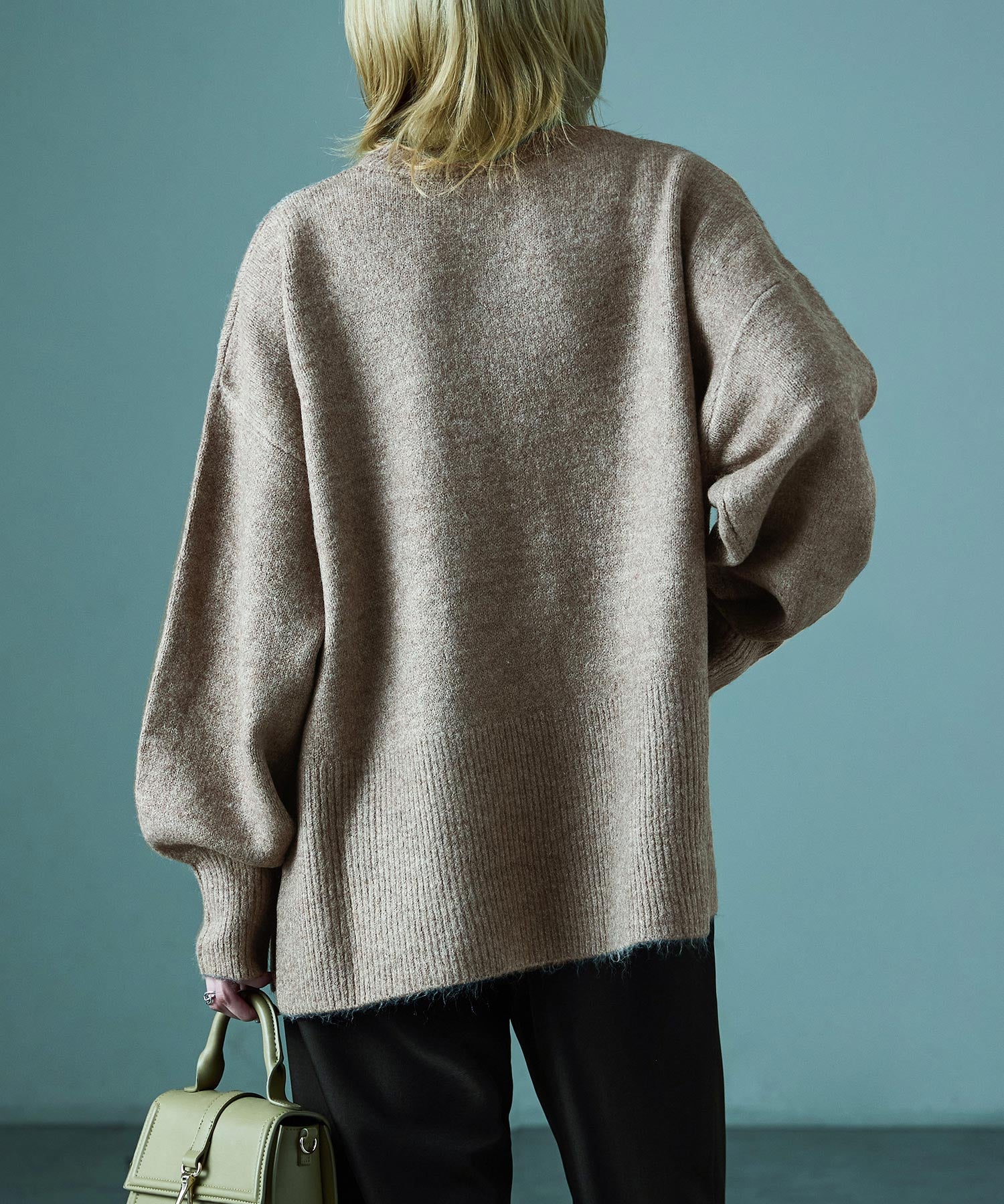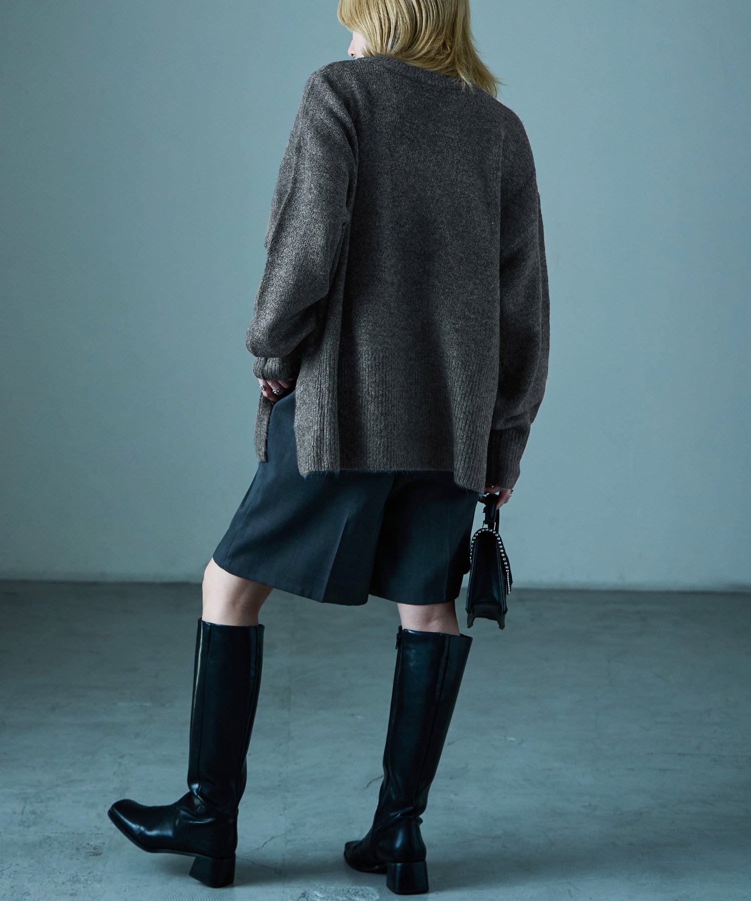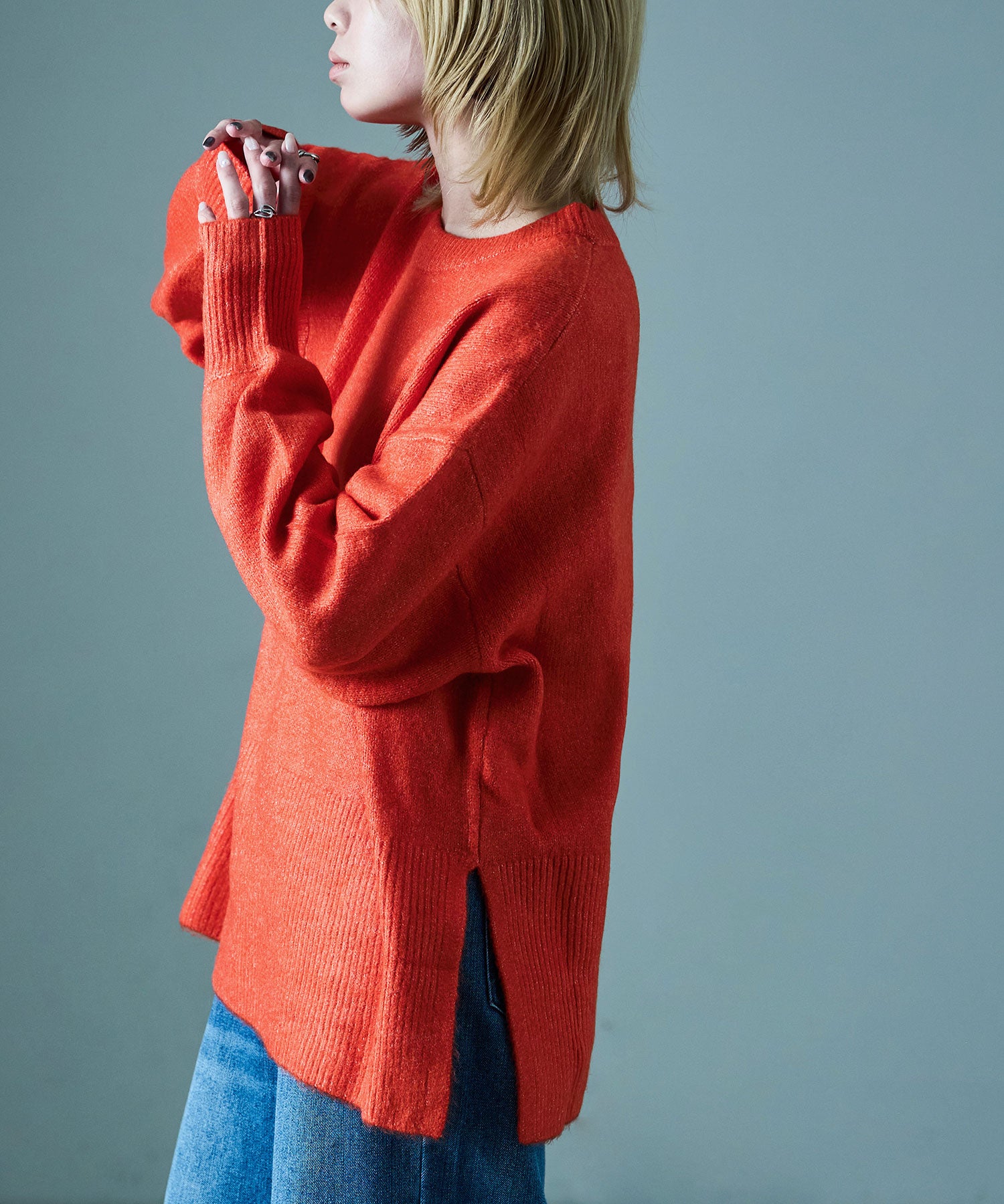 Zname サイドスリット オーバーサイズ ロングニットプルオーバー