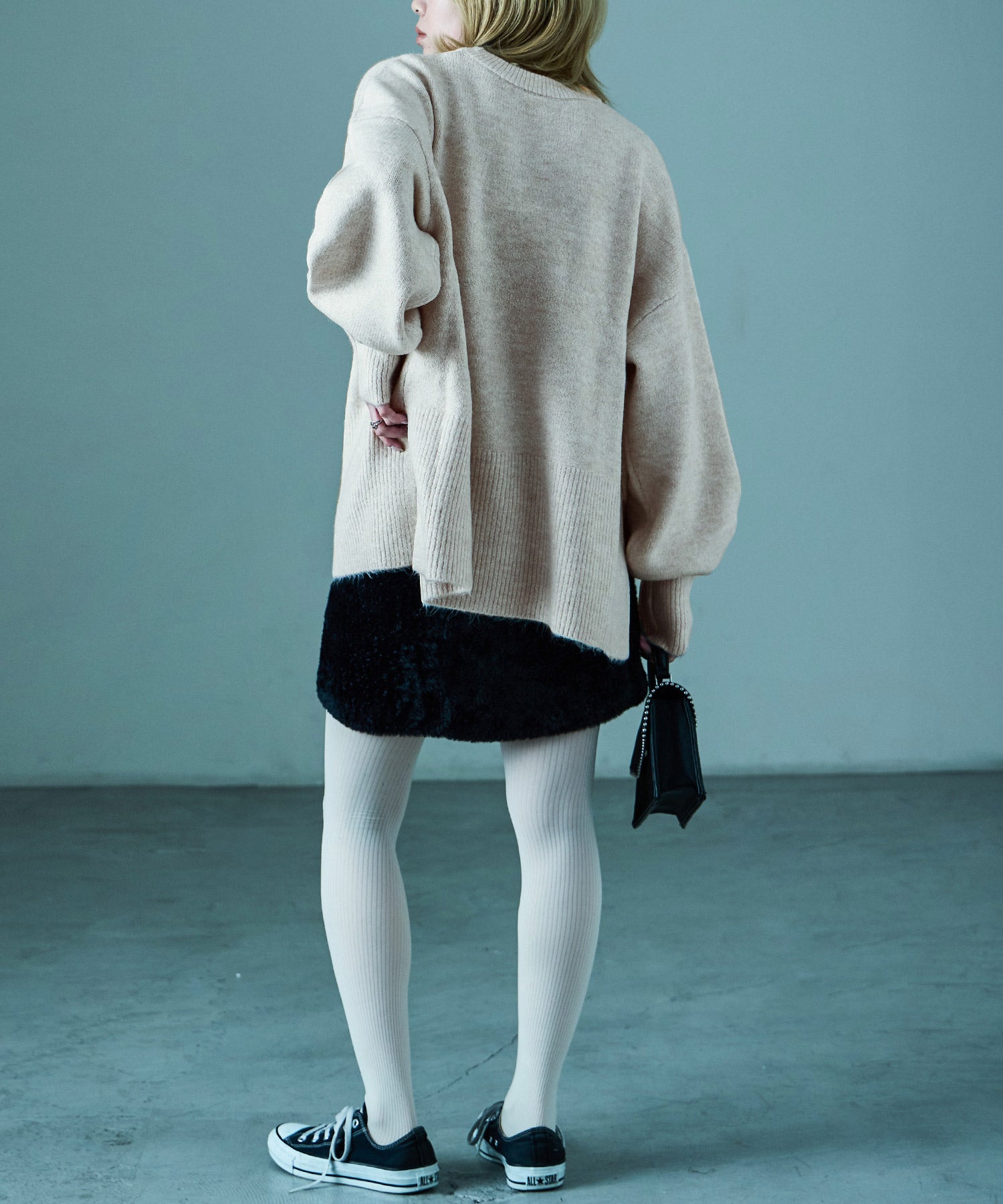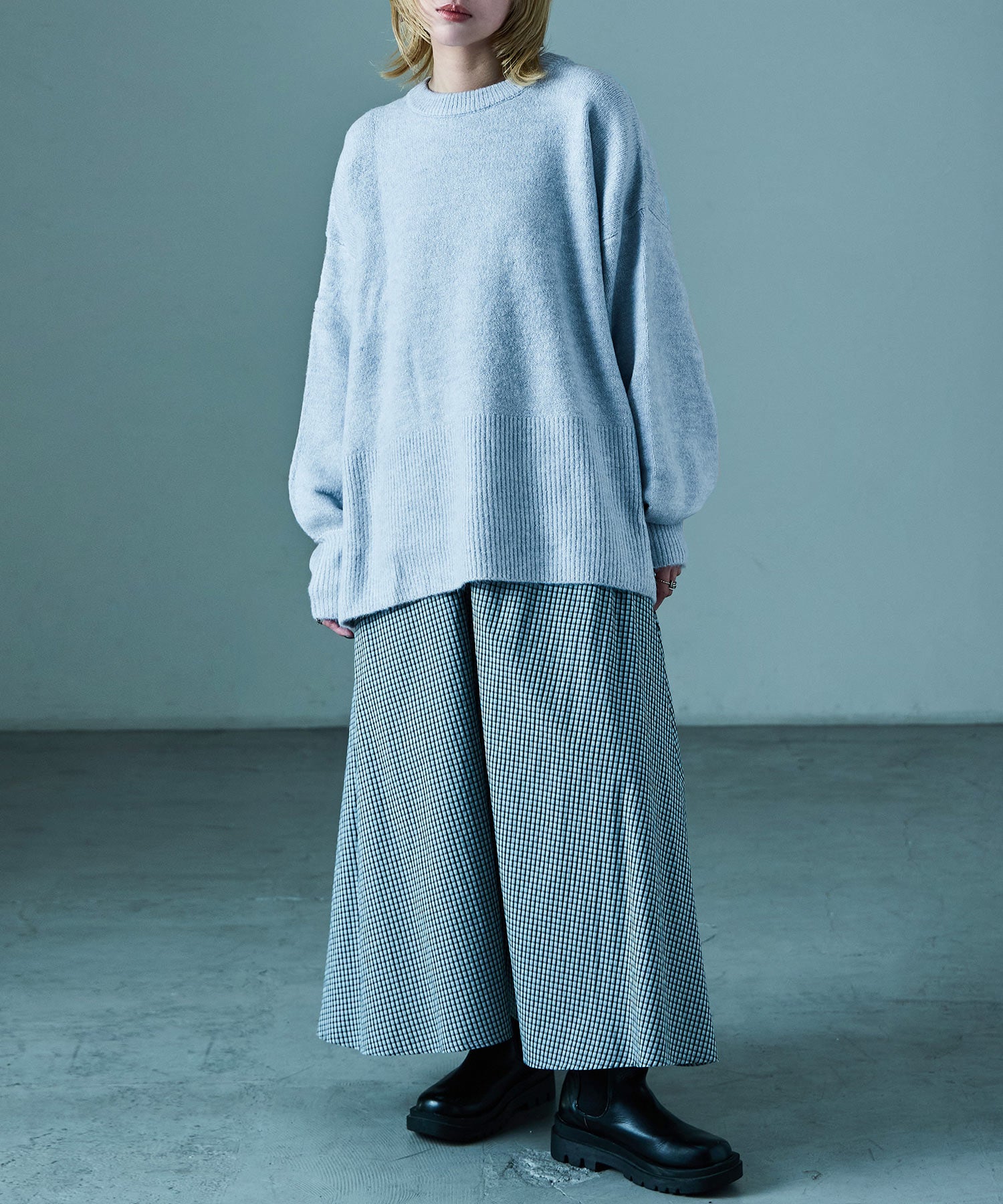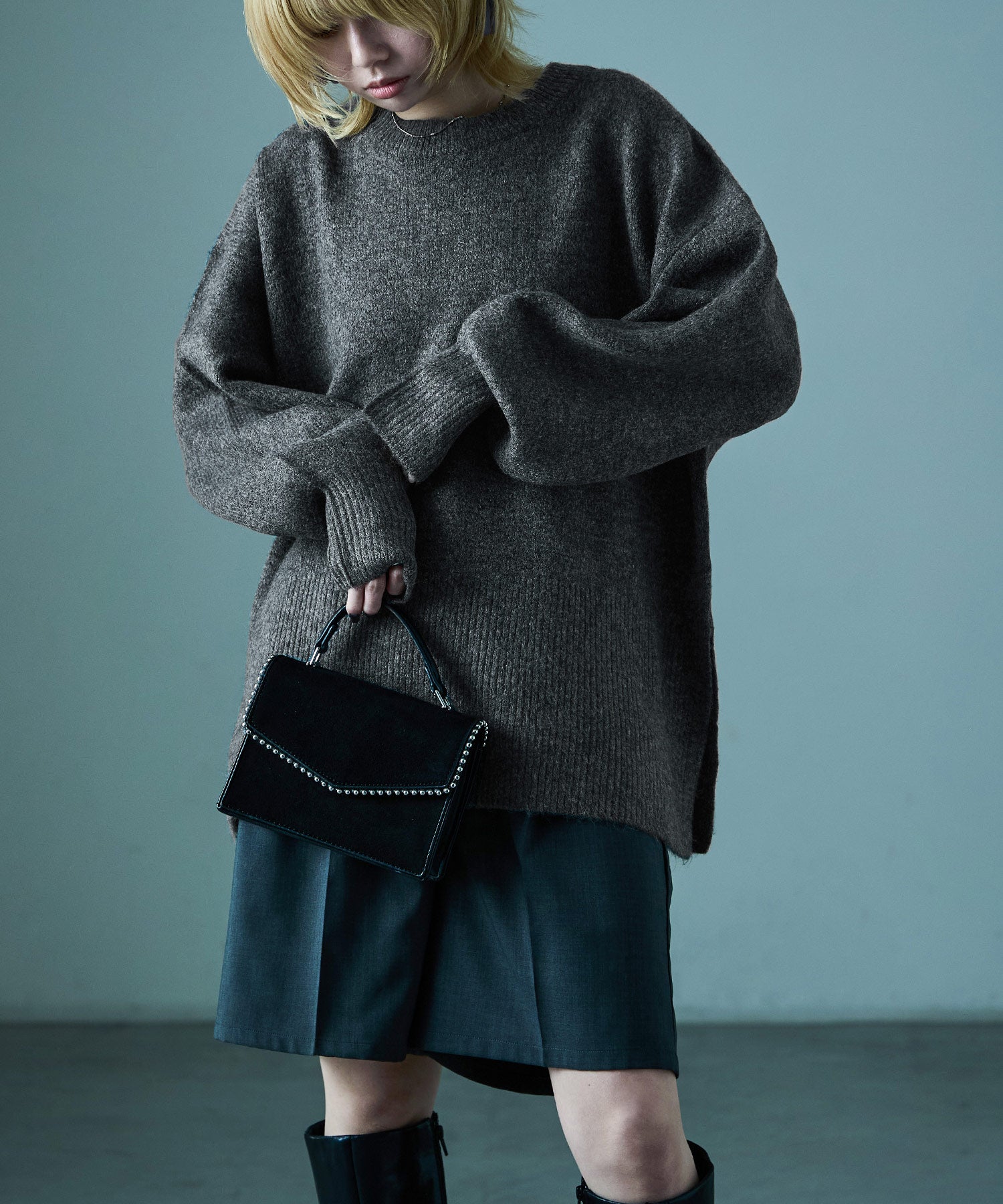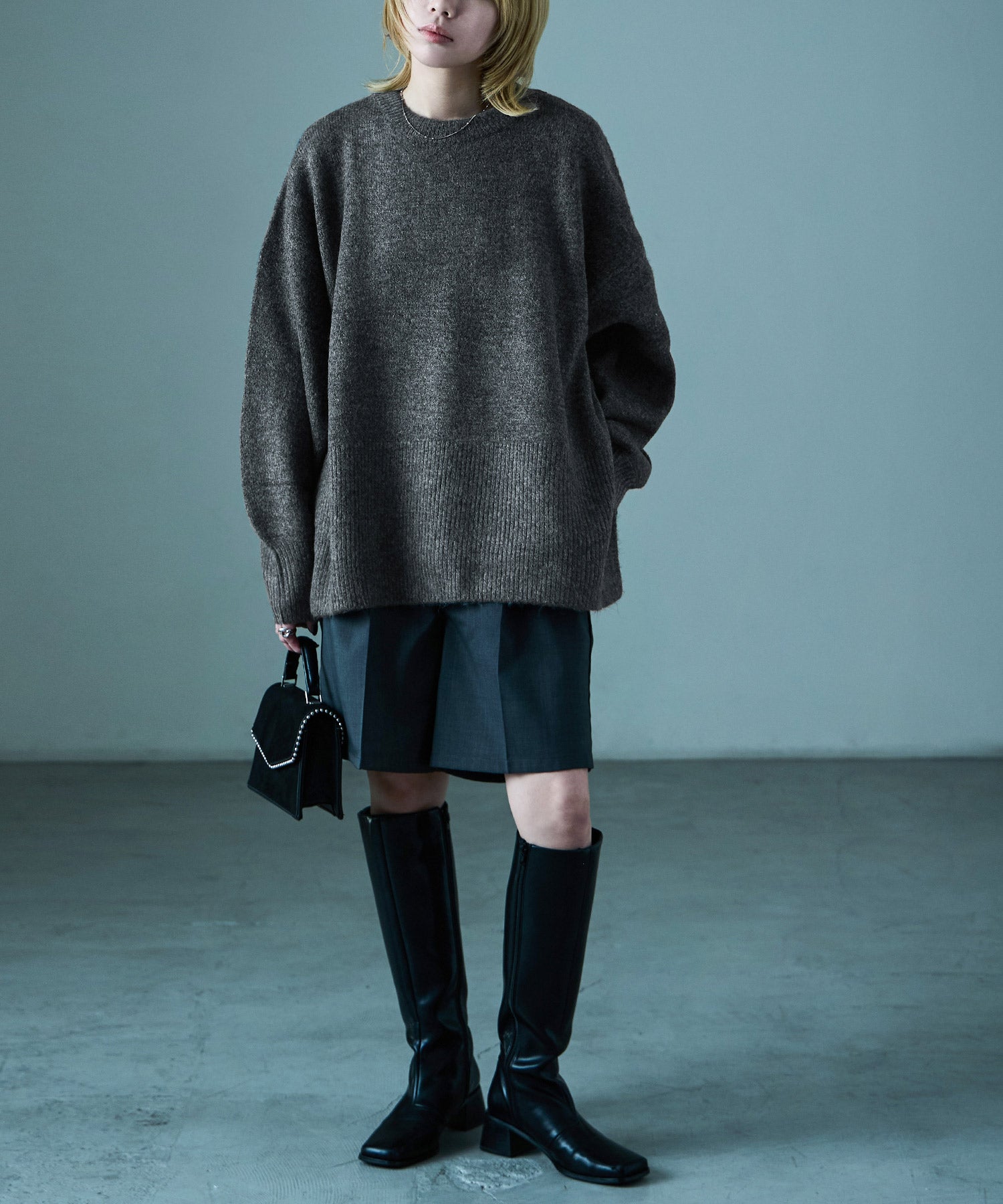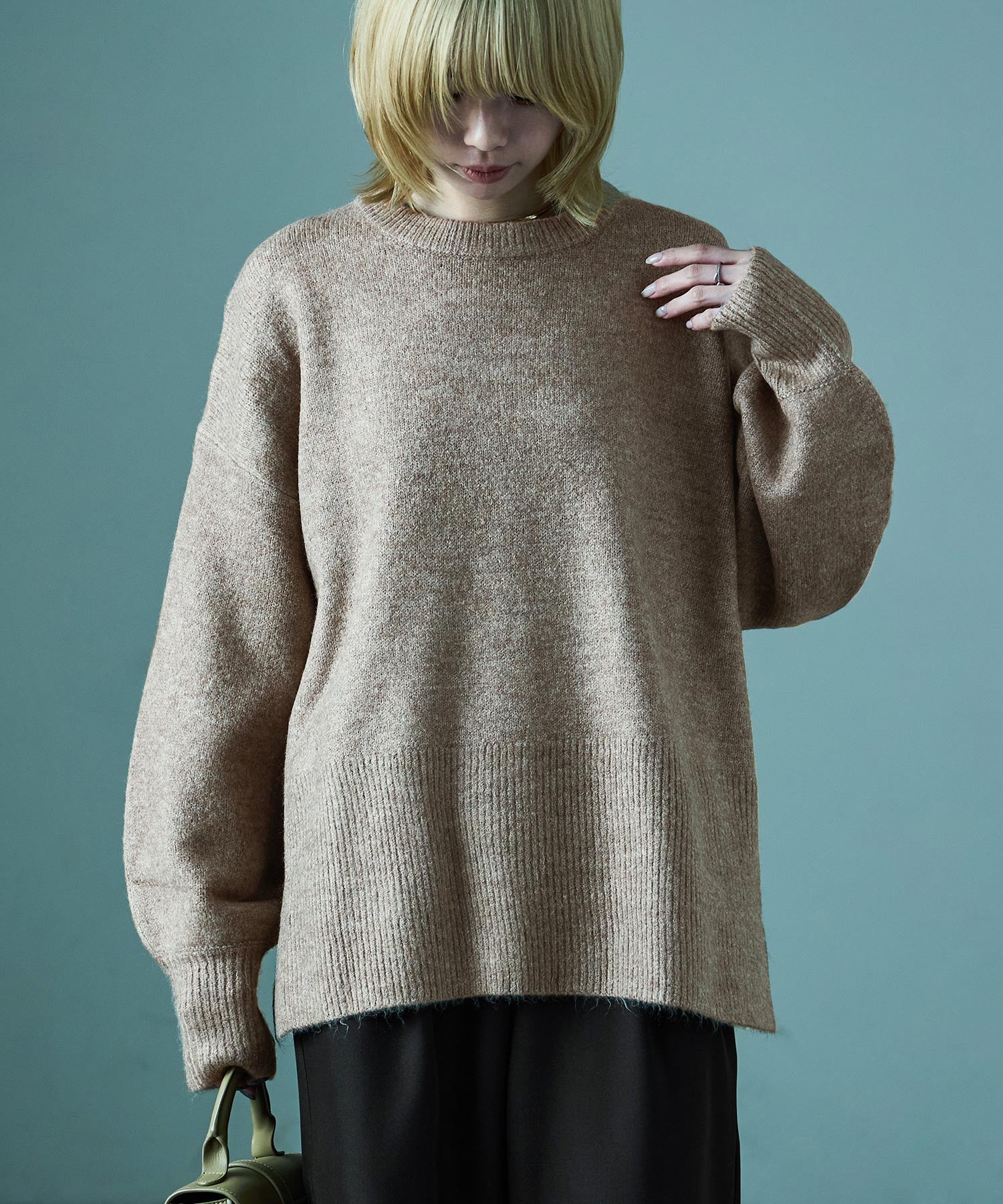 Zname サイドスリット オーバーサイズ ロングニットプルオーバー