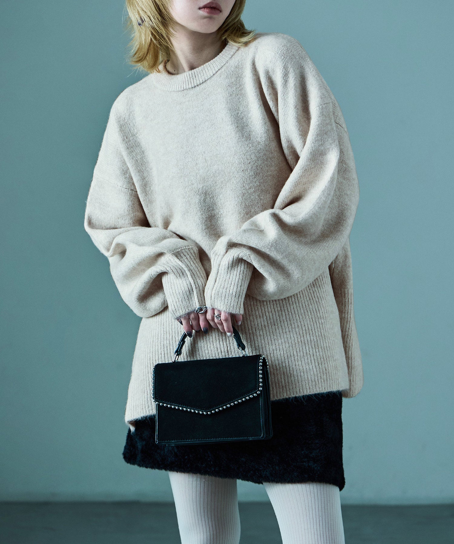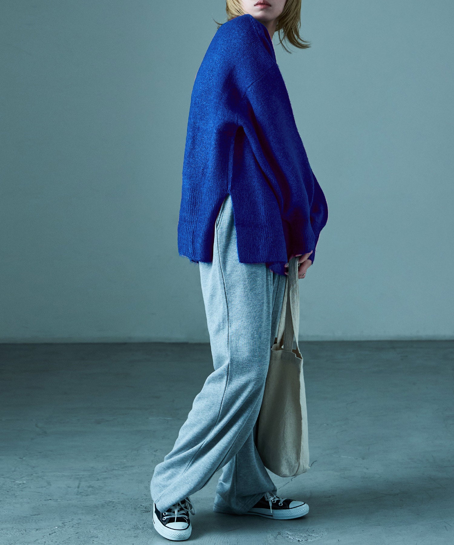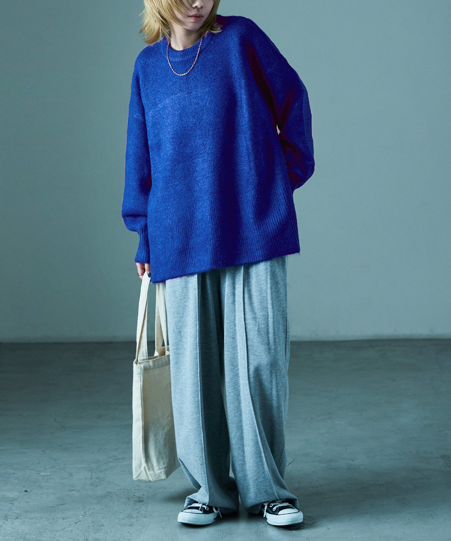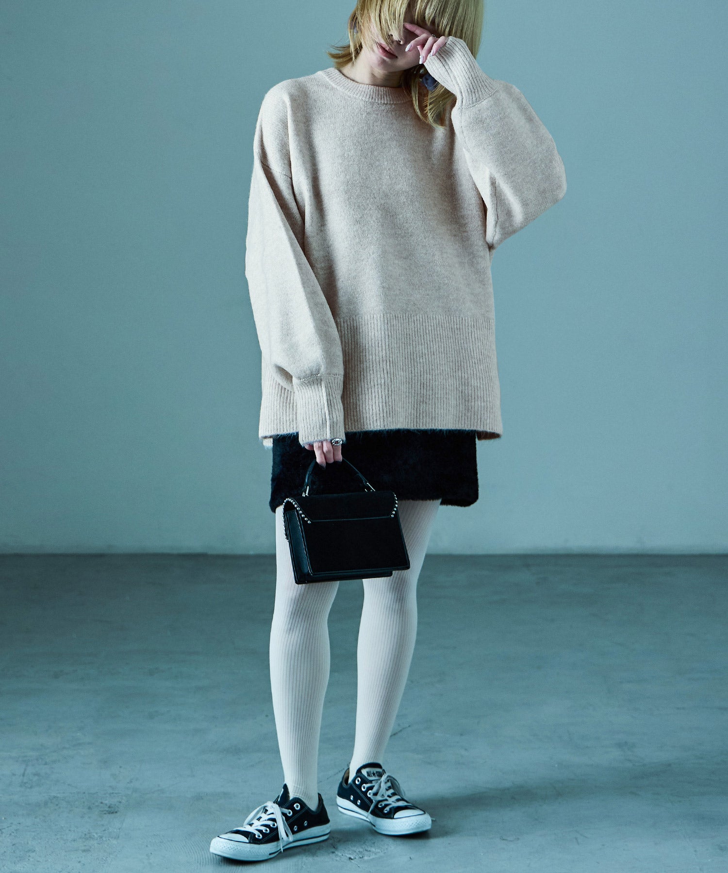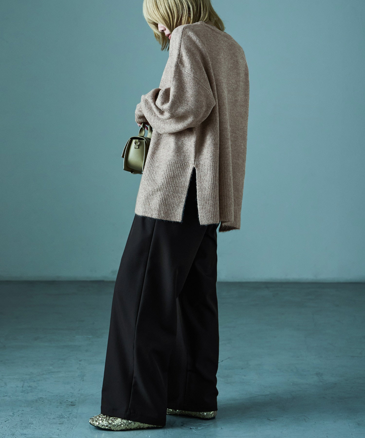 Zname サイドスリット オーバーサイズ ロングニットプルオーバー