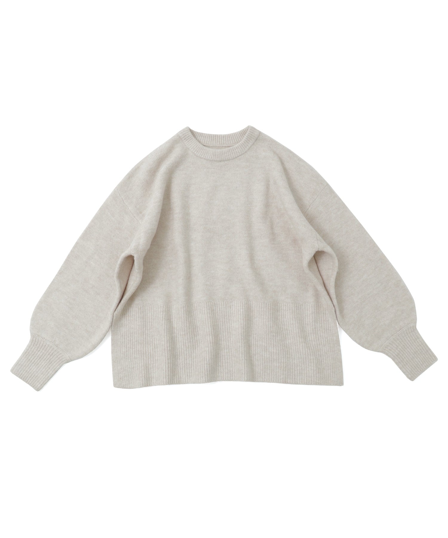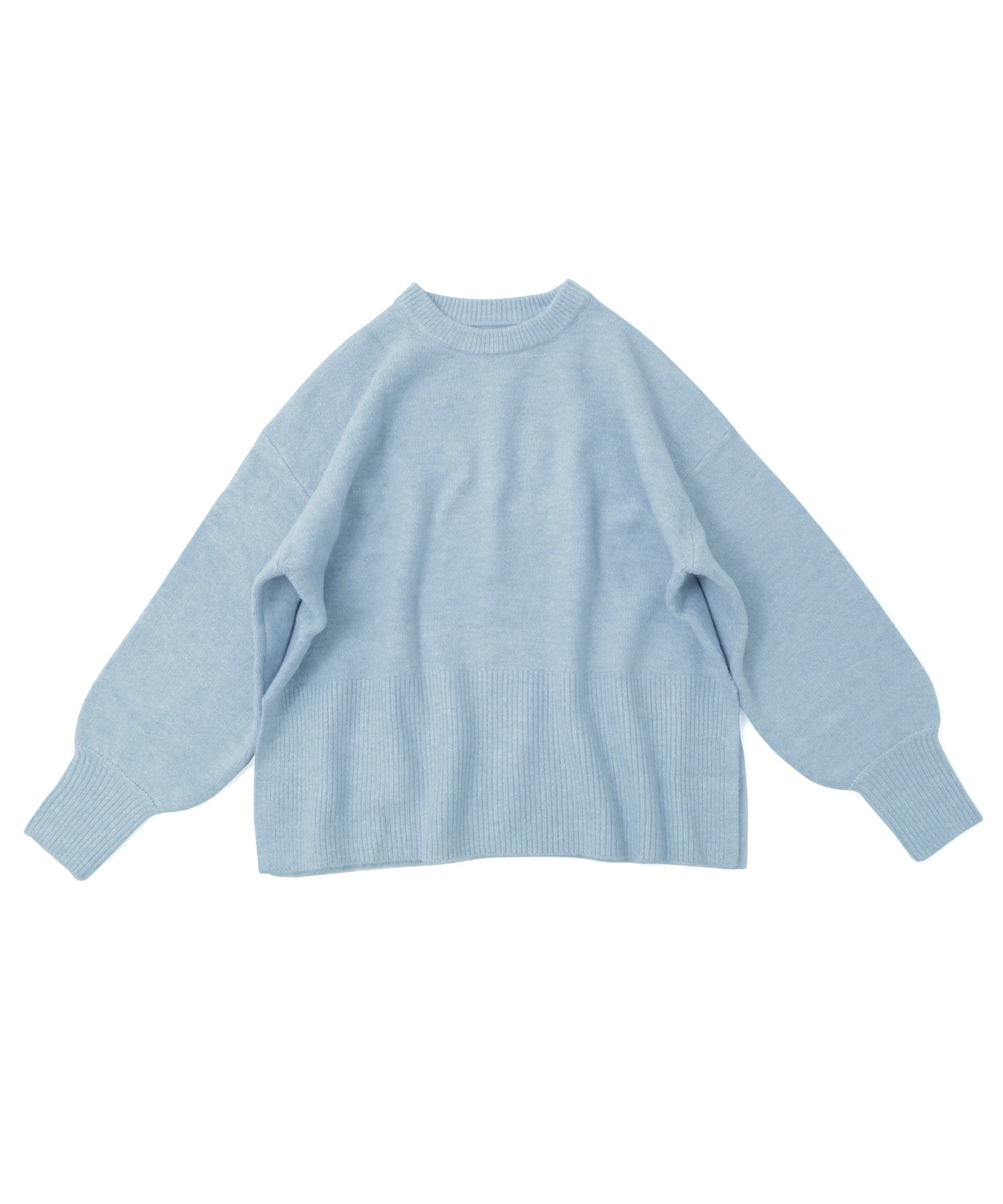 Rname サイドスリット オーバーサイズ ロングニットプルオーバー ニット ボリューム袖 セーター カラーニット ロング丈 ゆったり あったか 大きめ トップス レディース 秋 冬 バルーン袖 低身長 高身長 韓国ファッション シンプル ママコーデ 長袖