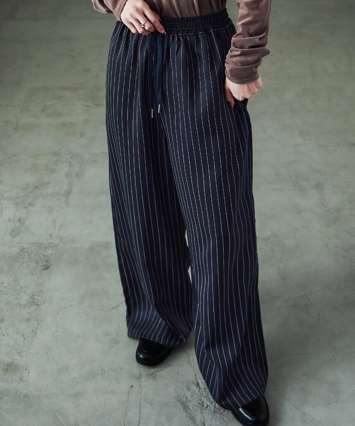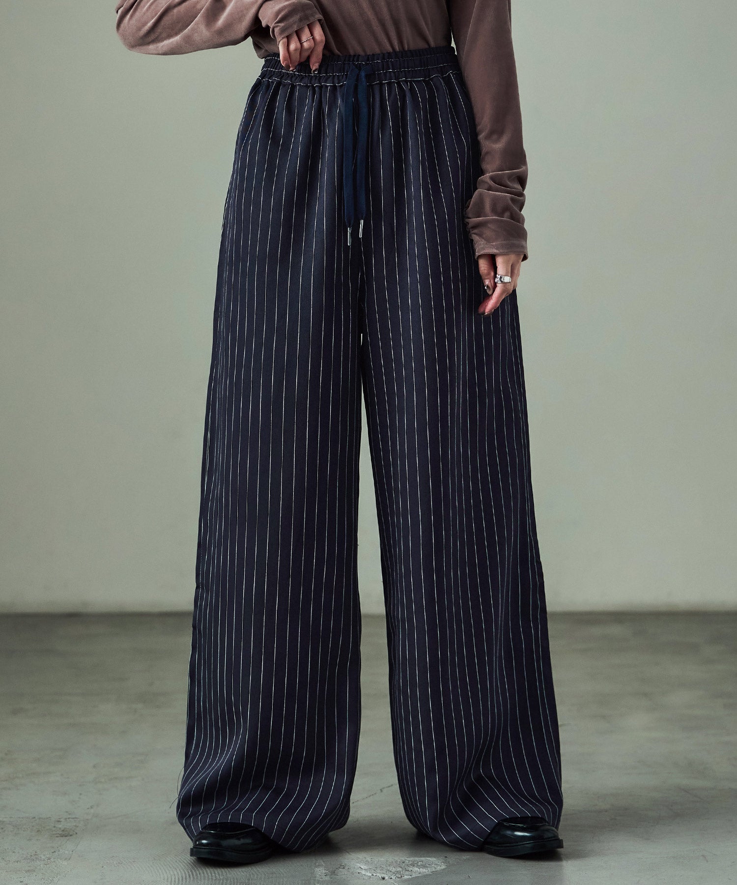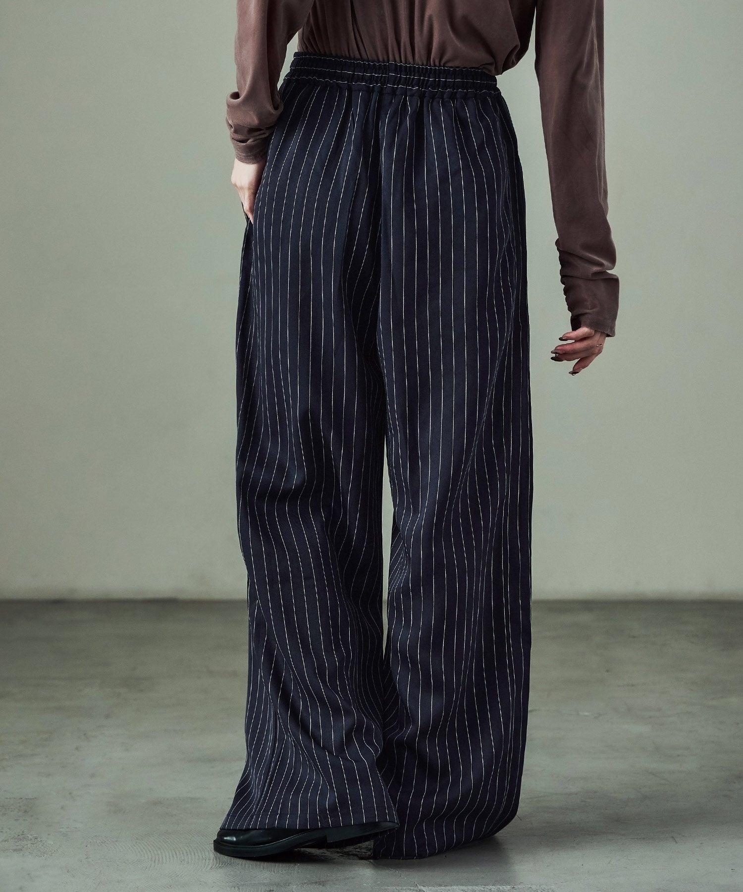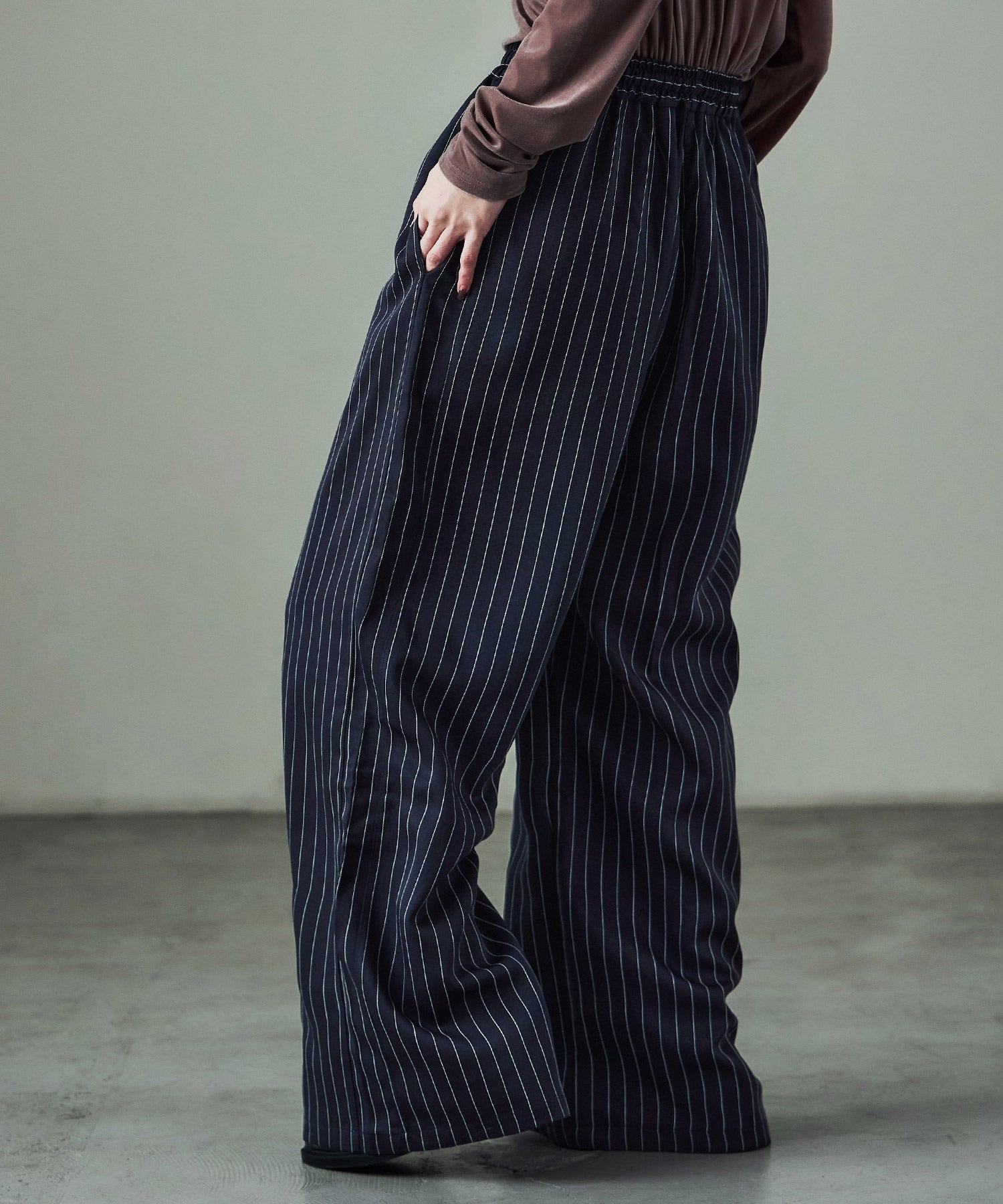 Zname ストライプ ワイドスラックス