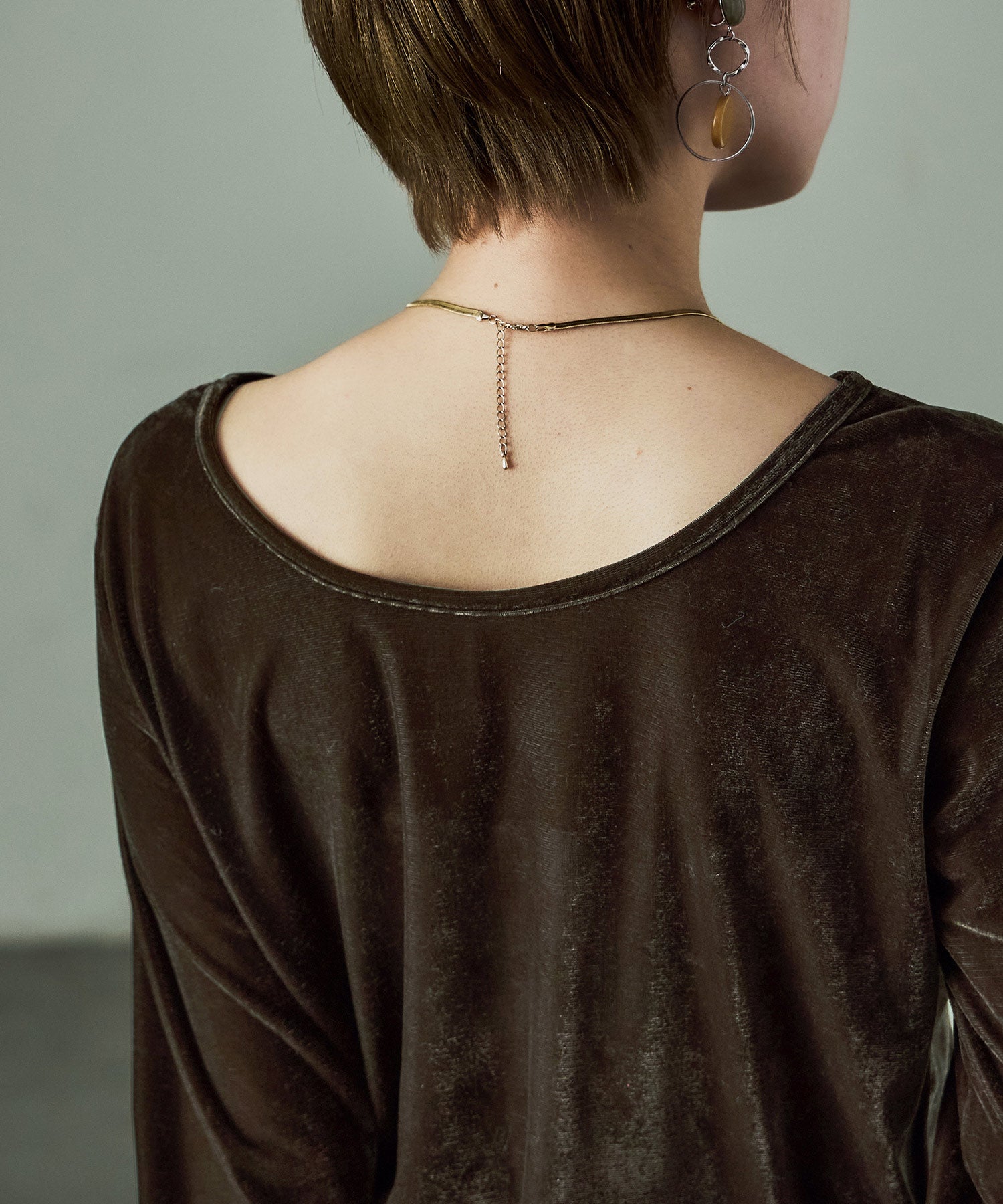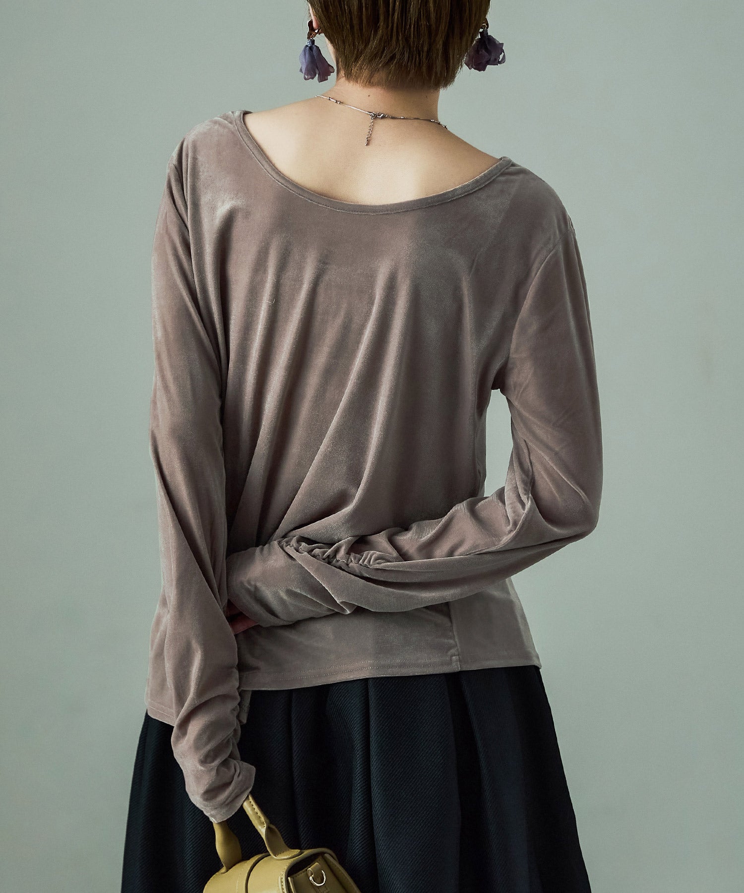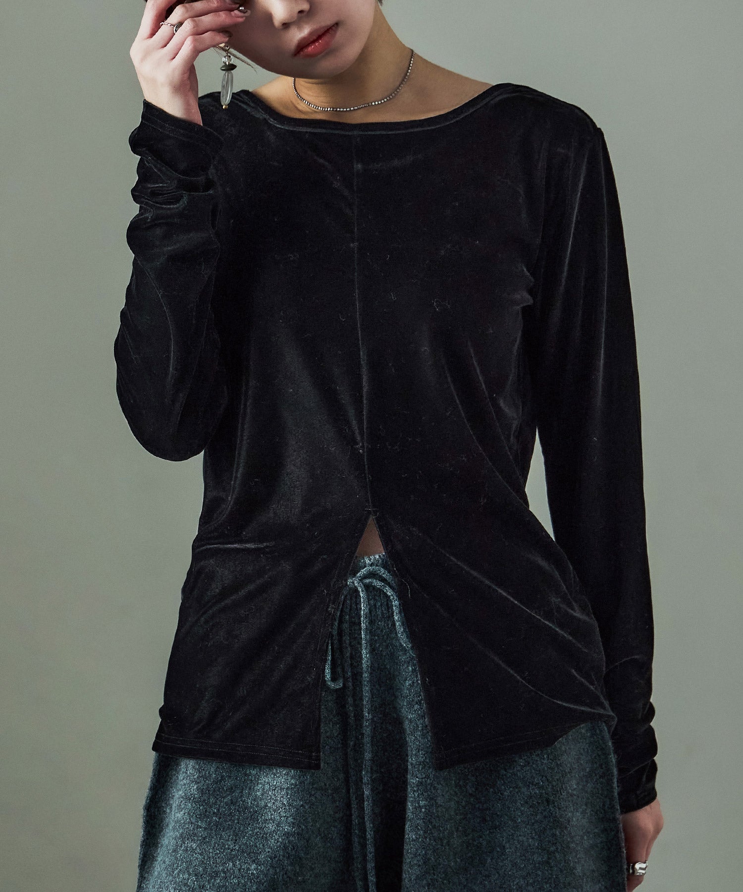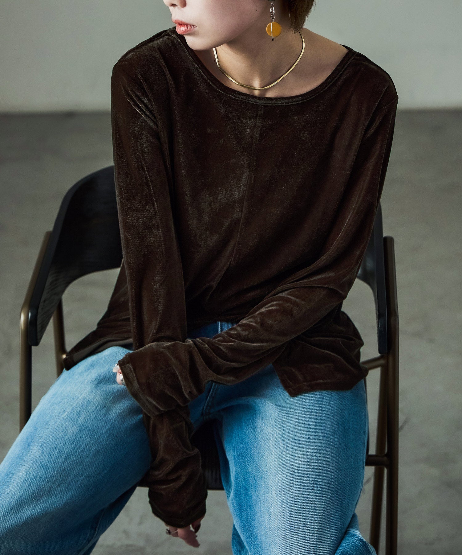 Rname 前後2way ベロアカットソー 長袖 ロンT Tシャツ セーター きれいめ 大人 レディース ゆったり オケージョン トップス レイヤード 韓国ファッション パーティー 結婚式