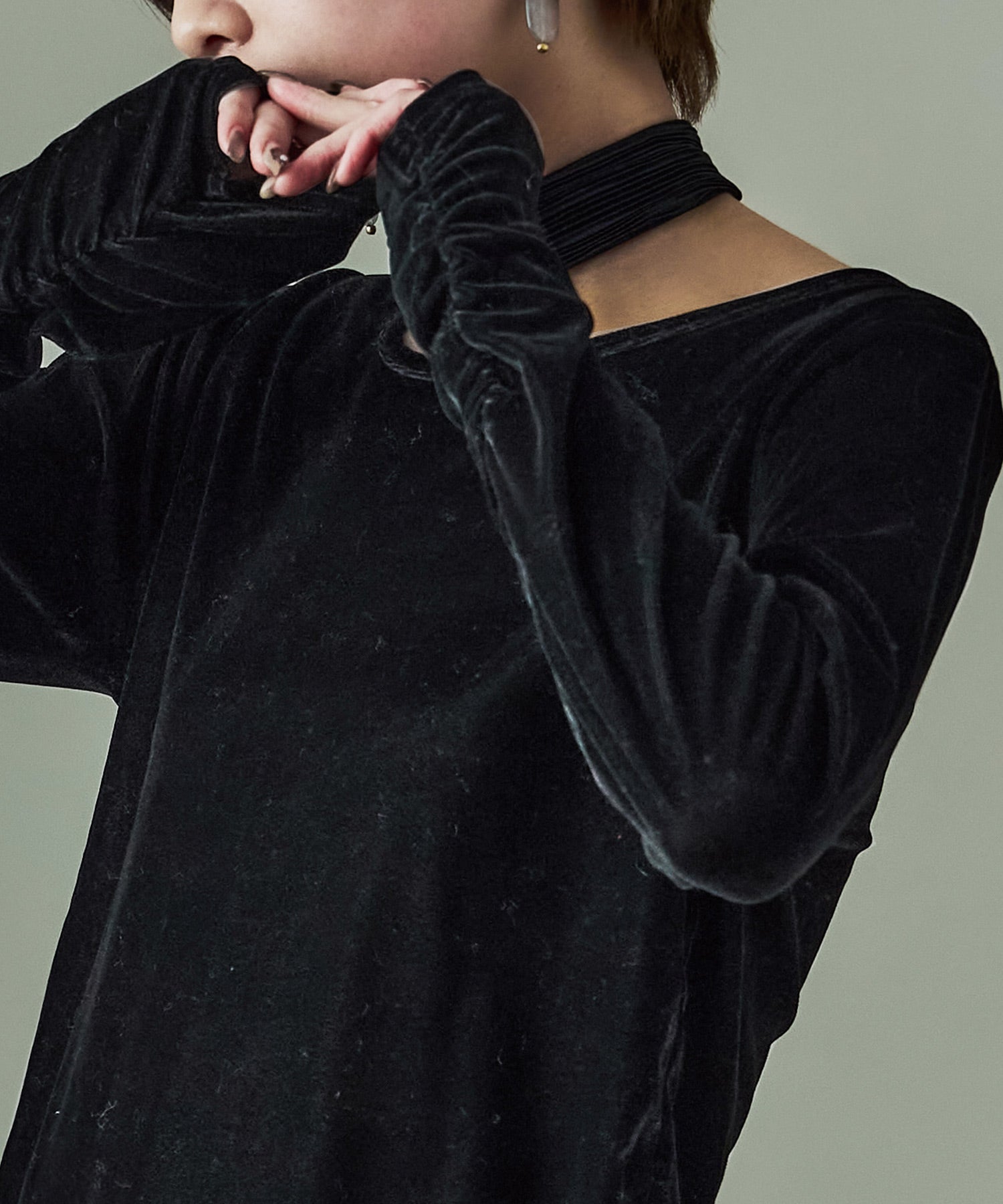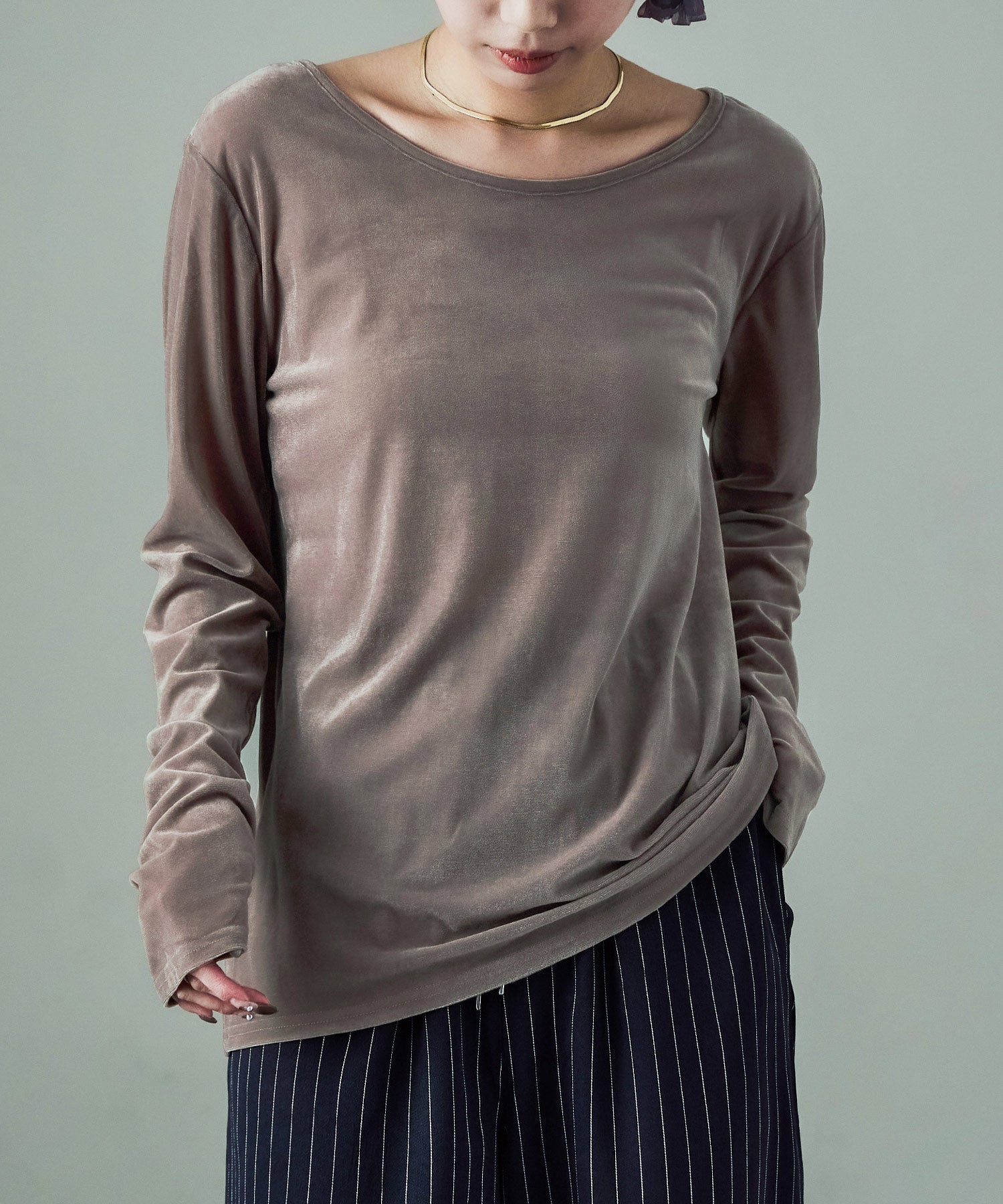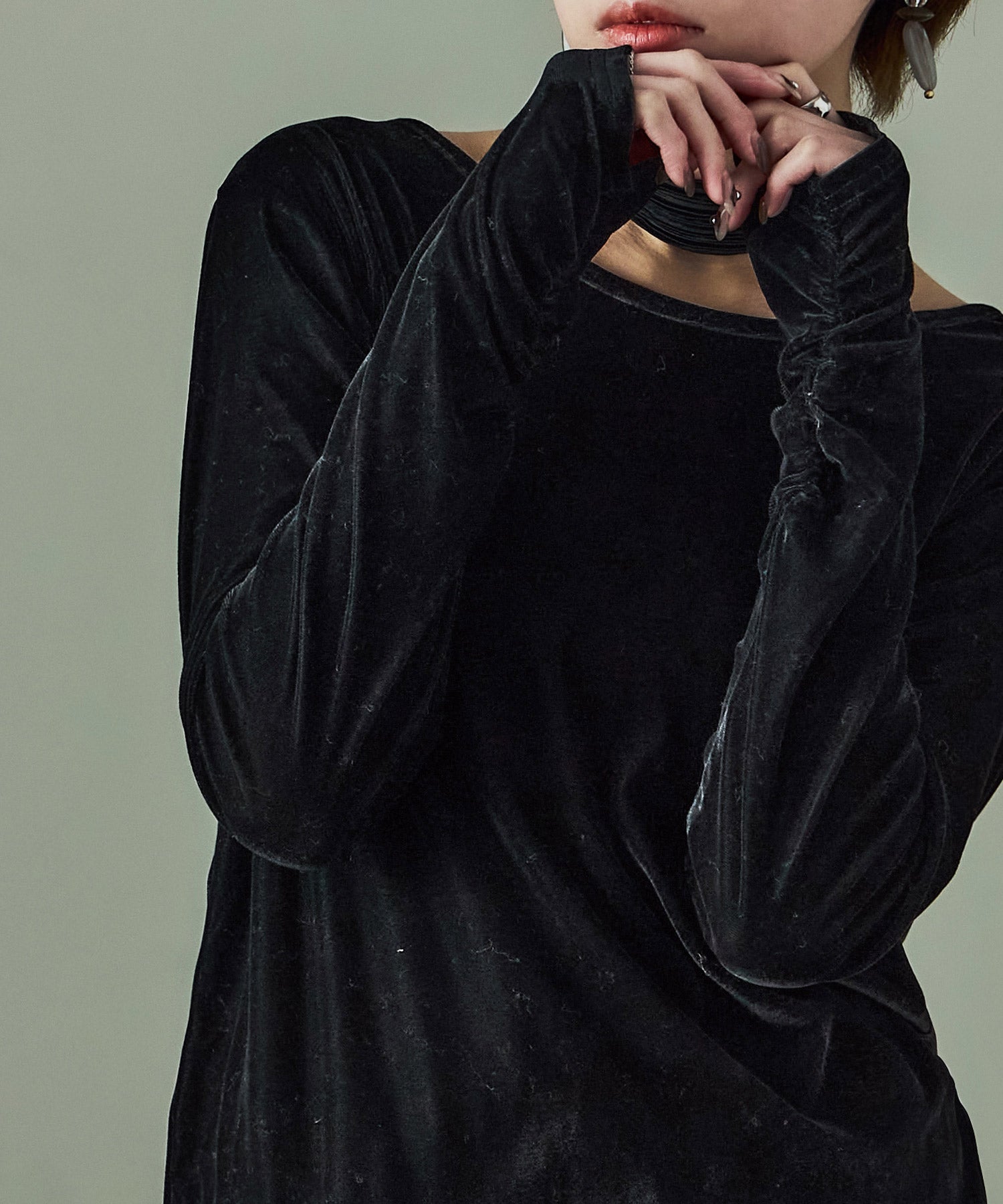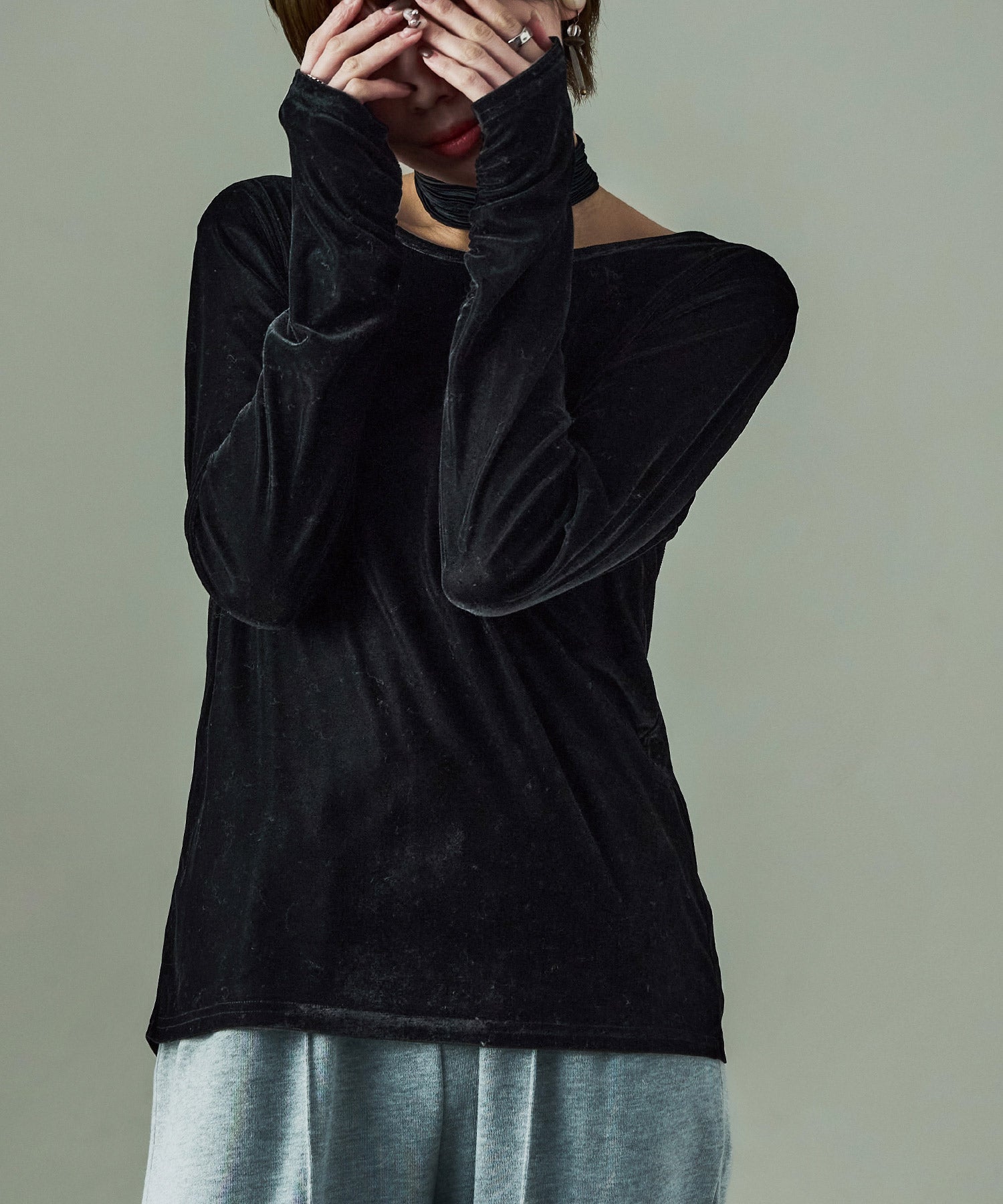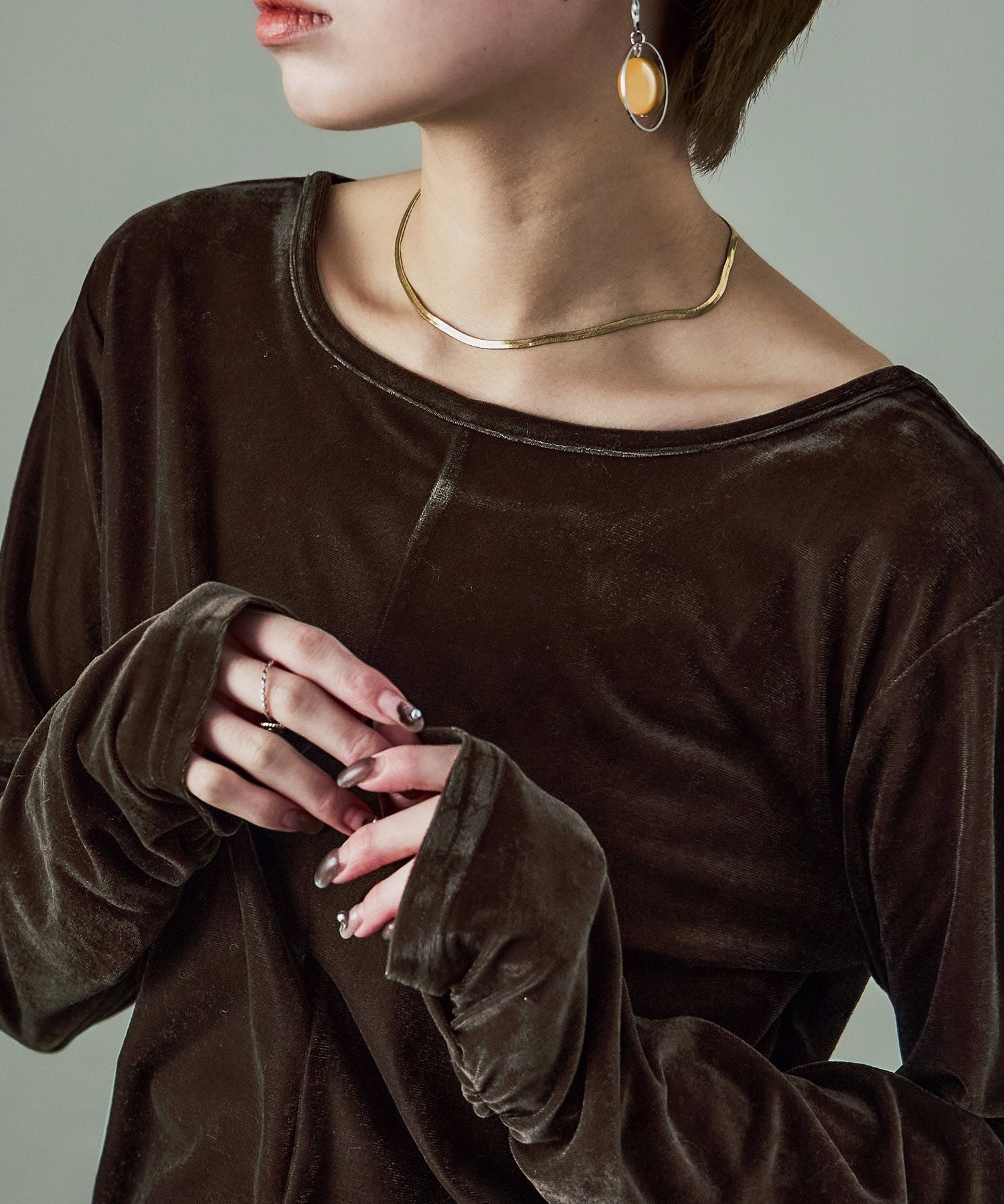 Rname 前後2way ベロアカットソー 長袖 ロンT Tシャツ セーター きれいめ 大人 レディース ゆったり オケージョン トップス レイヤード 韓国ファッション パーティー 結婚式
