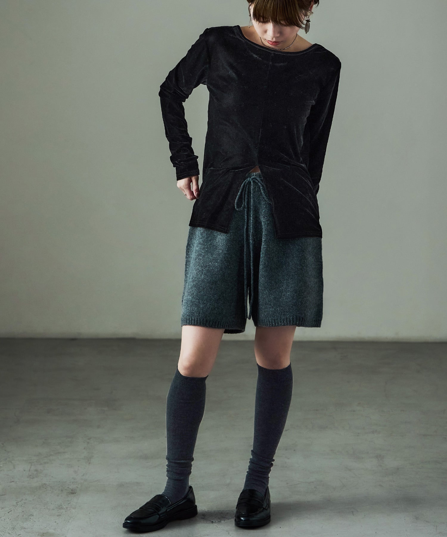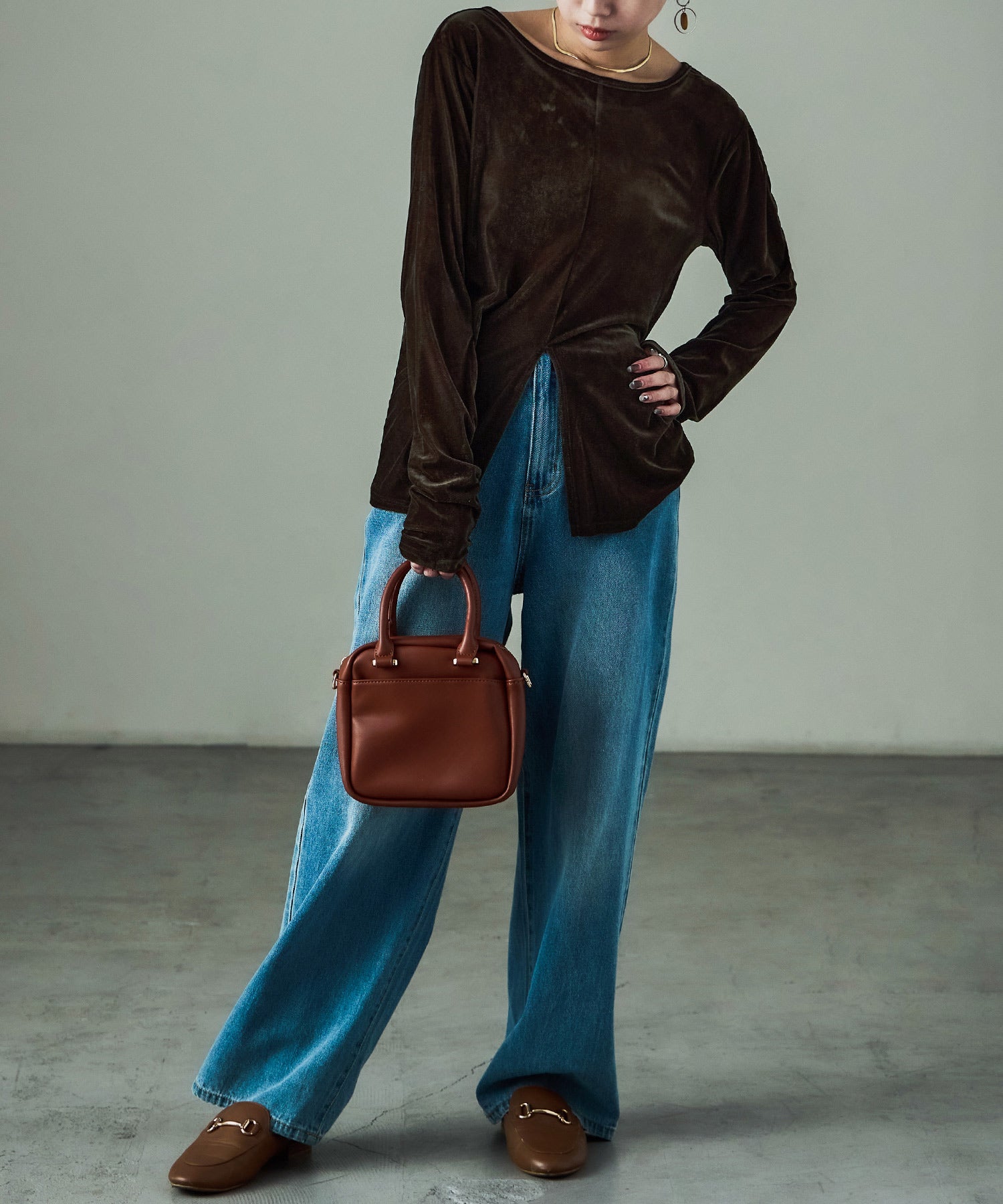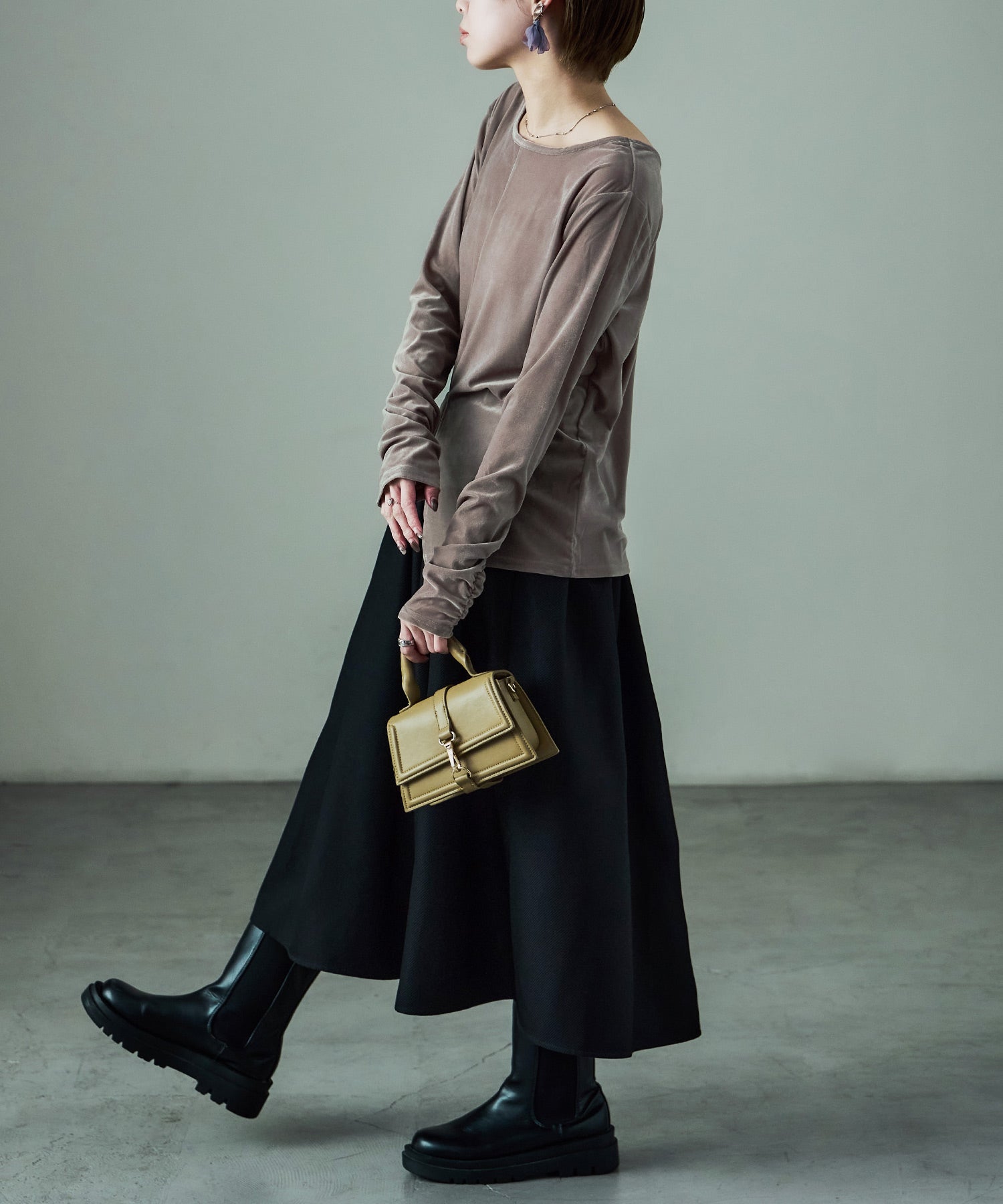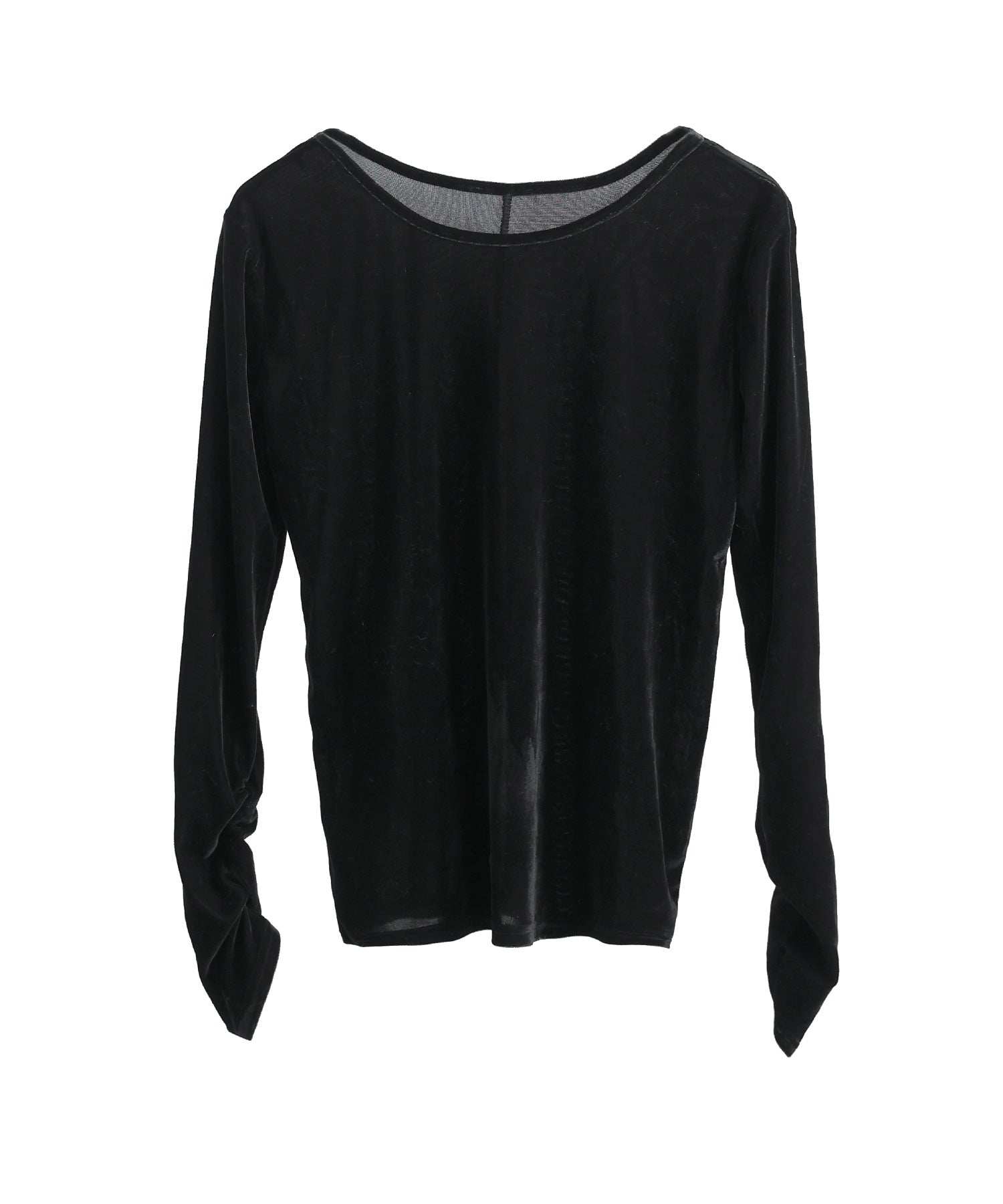 Rname 前後2way ベロアカットソー 長袖 ロンT Tシャツ セーター きれいめ 大人 レディース ゆったり オケージョン トップス レイヤード 韓国ファッション パーティー 結婚式