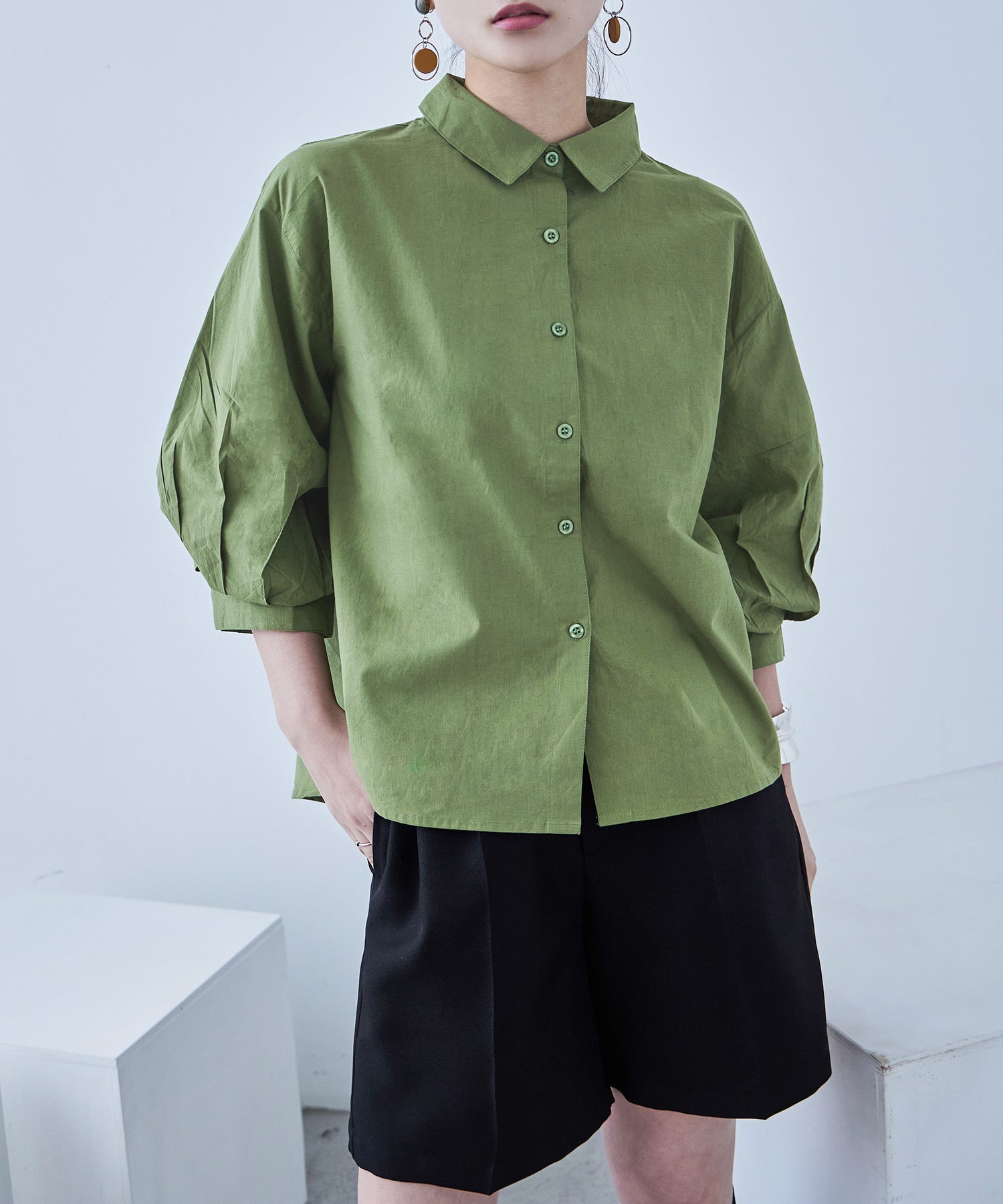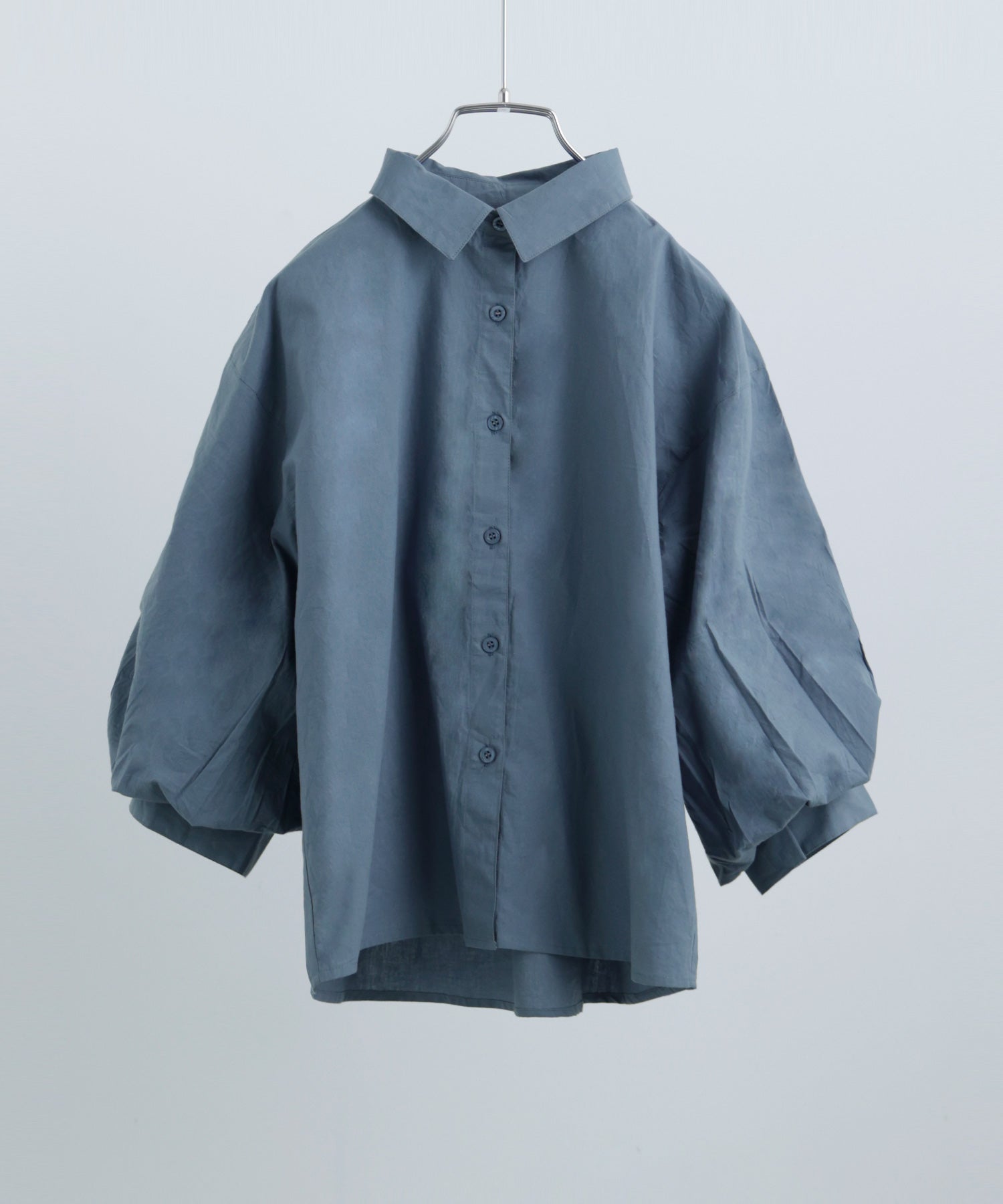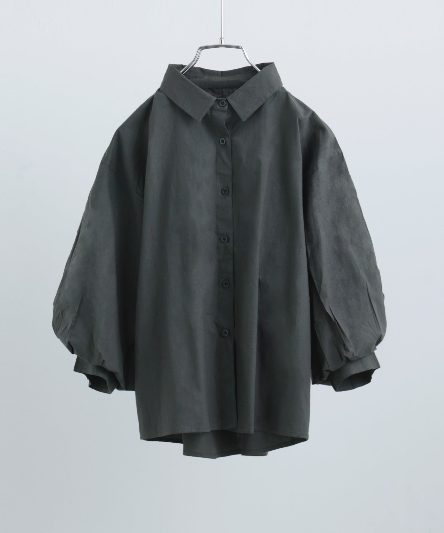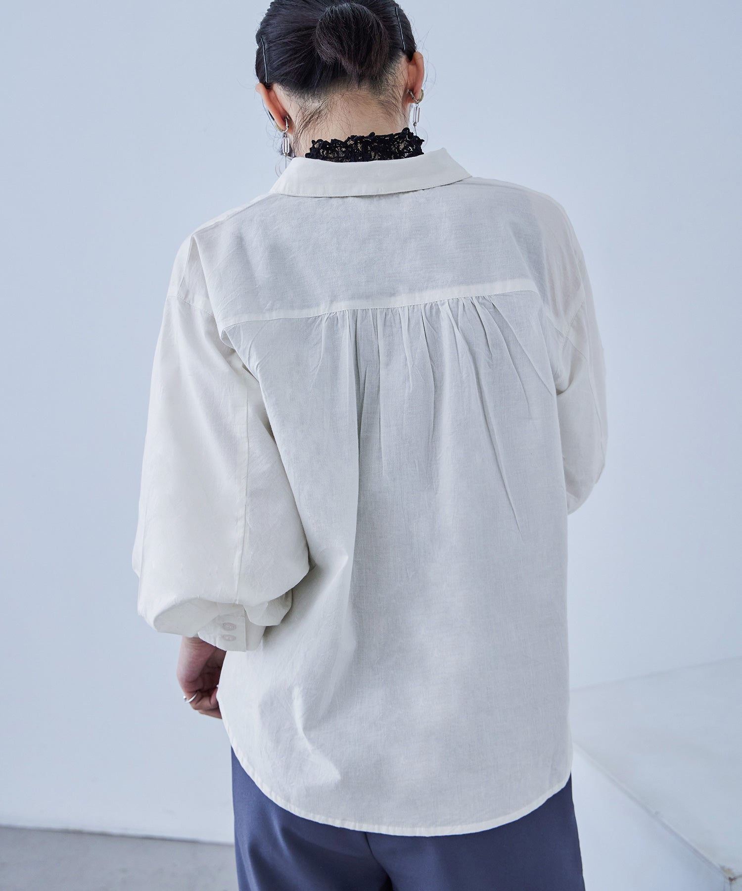 Rname ボリューム袖 タックシャツ ブラウス シャツ レディース ゆったり 無地 シンプル バルーンスリーブ 韓国ファッション きれいめ ママコーデ
