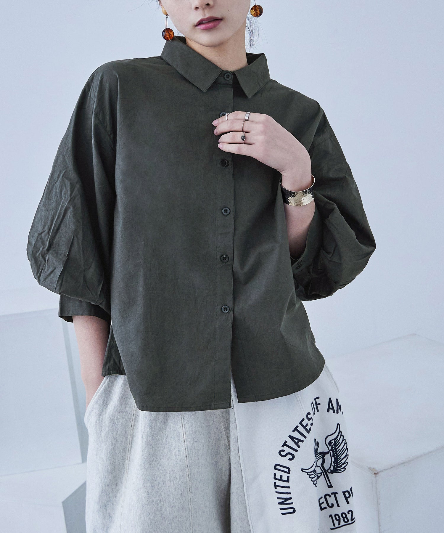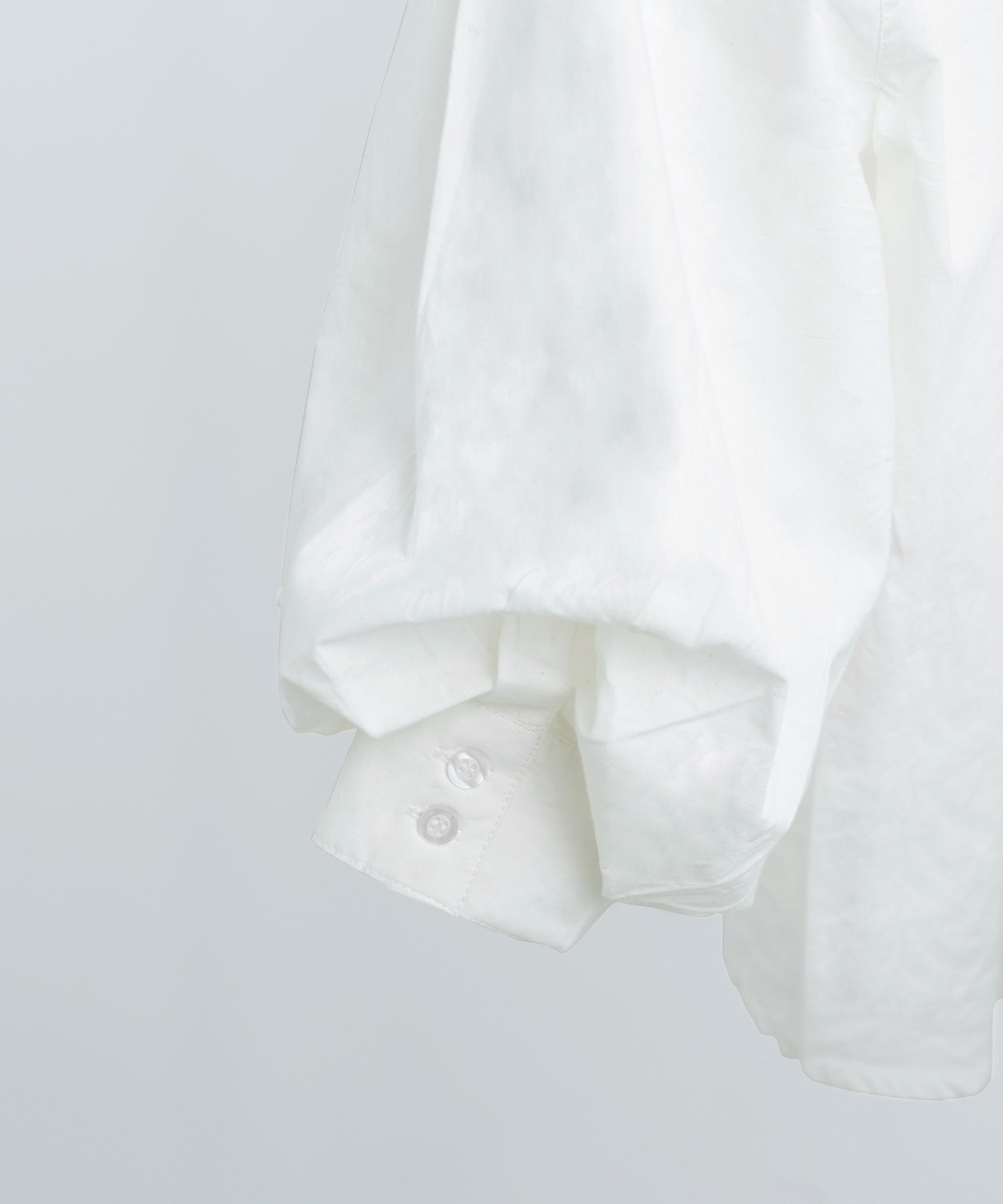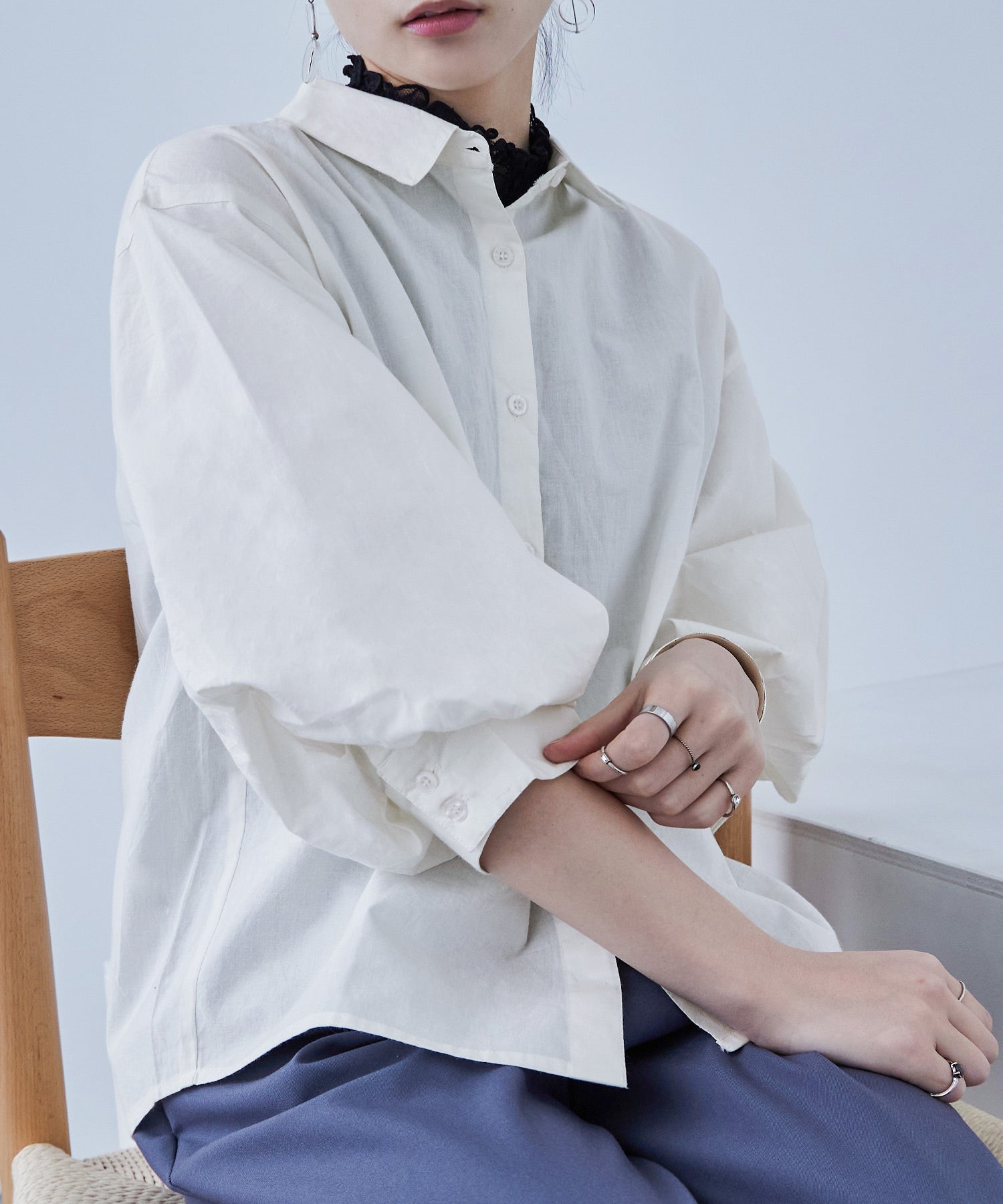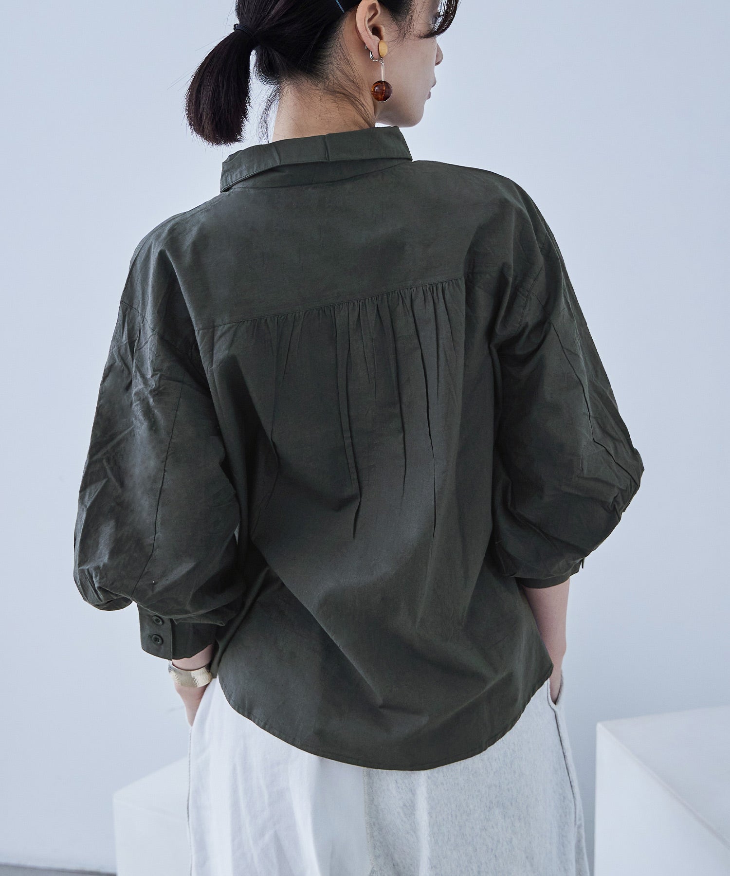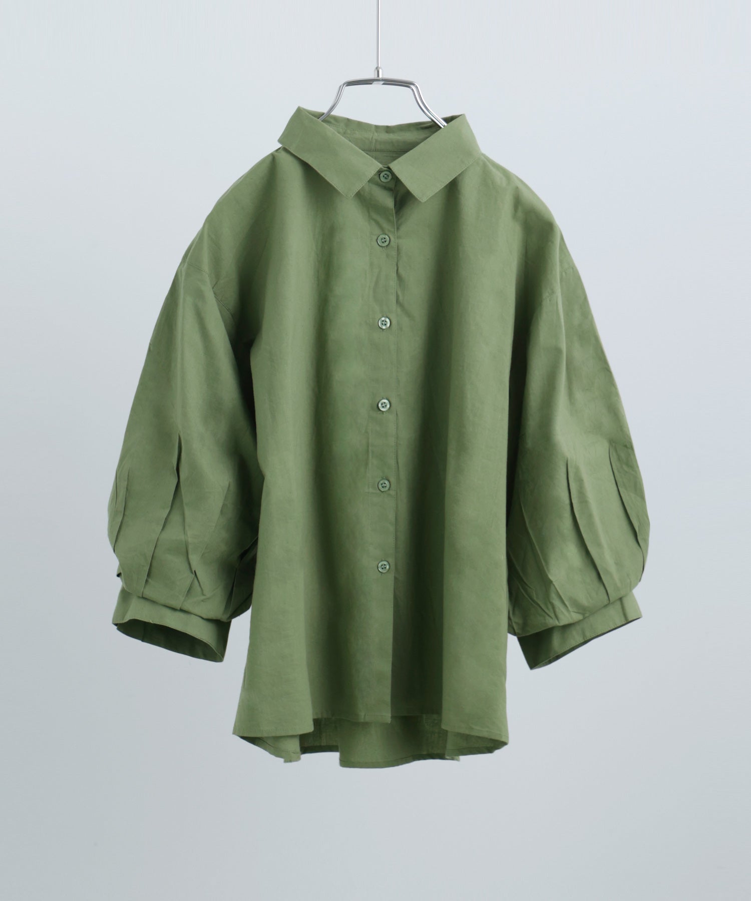 Rname ボリューム袖 タックシャツ ブラウス シャツ レディース ゆったり 無地 シンプル バルーンスリーブ 韓国ファッション きれいめ ママコーデ