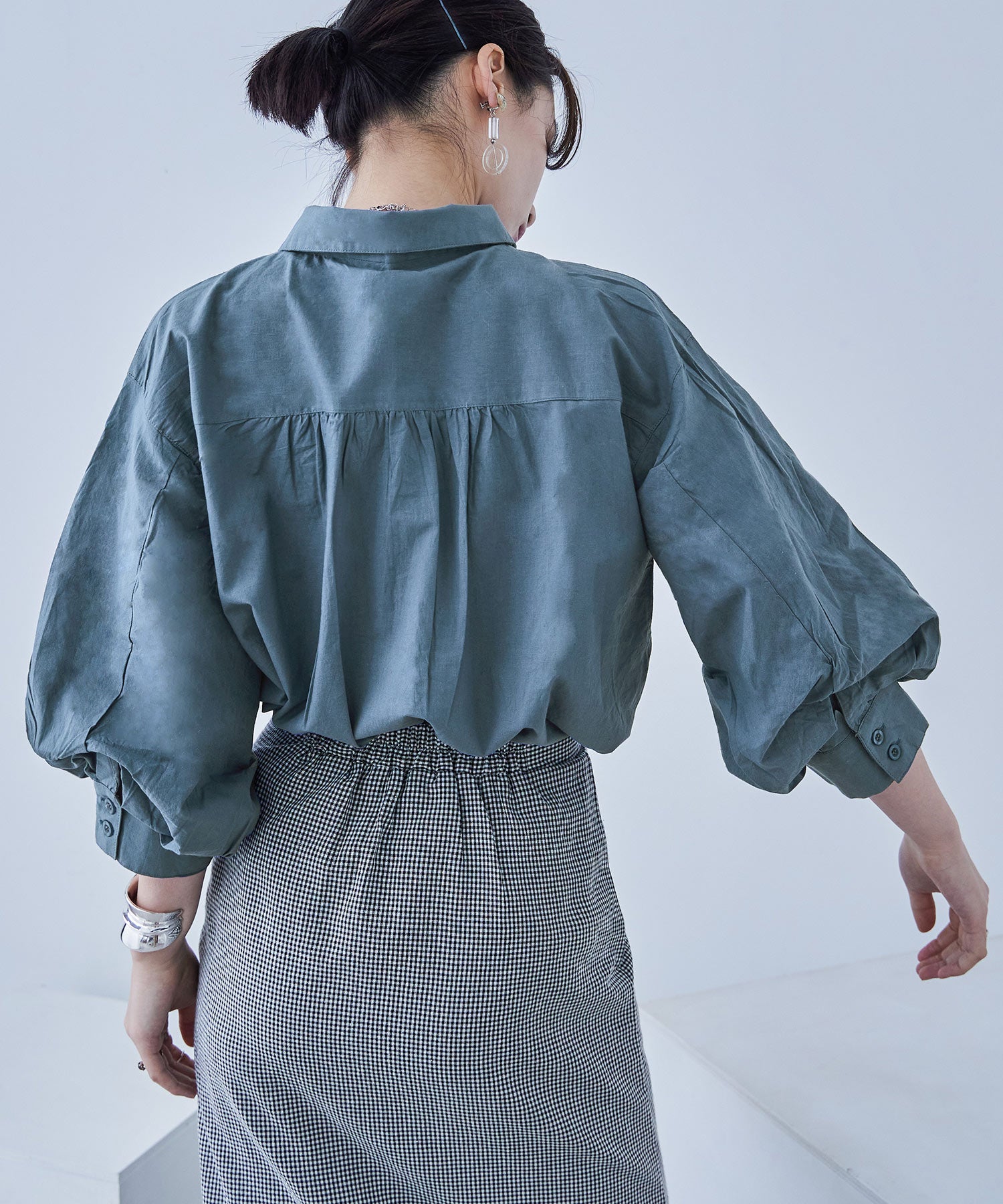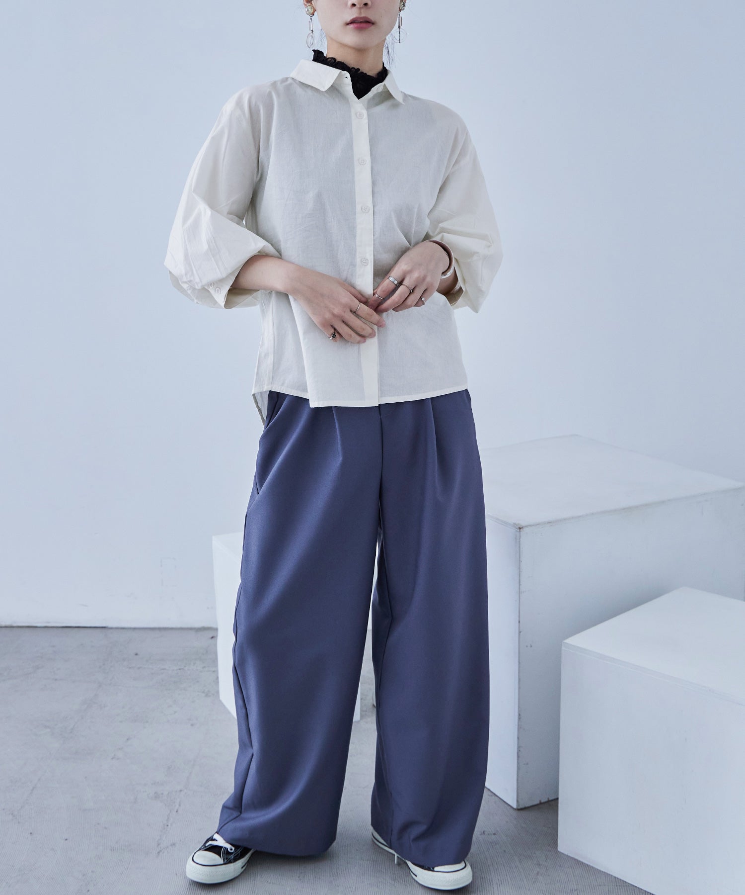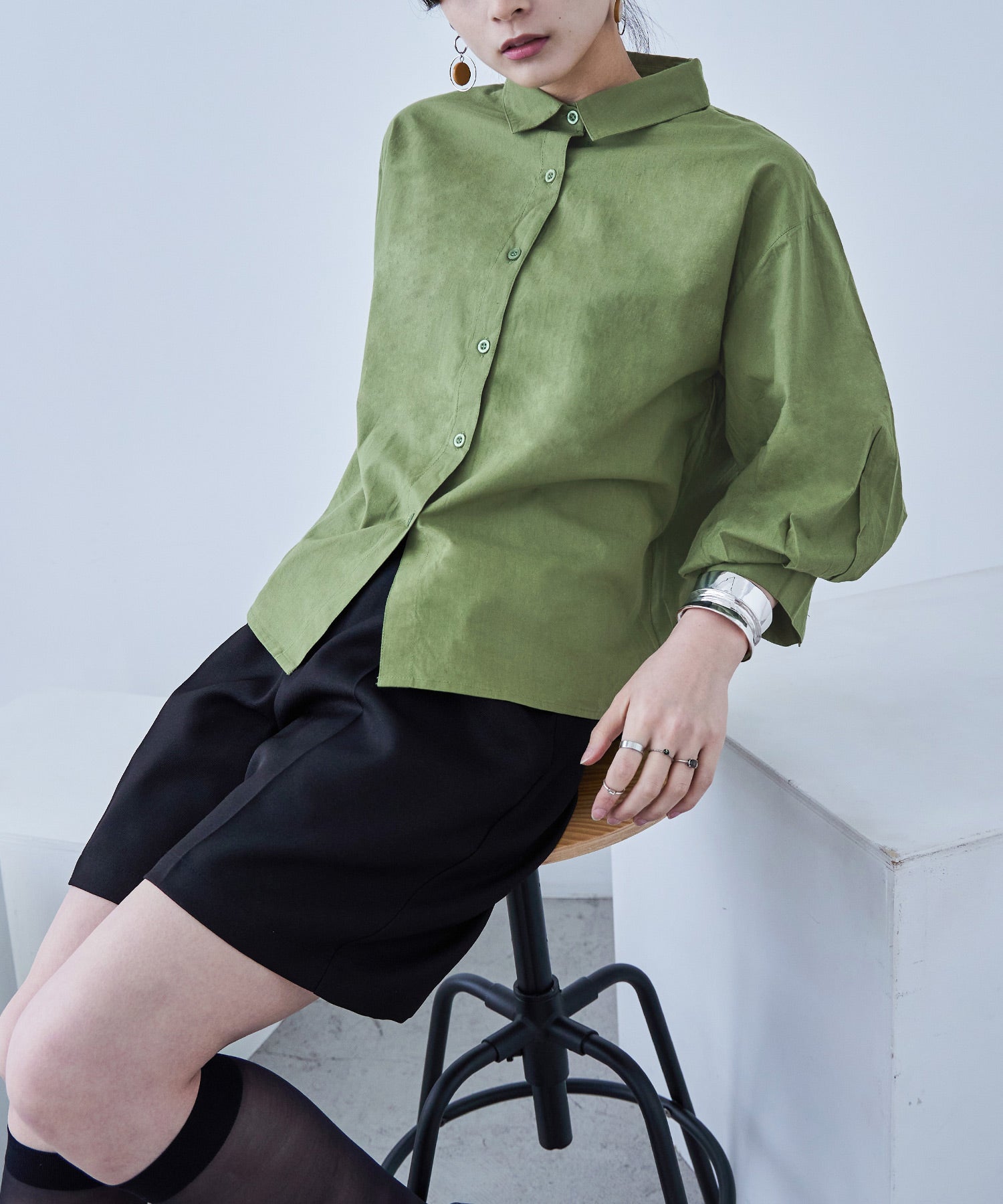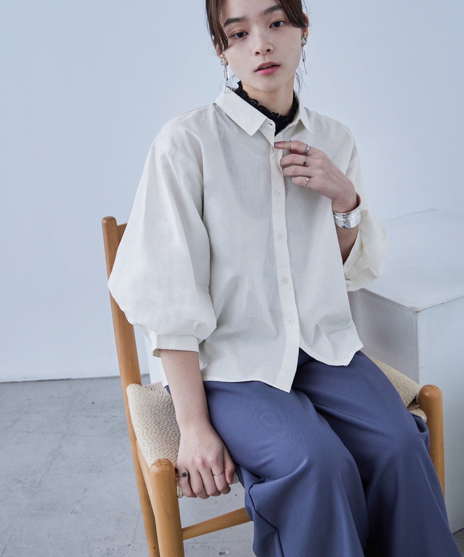 Rname ボリューム袖 タックシャツ ブラウス シャツ レディース ゆったり 無地 シンプル バルーンスリーブ 韓国ファッション きれいめ ママコーデ