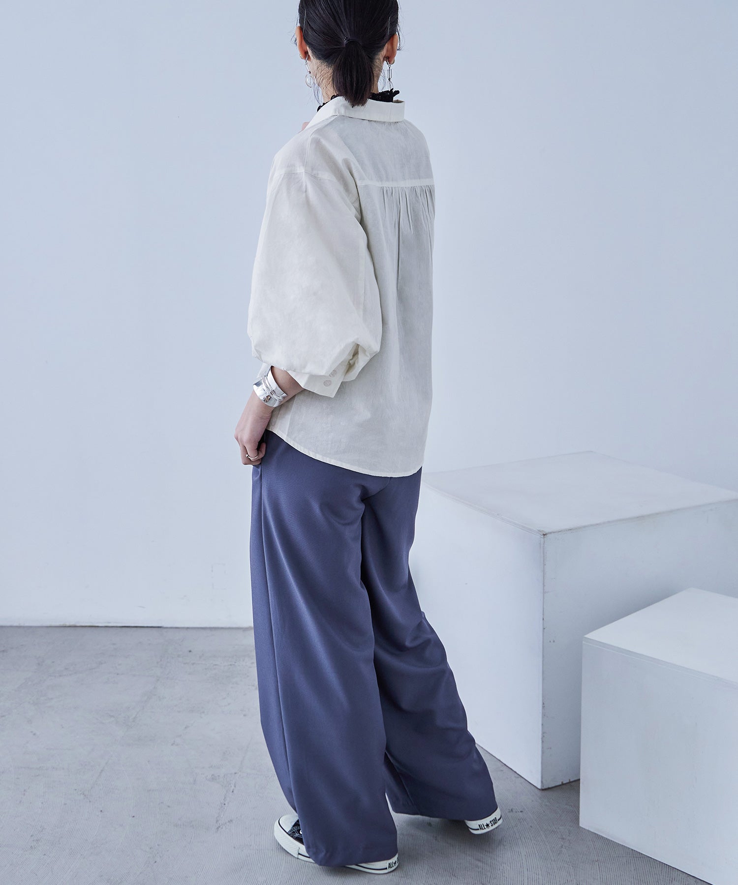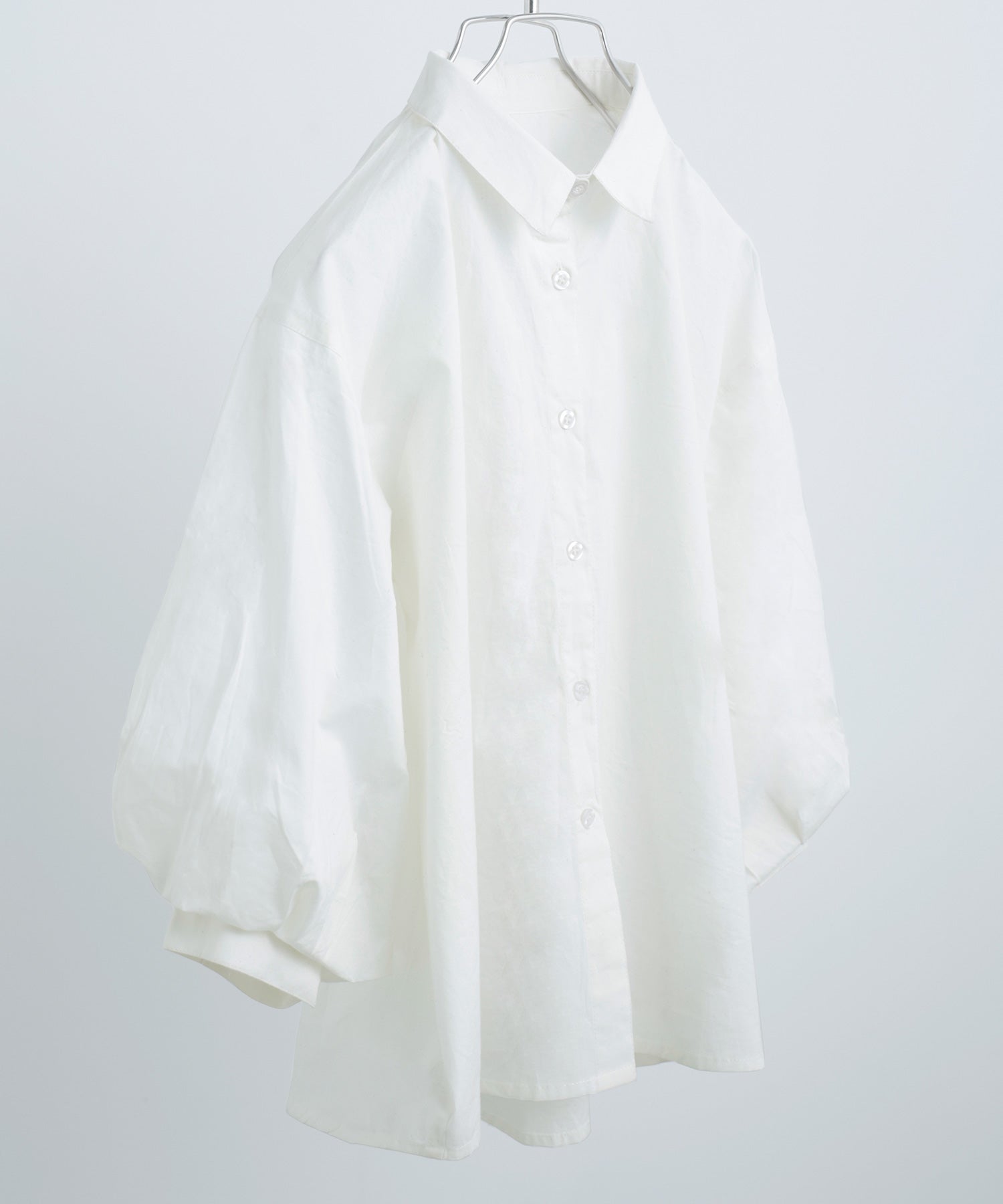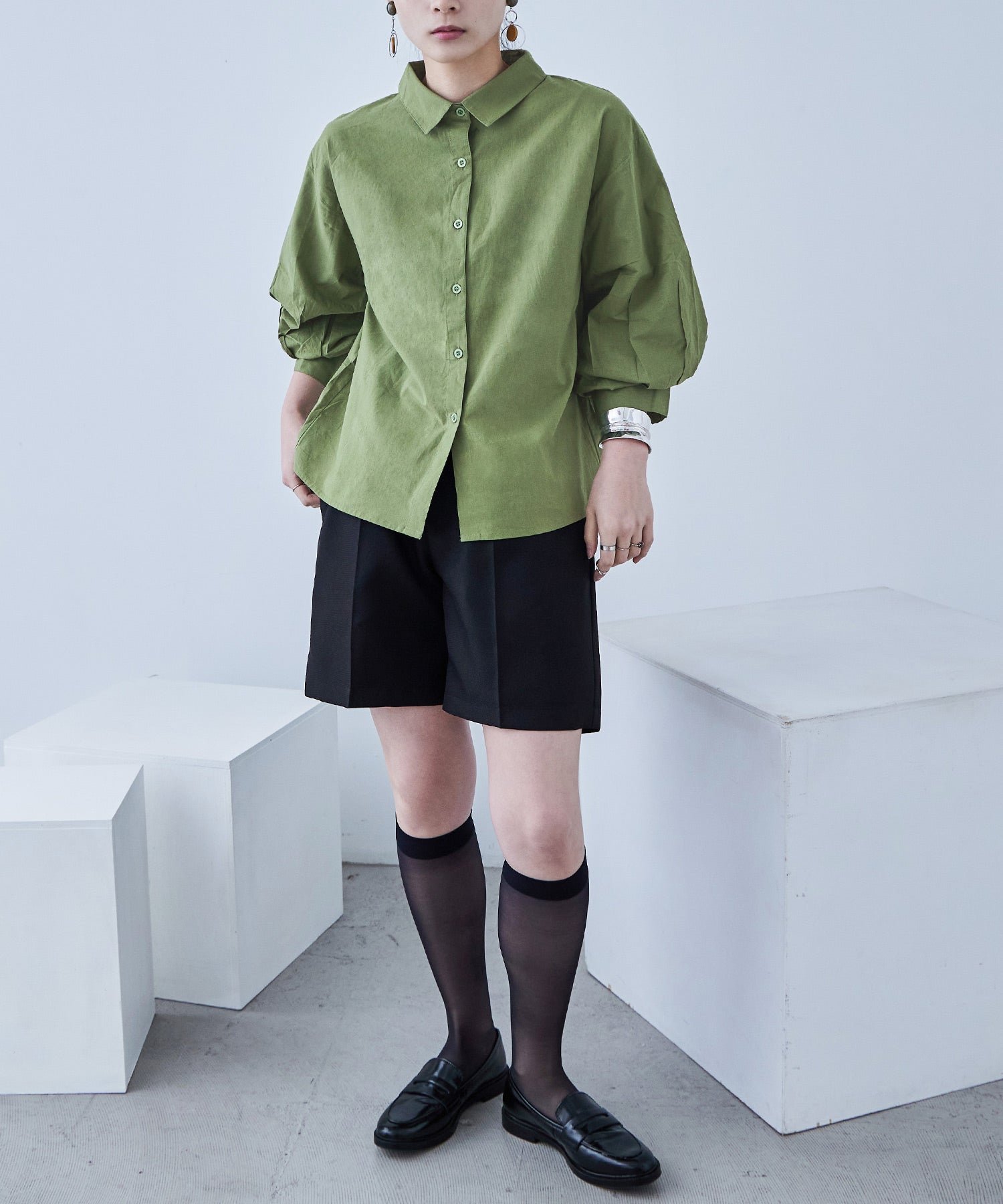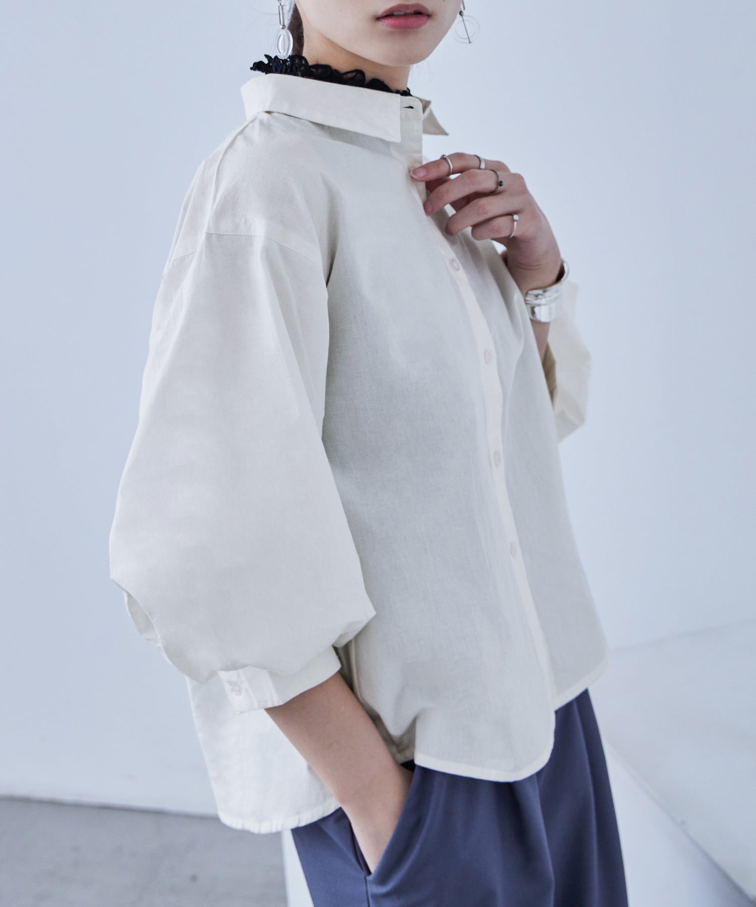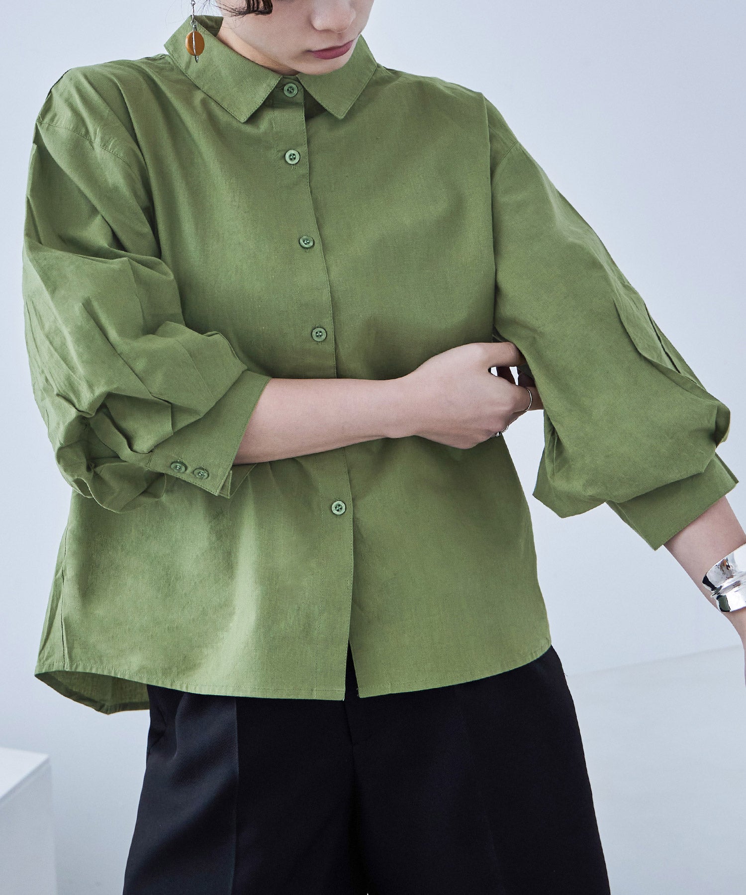 Rname ボリューム袖 タックシャツ ブラウス シャツ レディース ゆったり 無地 シンプル バルーンスリーブ 韓国ファッション きれいめ ママコーデ
