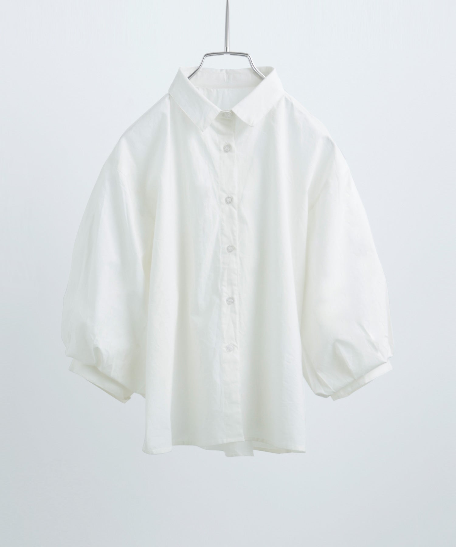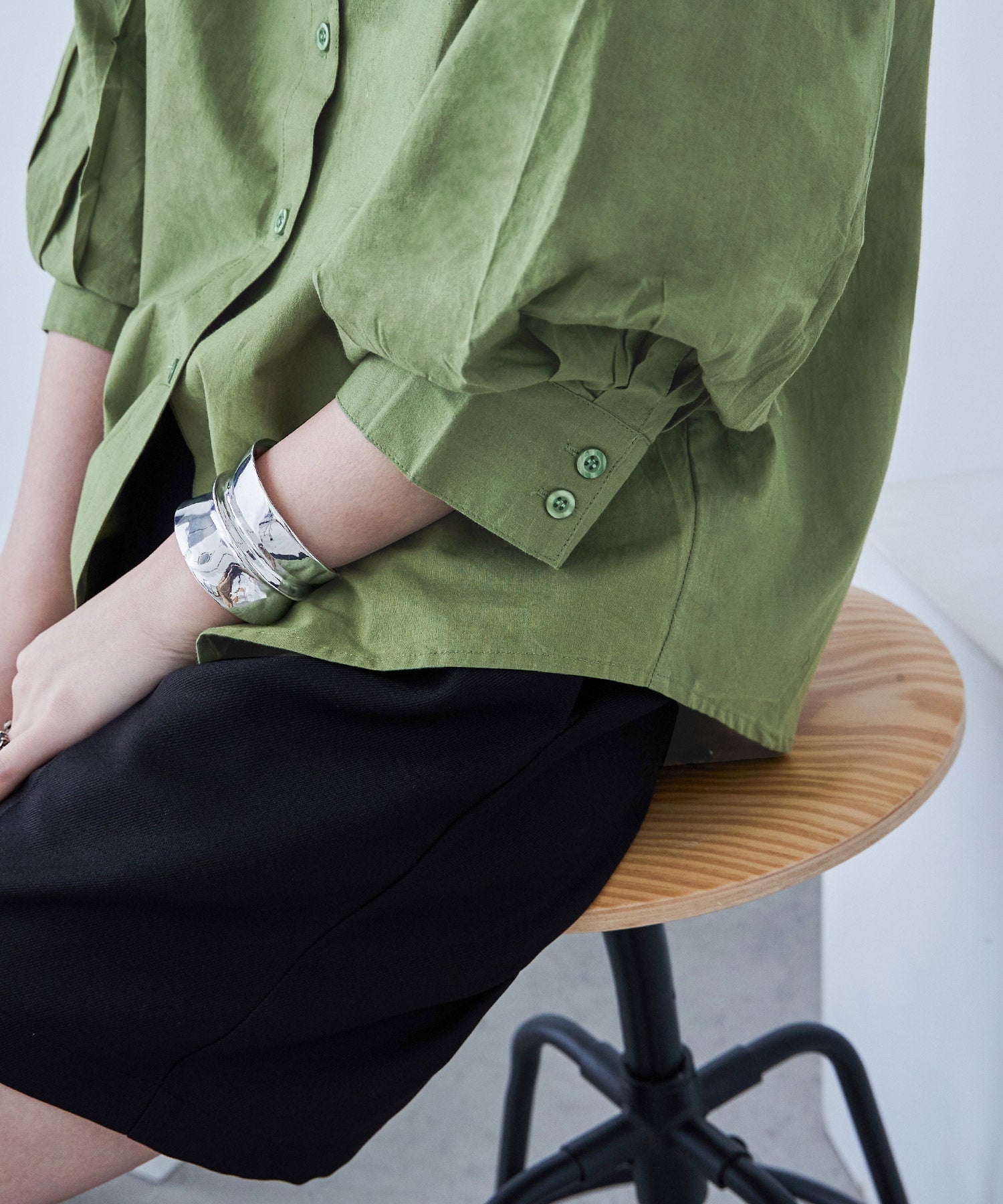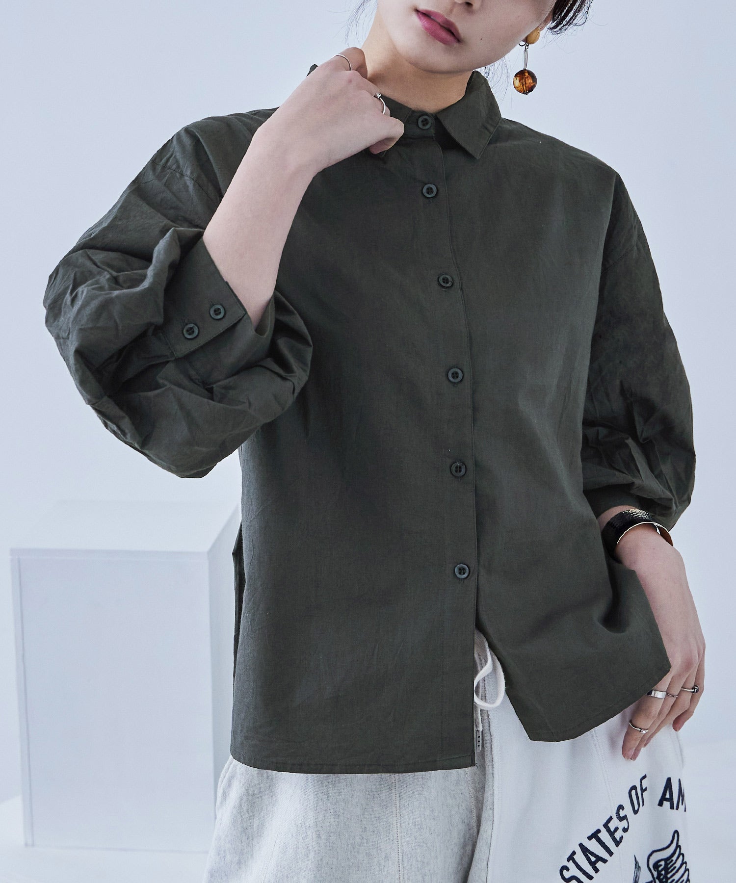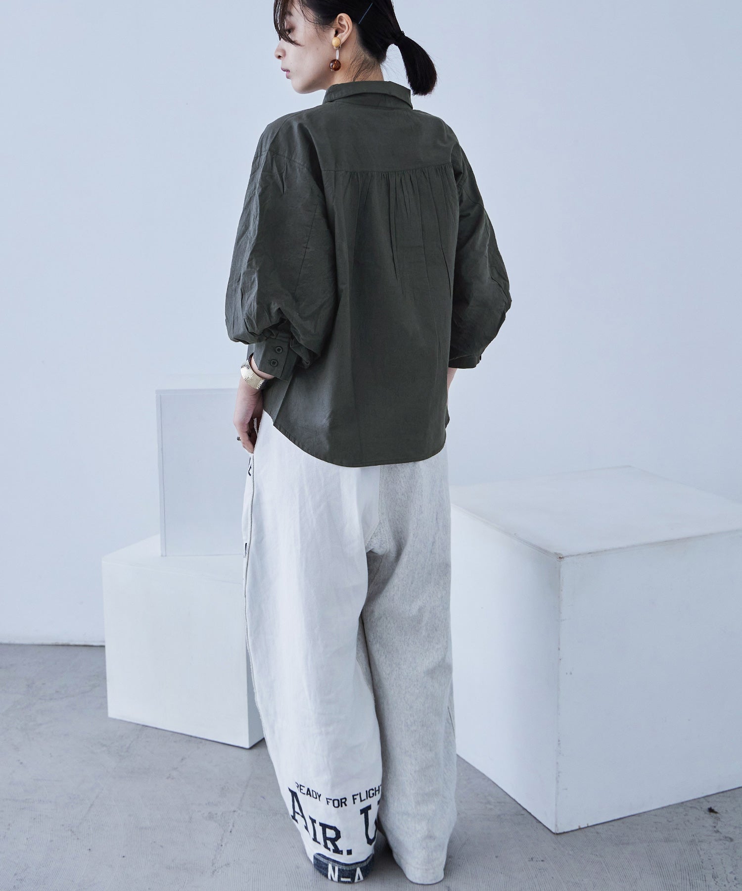 Rname ボリューム袖 タックシャツ ブラウス シャツ レディース ゆったり 無地 シンプル バルーンスリーブ 韓国ファッション きれいめ ママコーデ