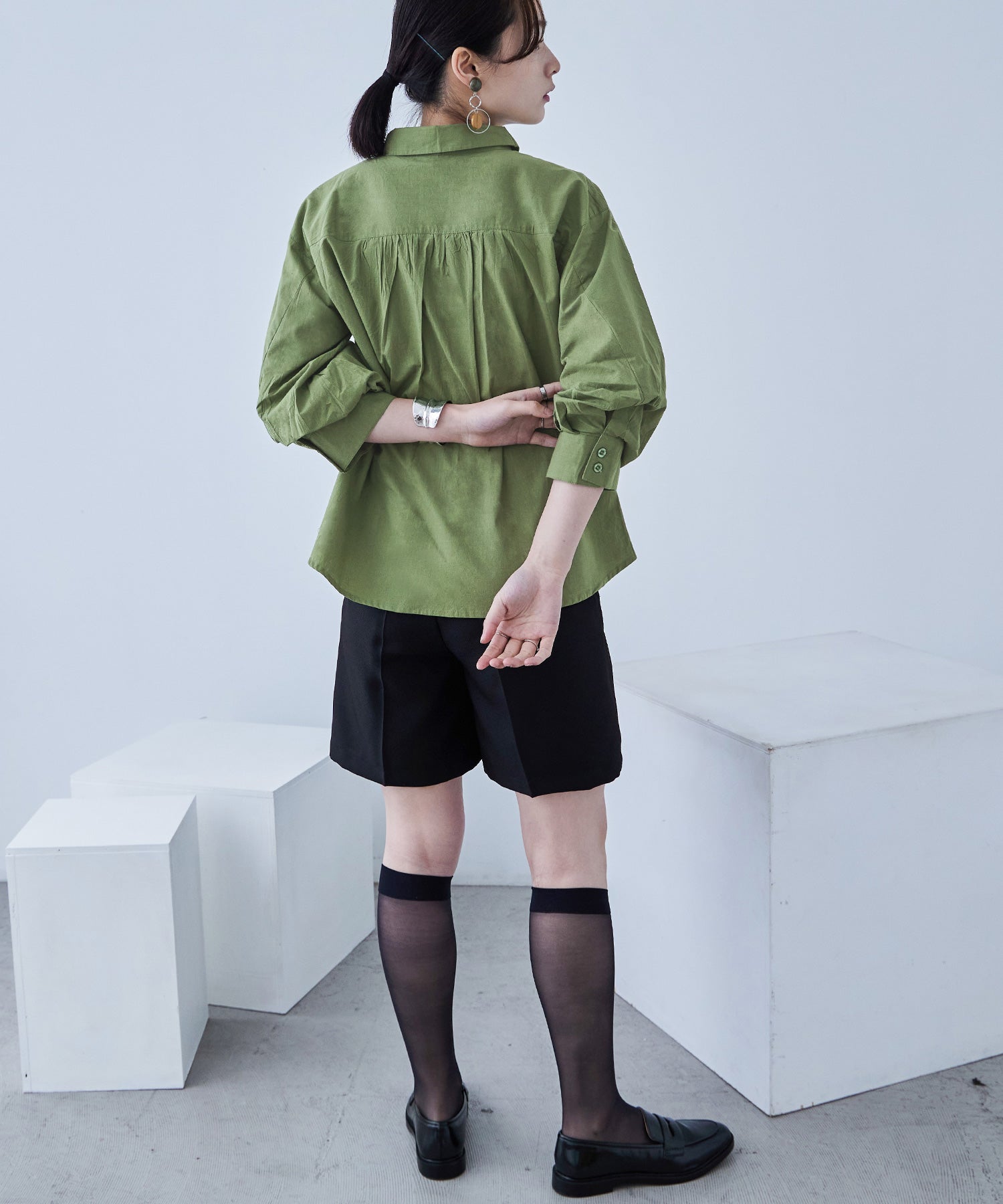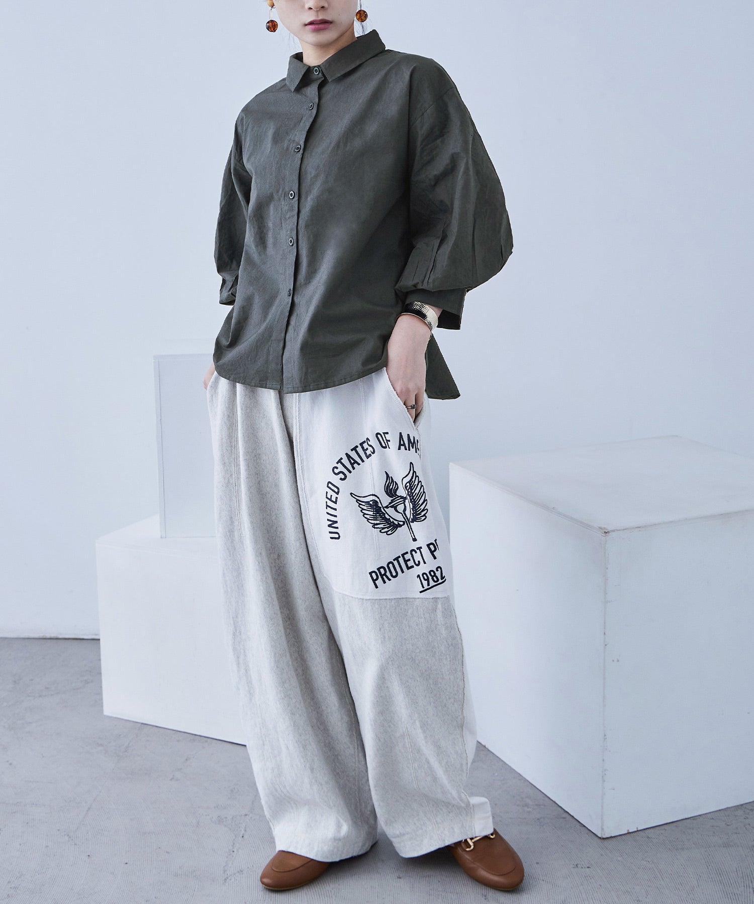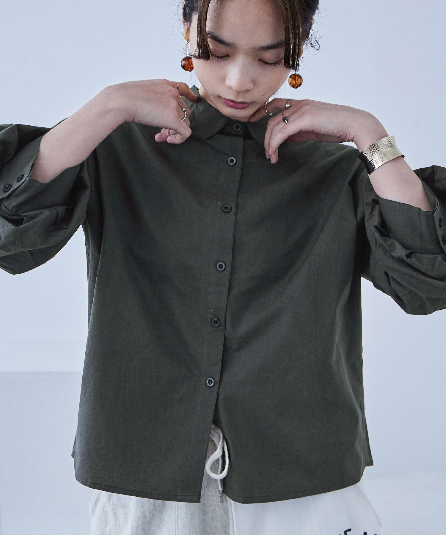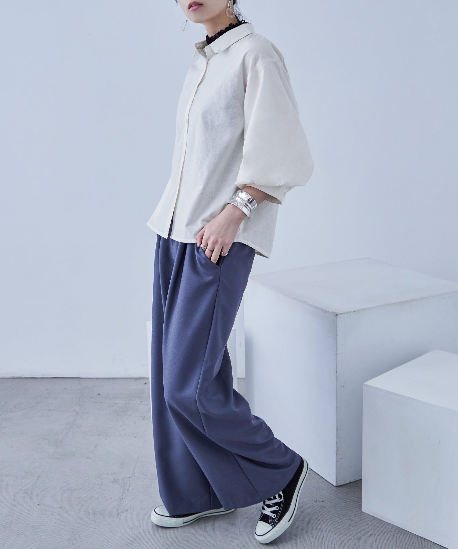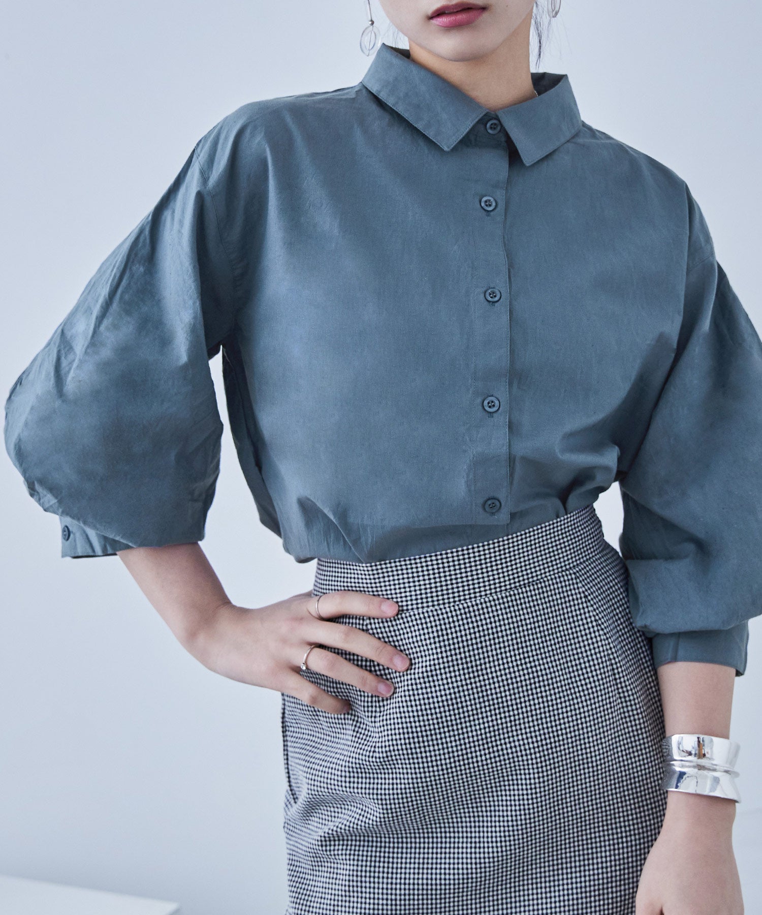 Rname ボリューム袖 タックシャツ ブラウス シャツ レディース ゆったり 無地 シンプル バルーンスリーブ 韓国ファッション きれいめ ママコーデ