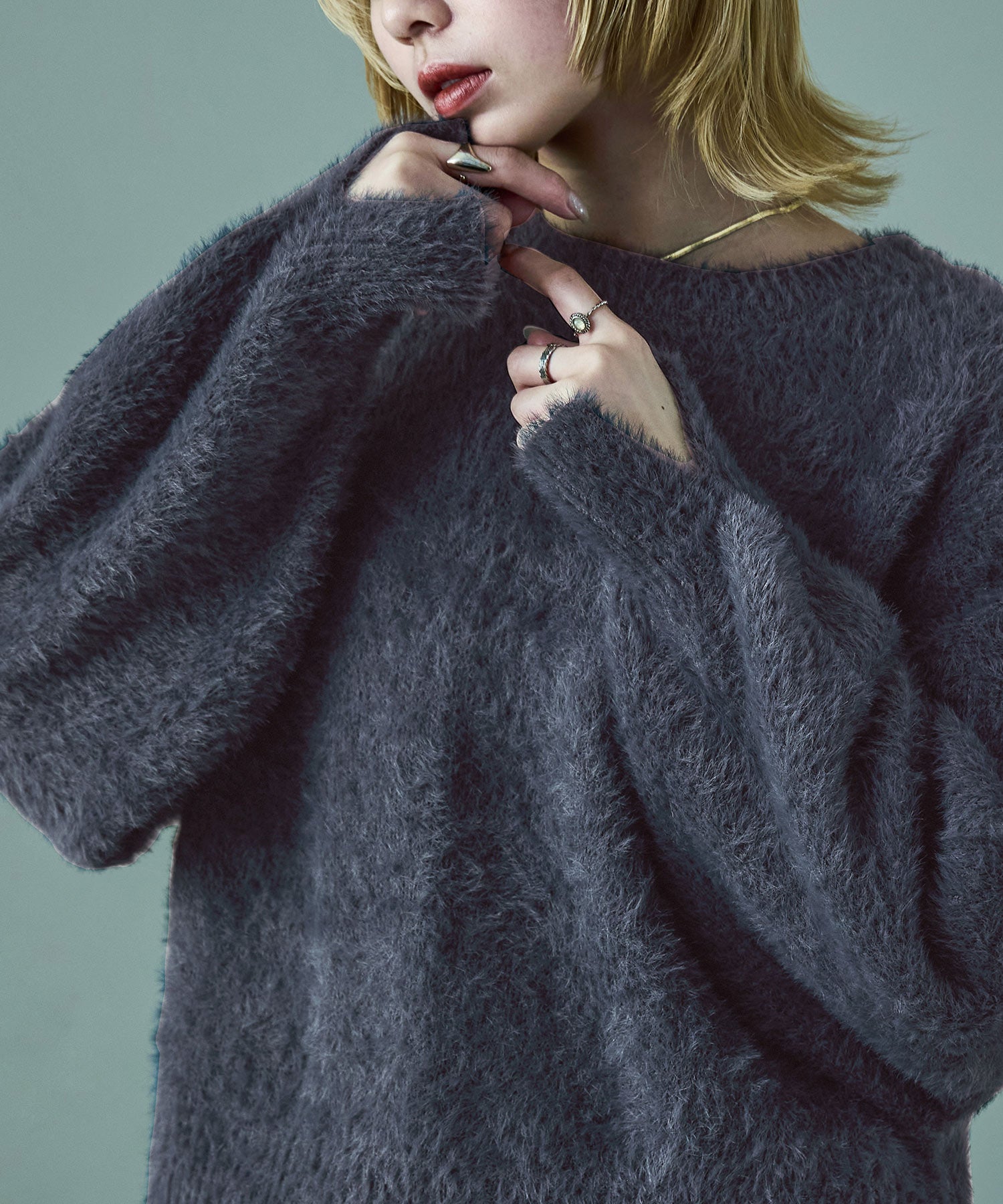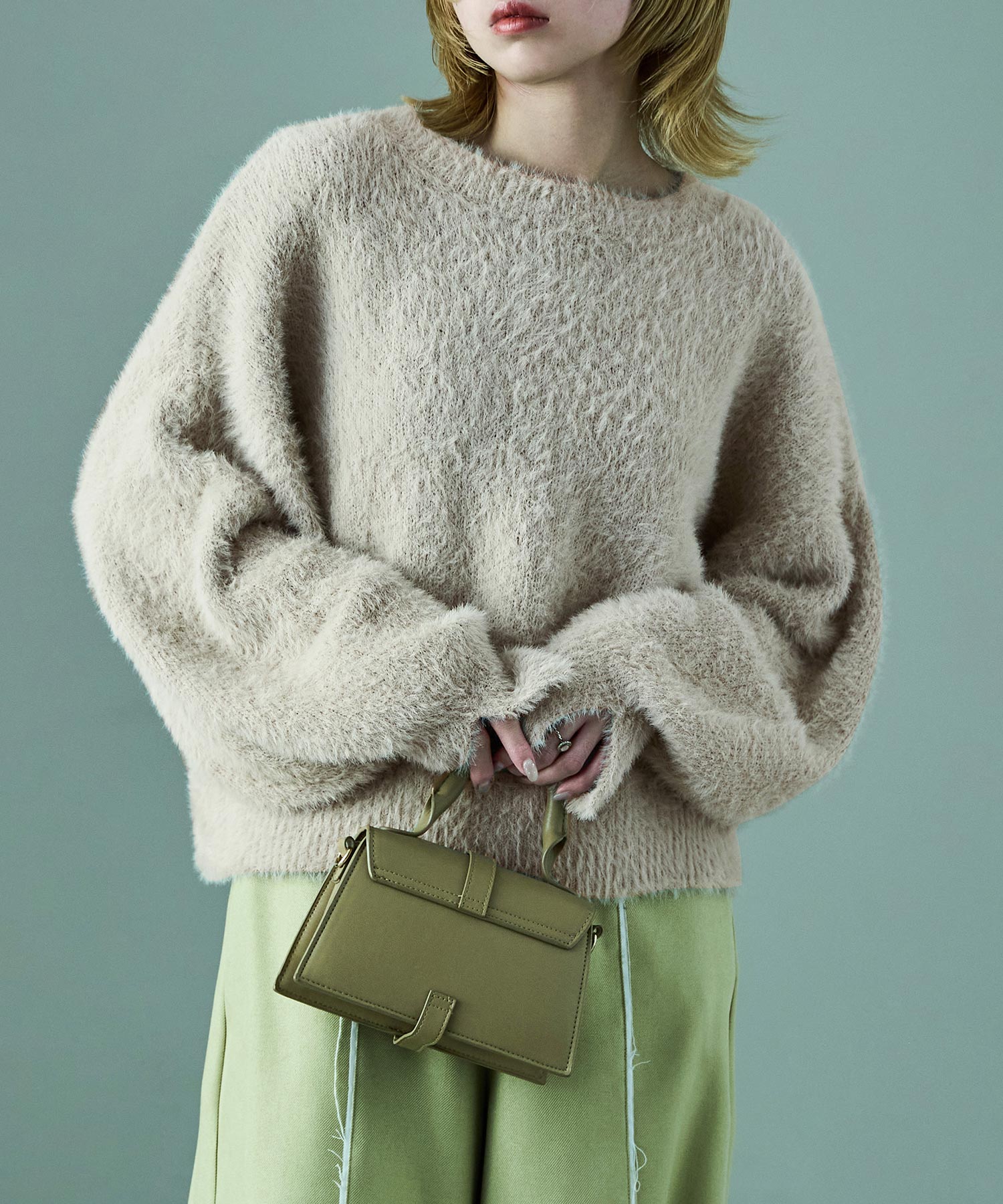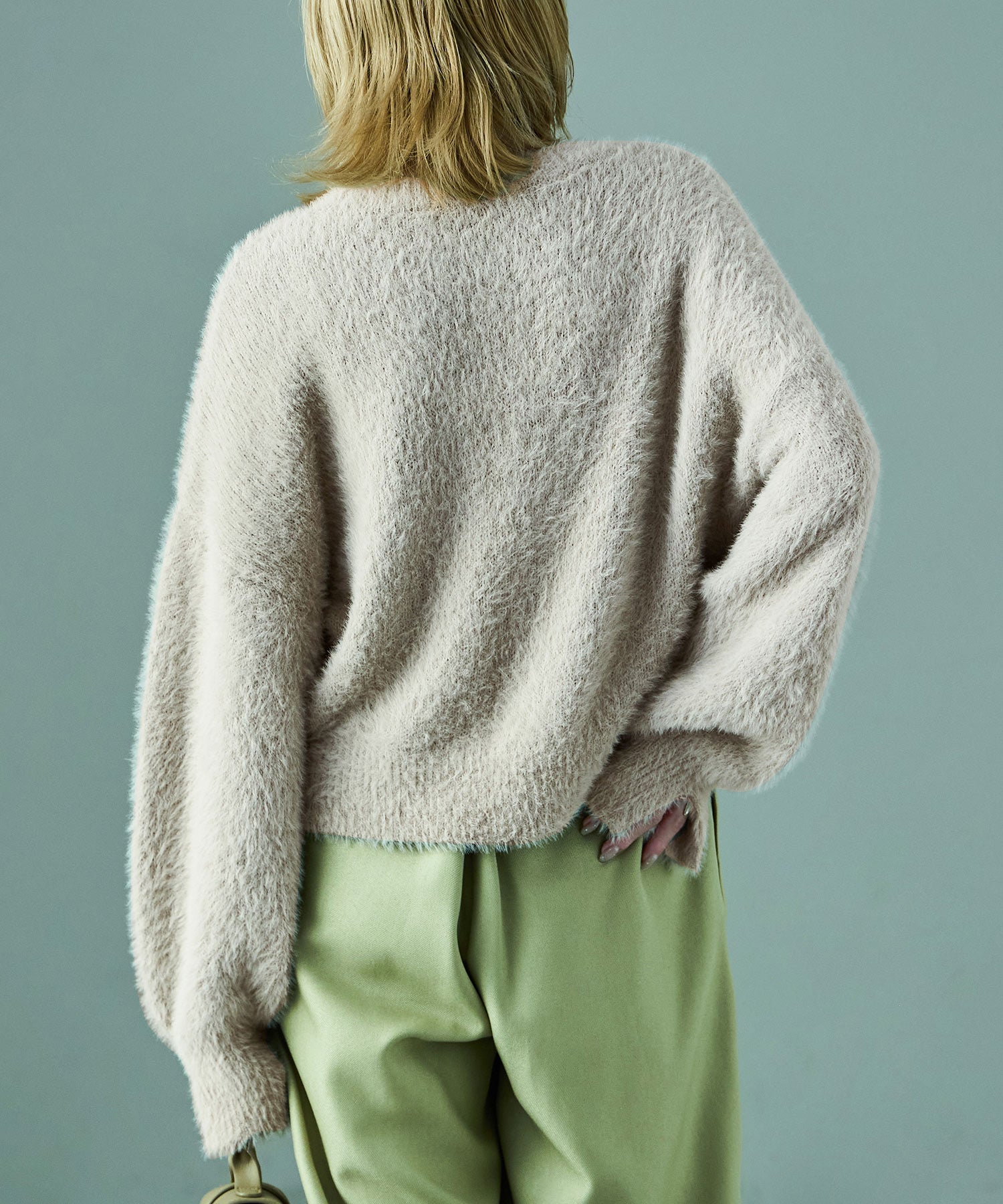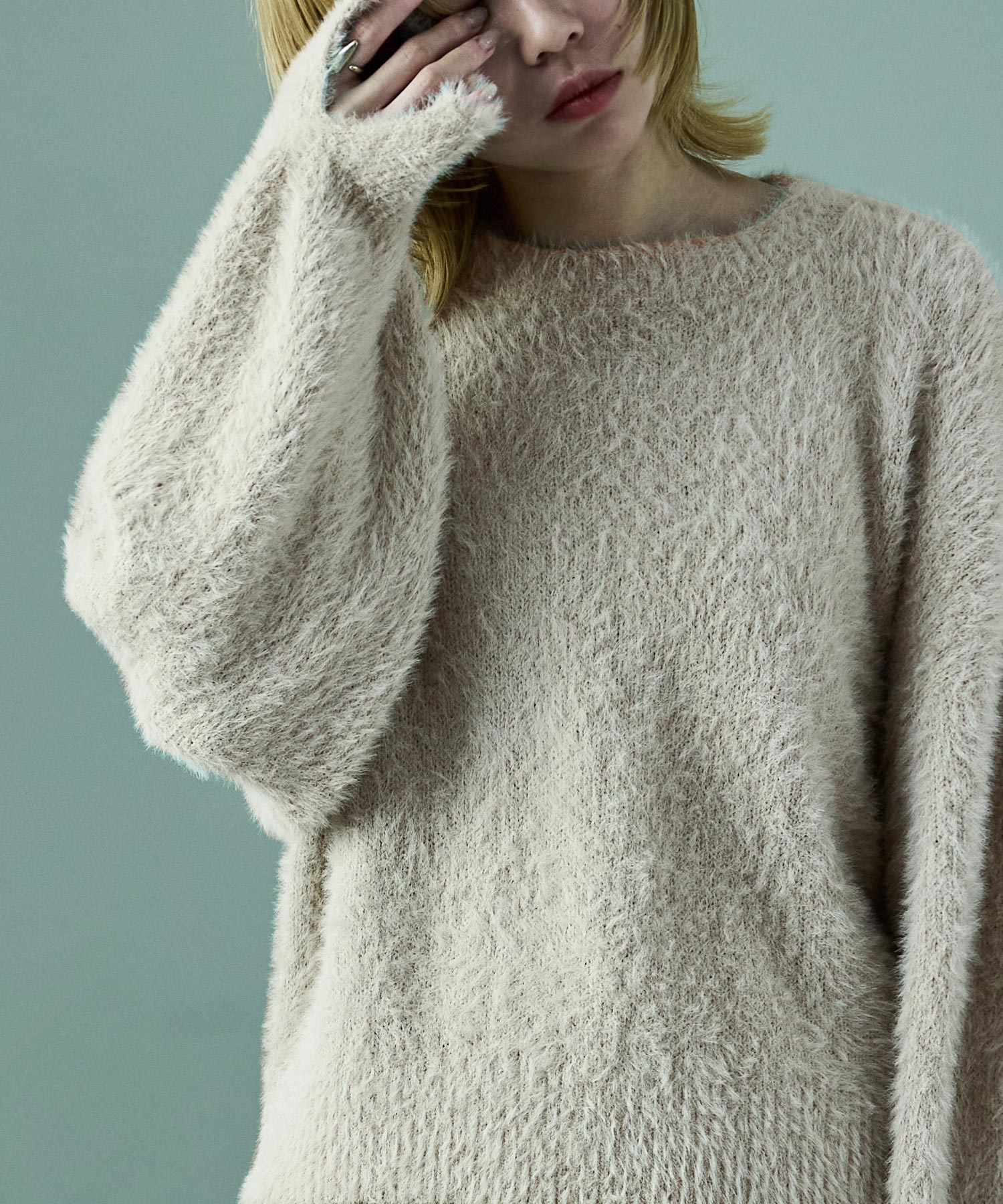 ふわふわ柔らかな肌触りのシャギーニット。