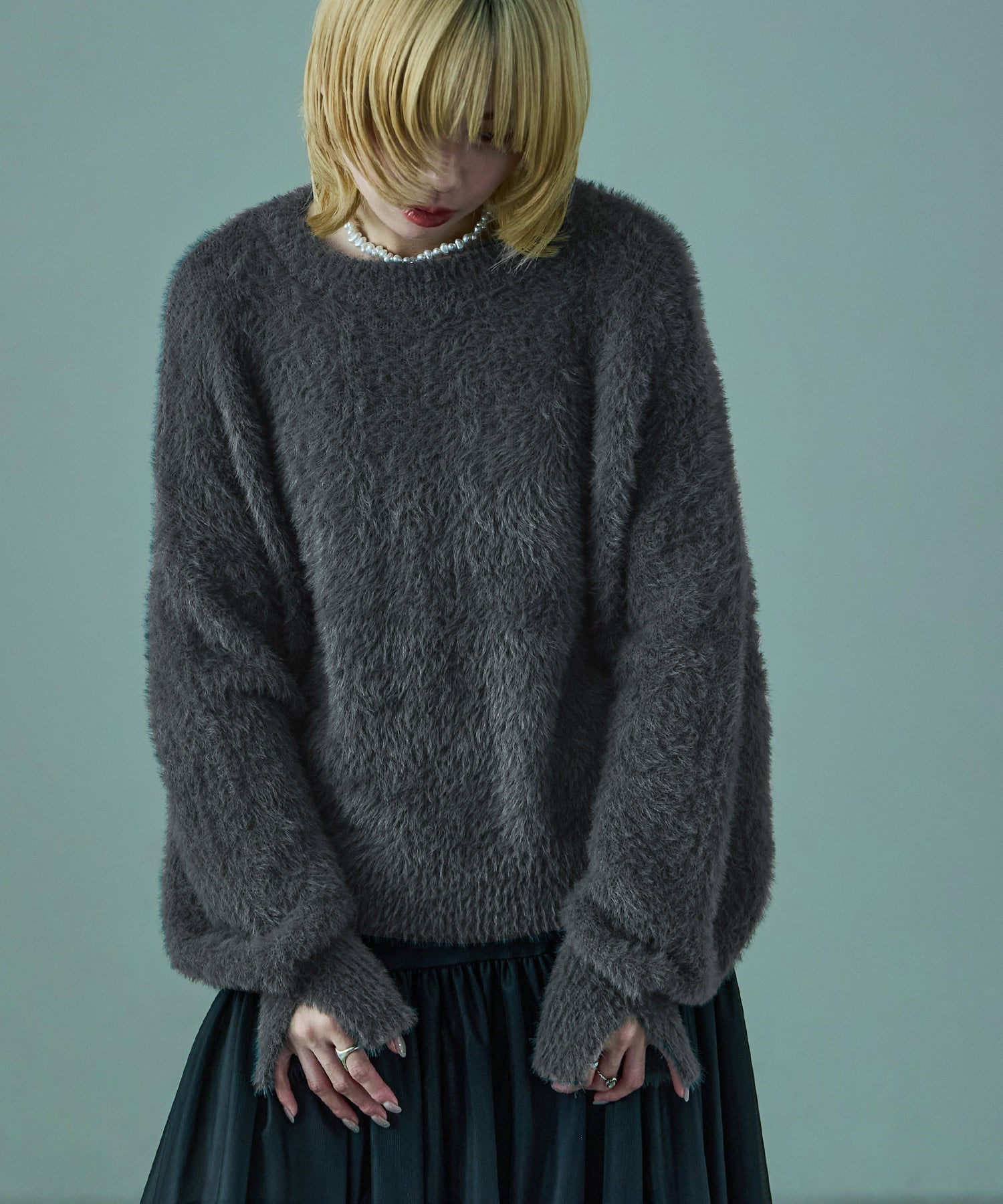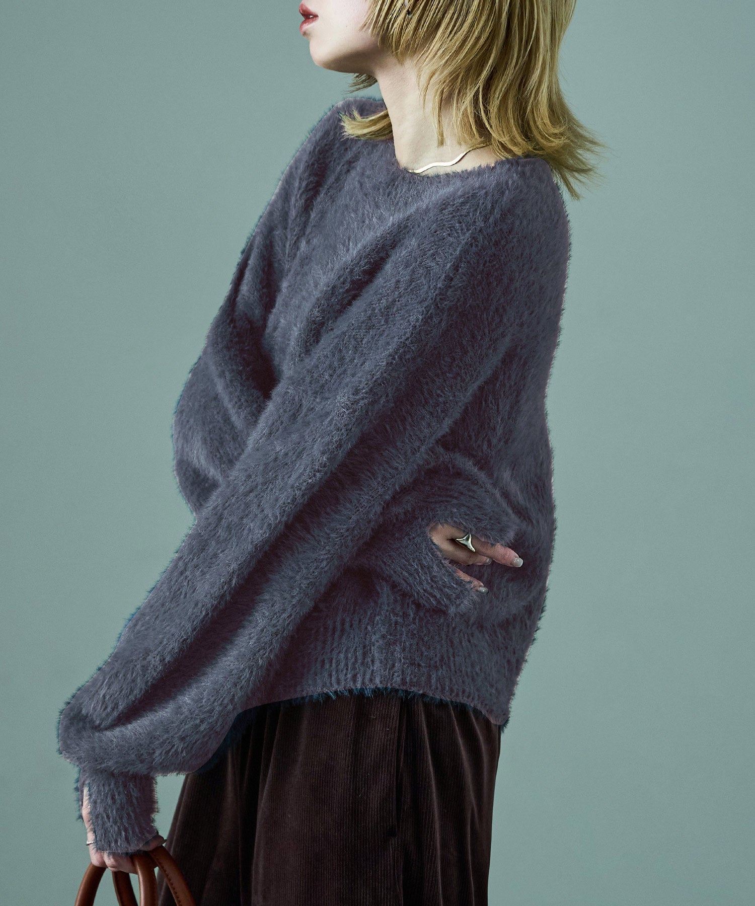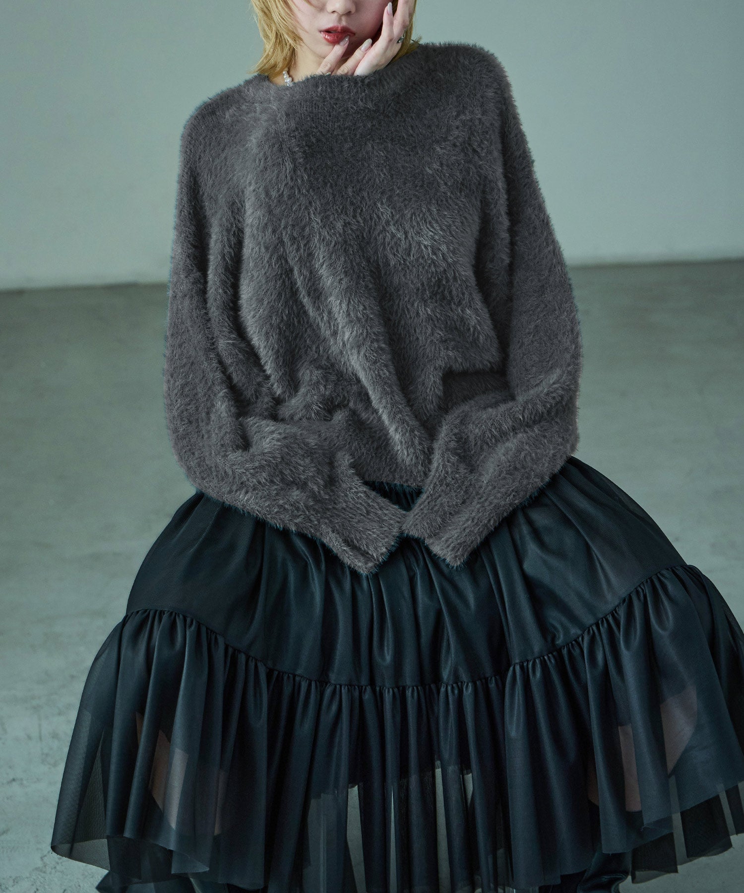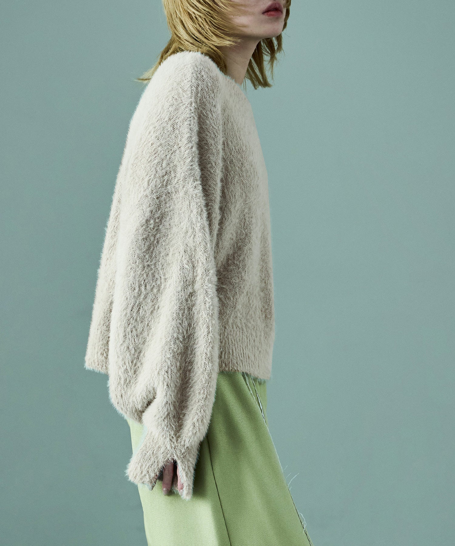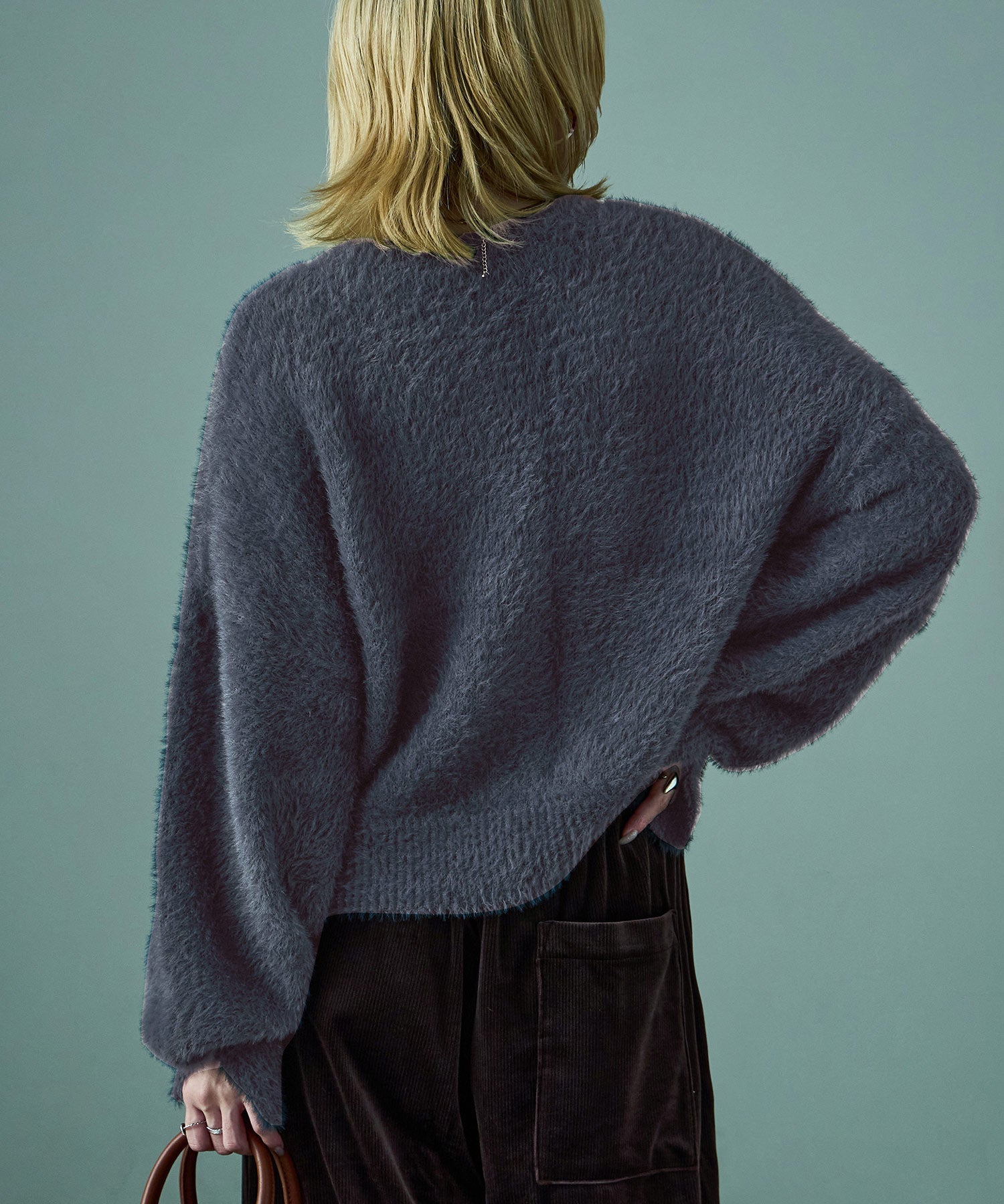 ふわふわ柔らかな肌触りのシャギーニット。