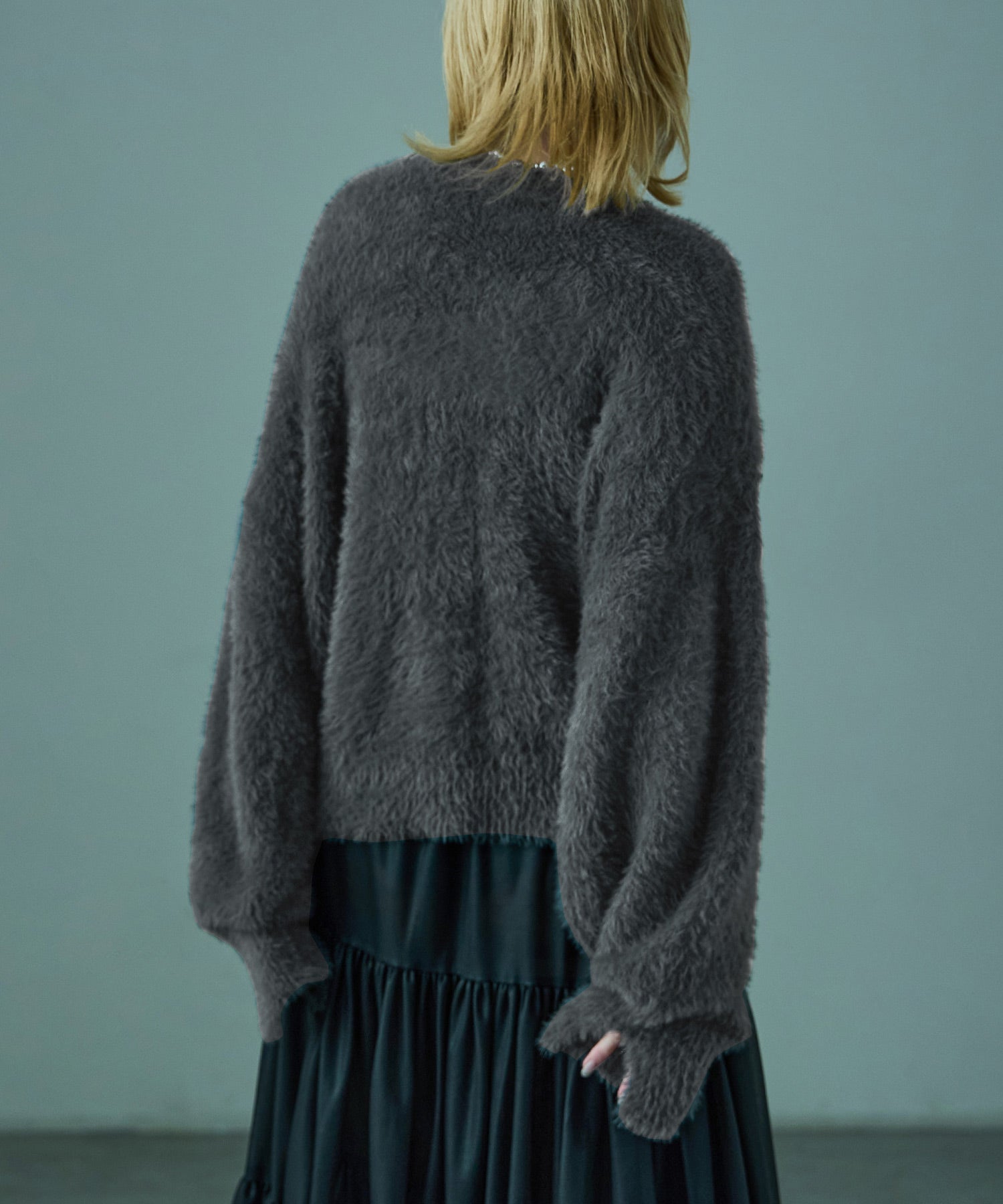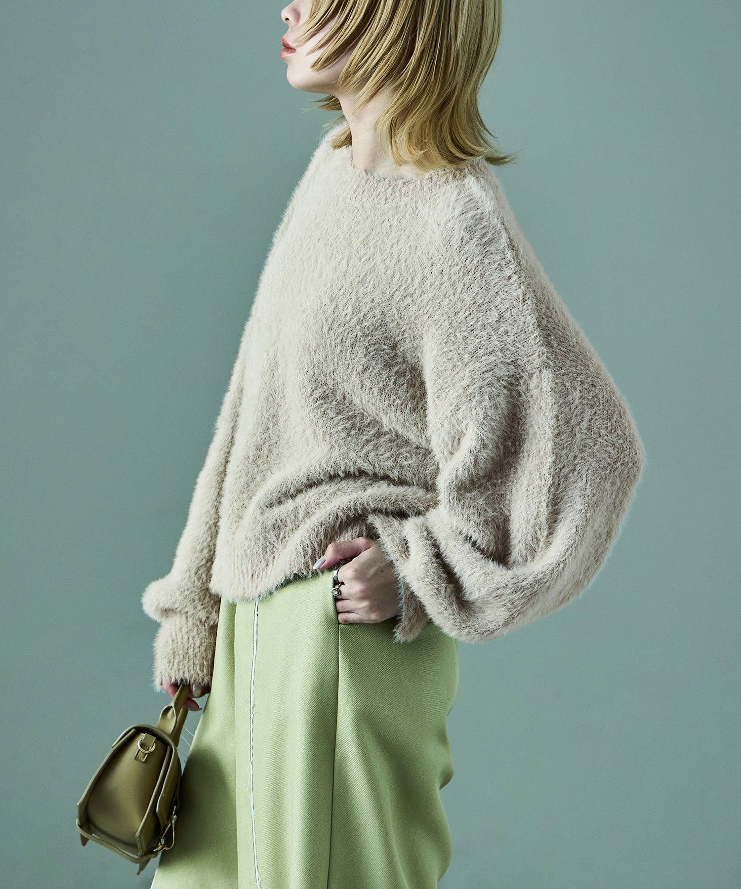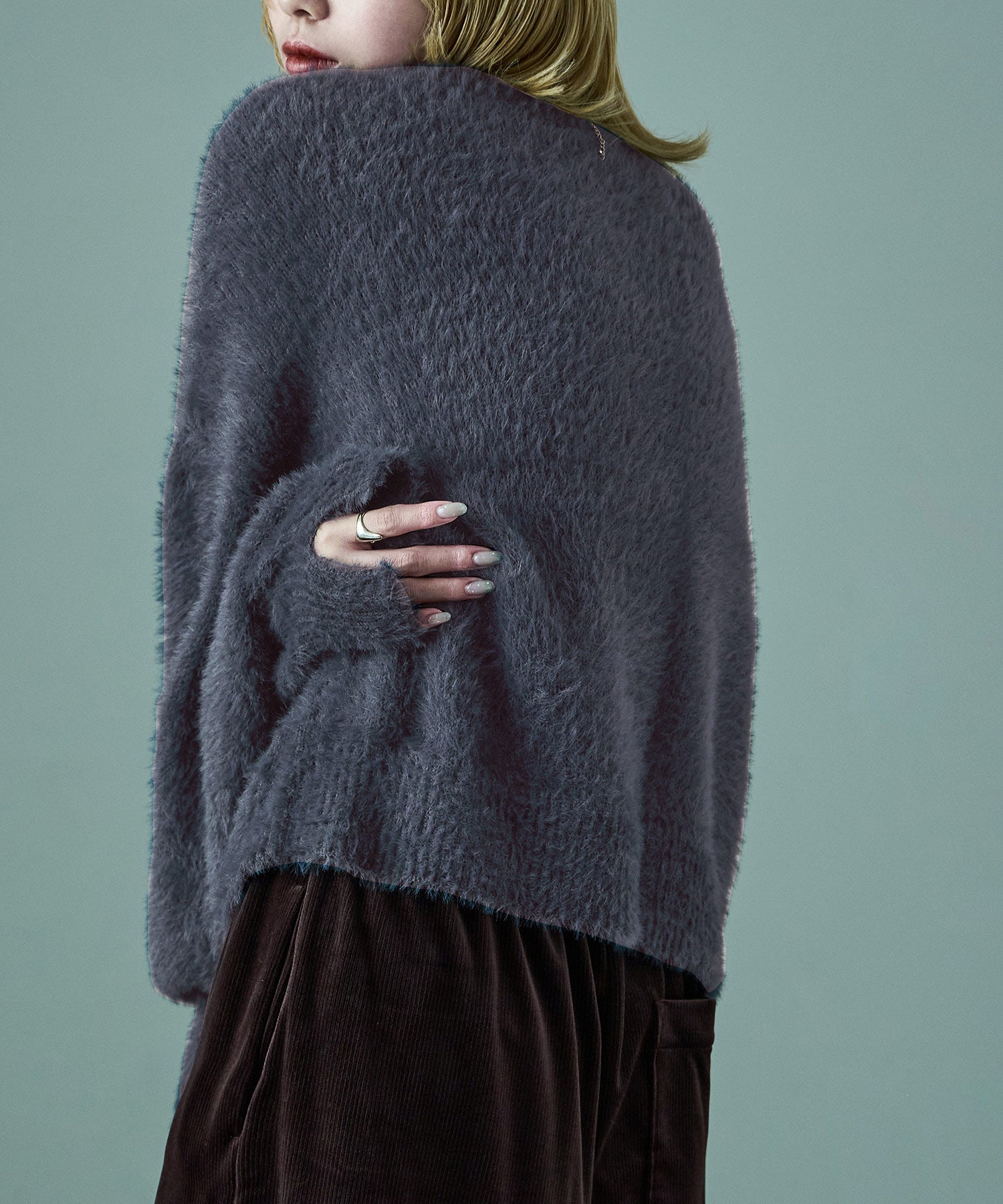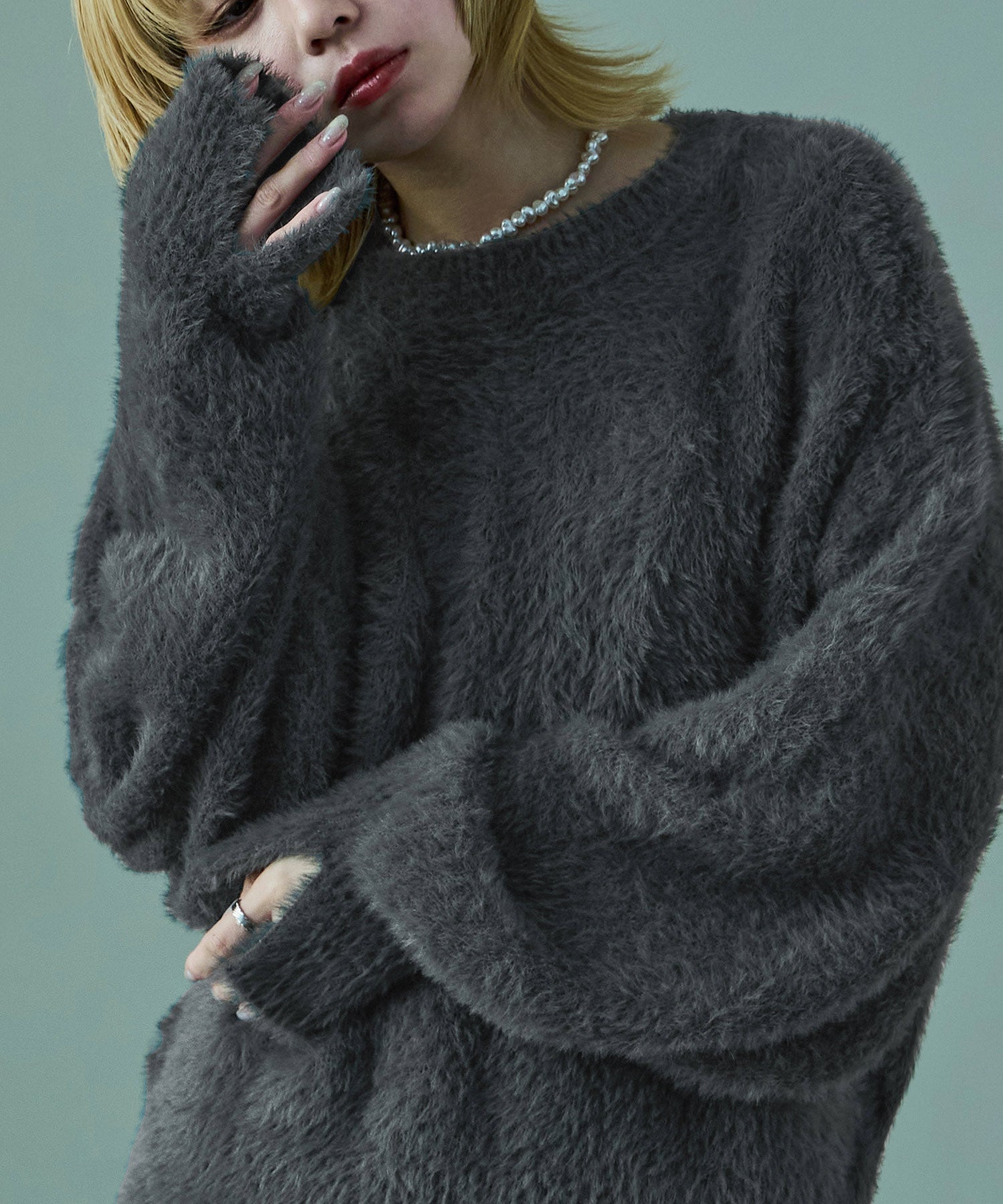 ふわふわ柔らかな肌触りのシャギーニット。