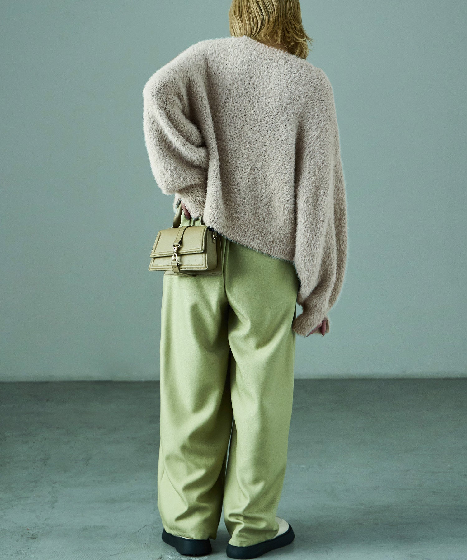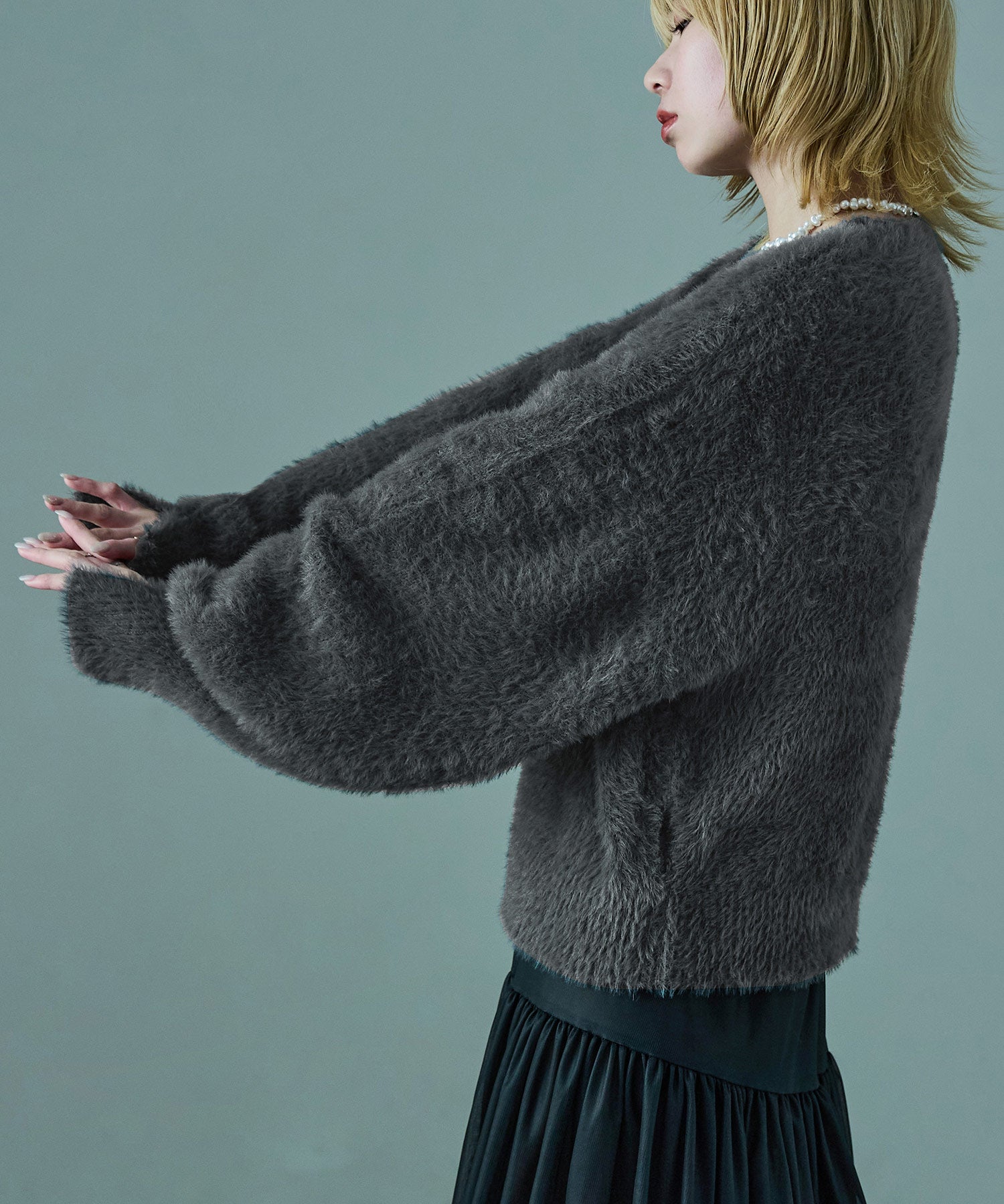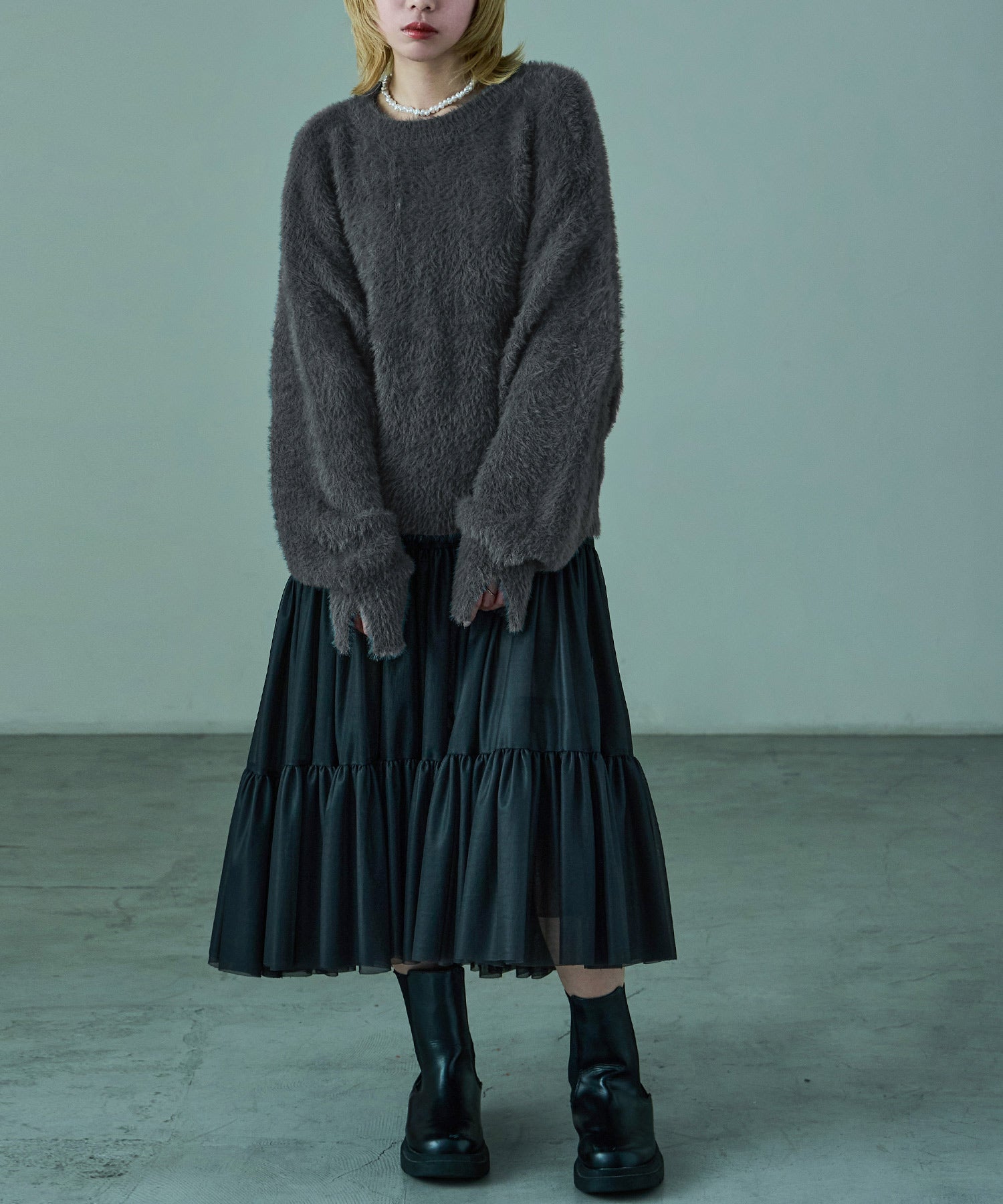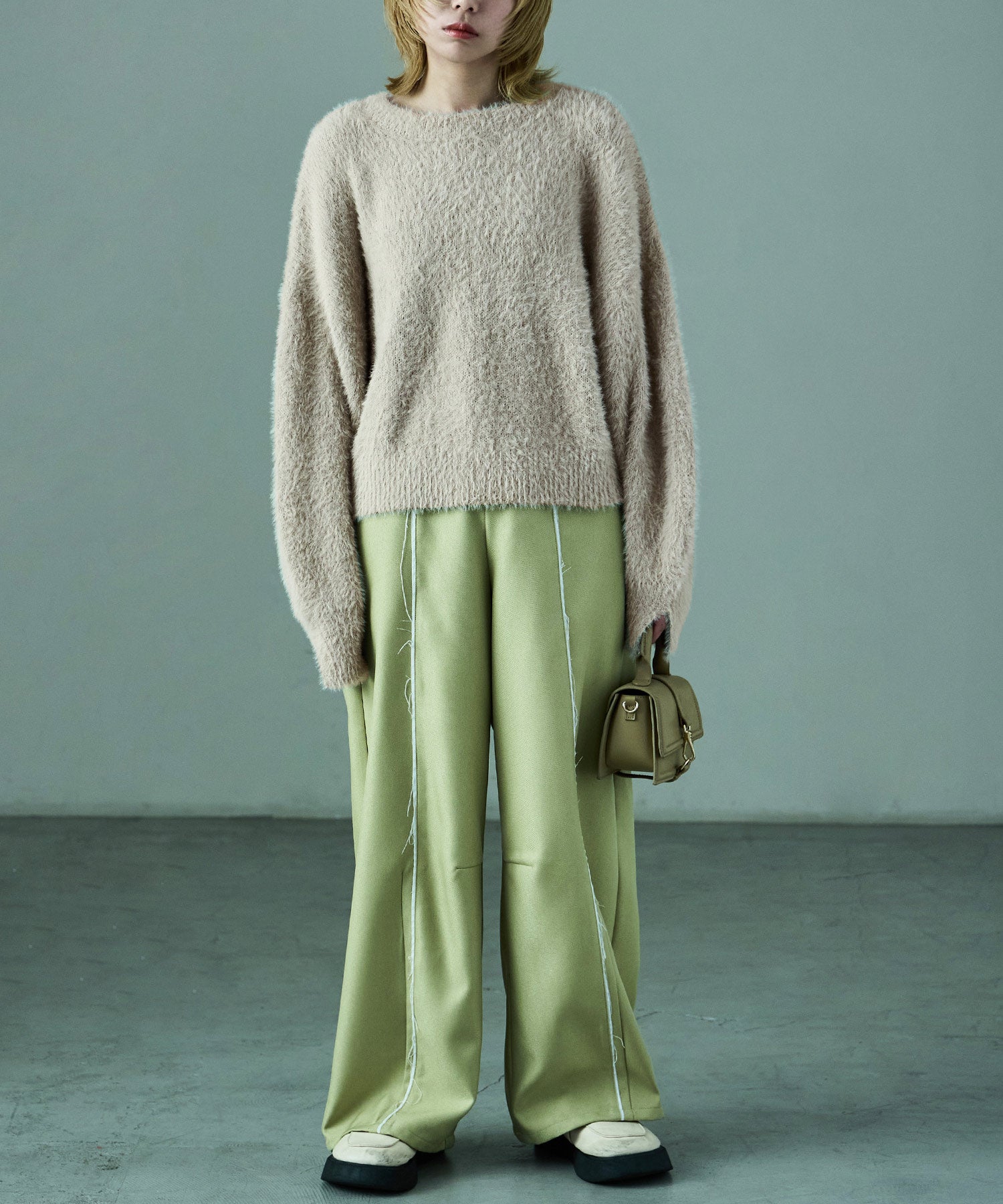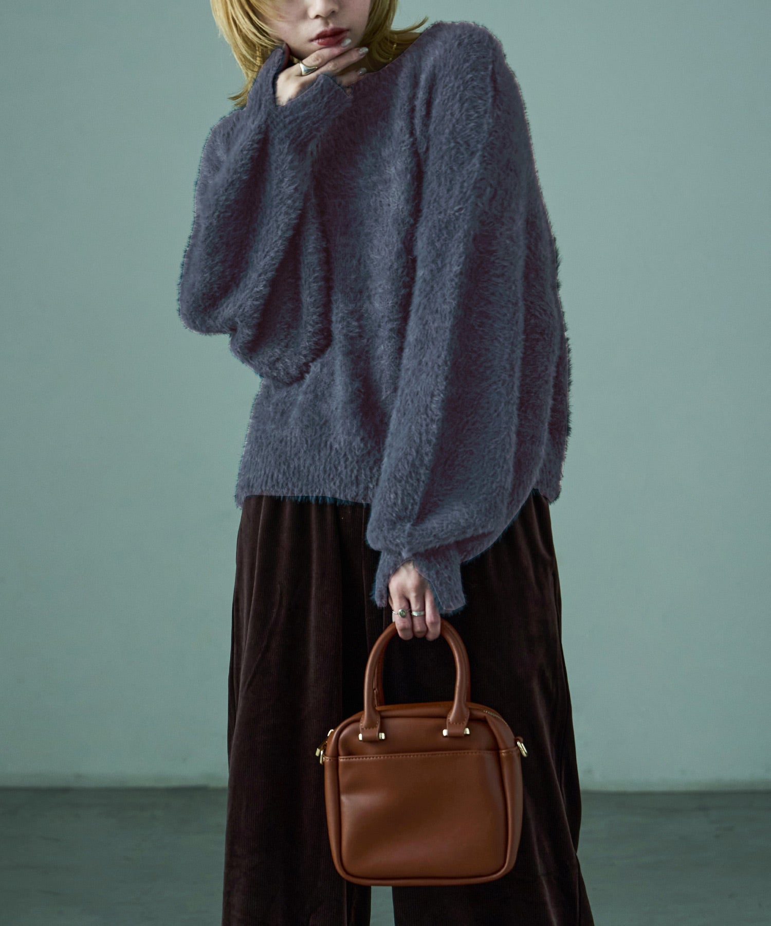 ふわふわ柔らかな肌触りのシャギーニット。