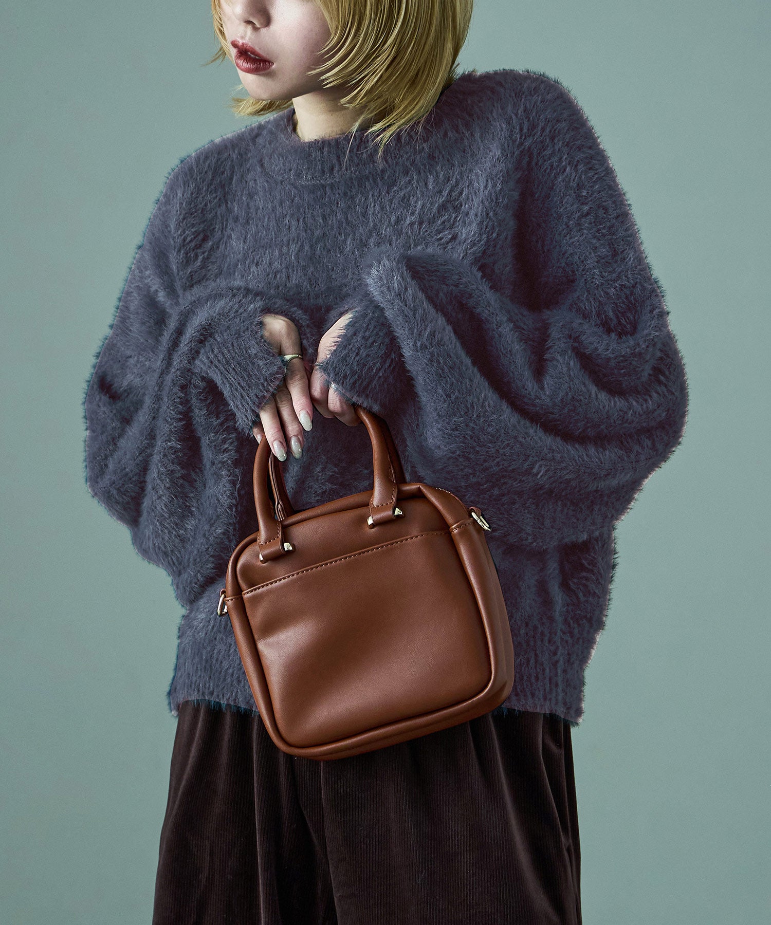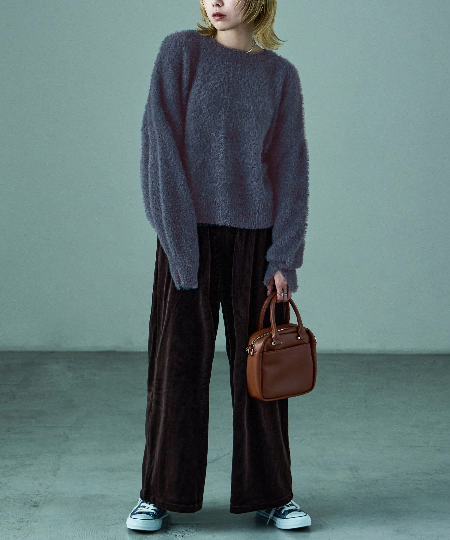 毛足長めのふわふわニットが秋冬ムードを高めてくれる。