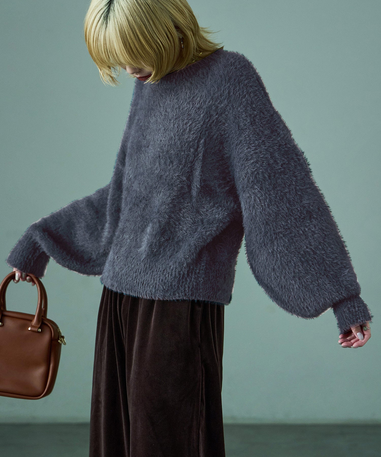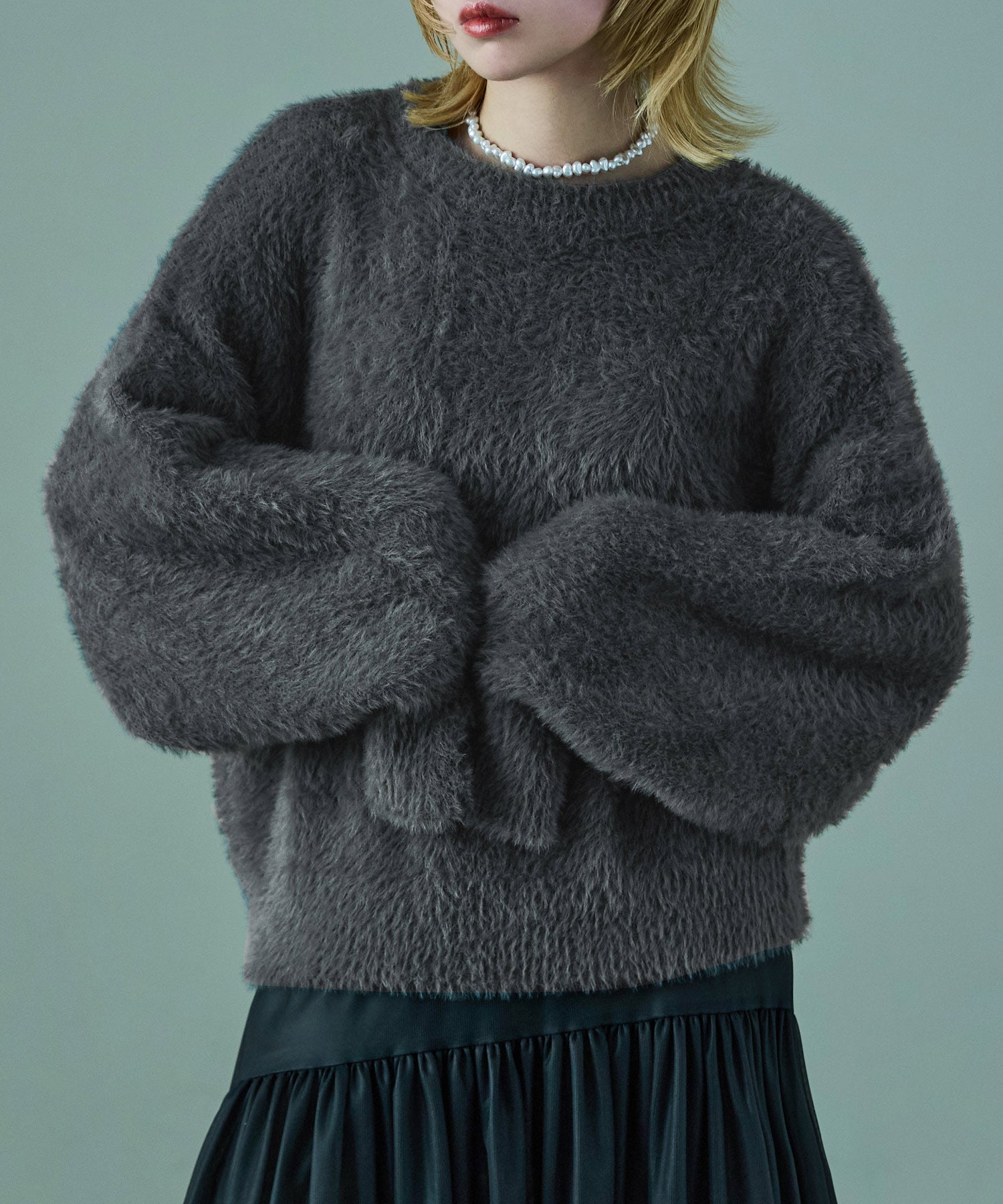 Zname シャギーニット オーバーサイズ ボリューム袖 プルオーバー