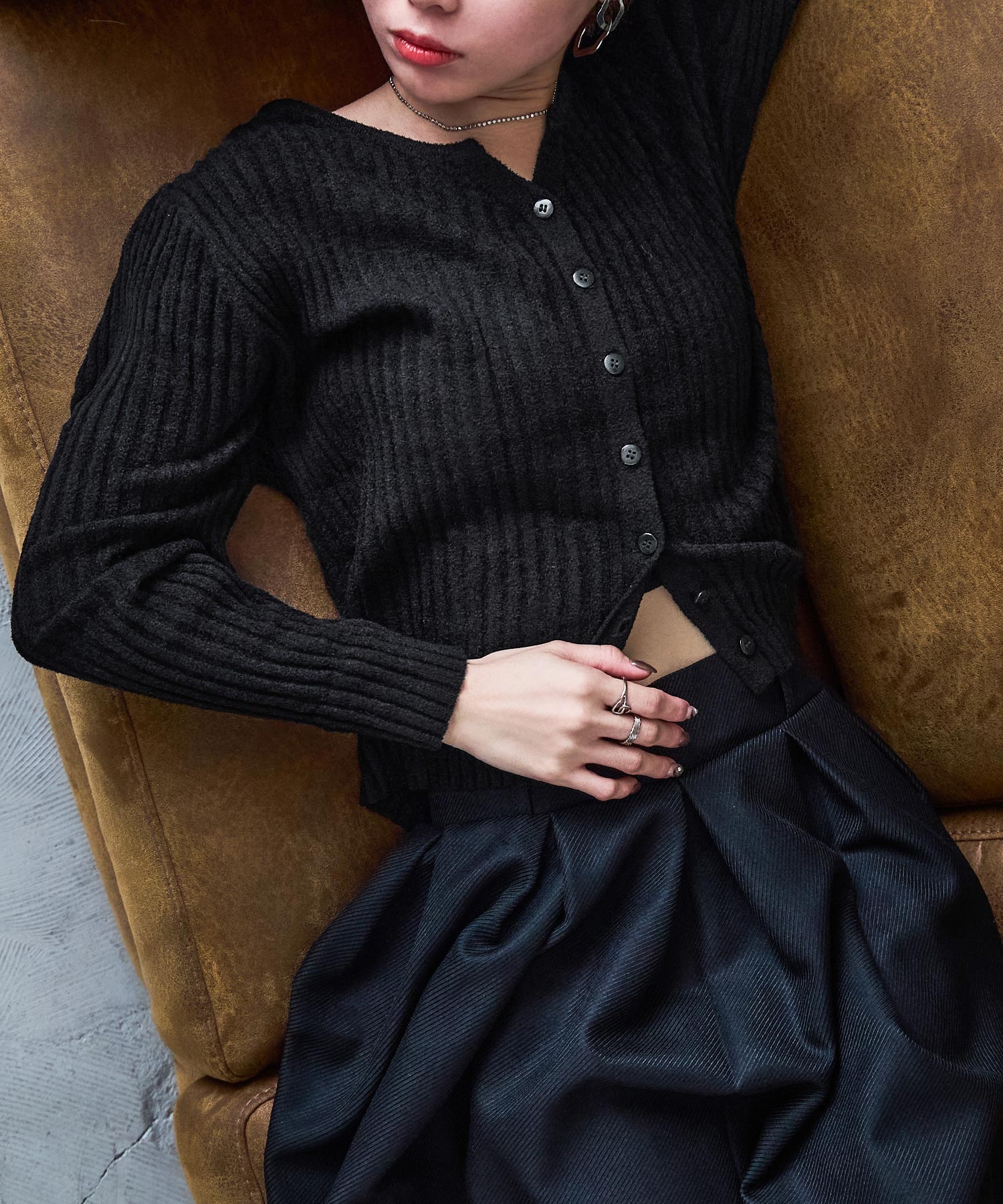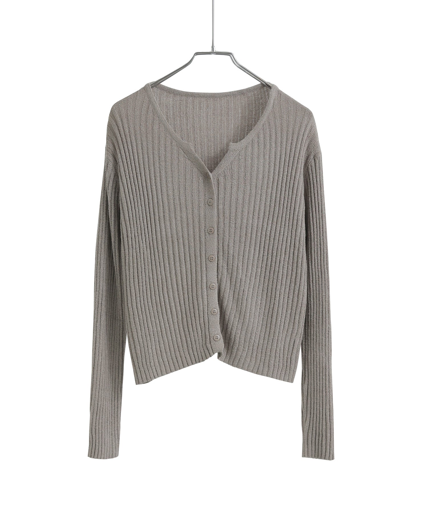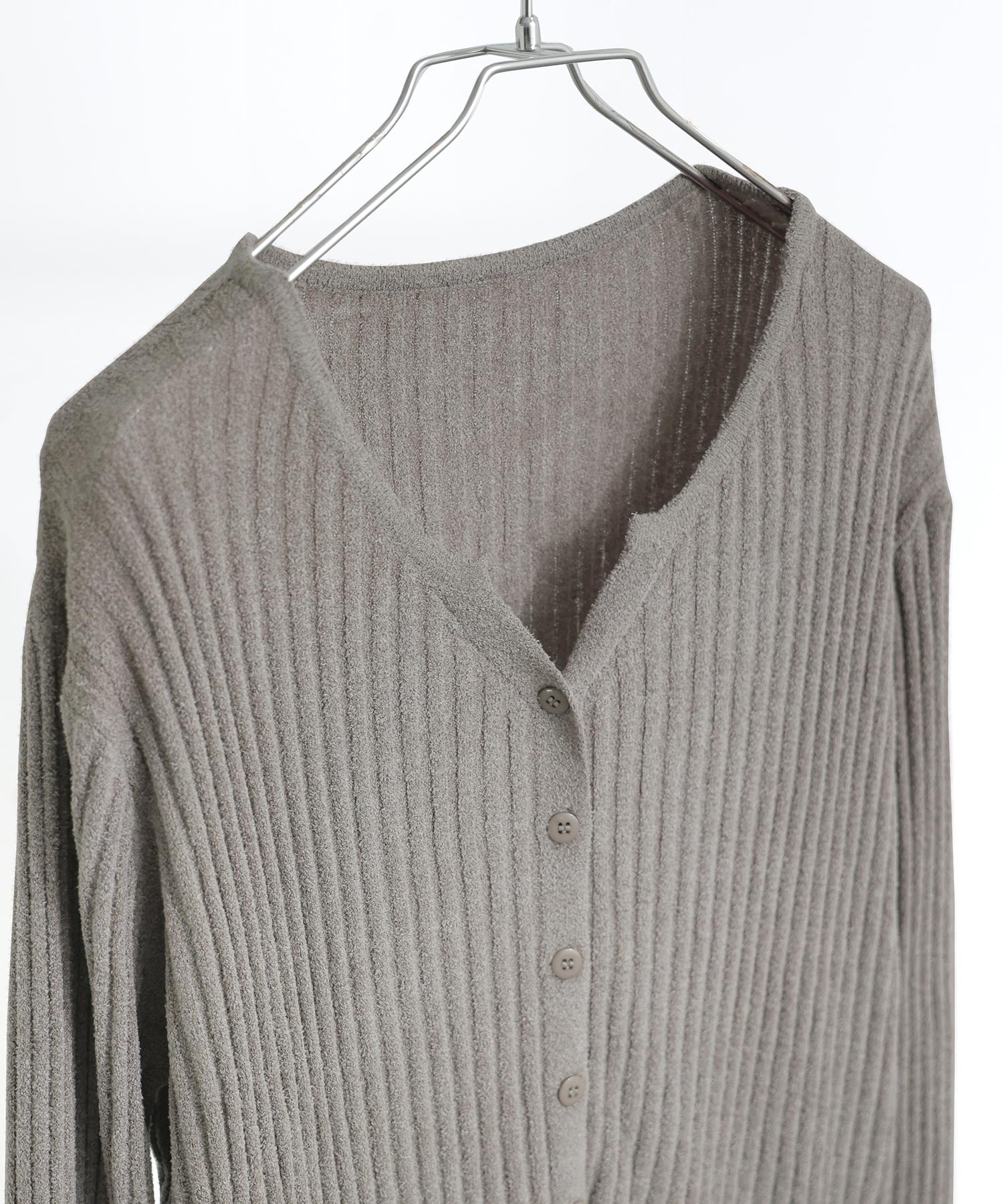 Zname ベロアモール リブニット キーネックカーディガン