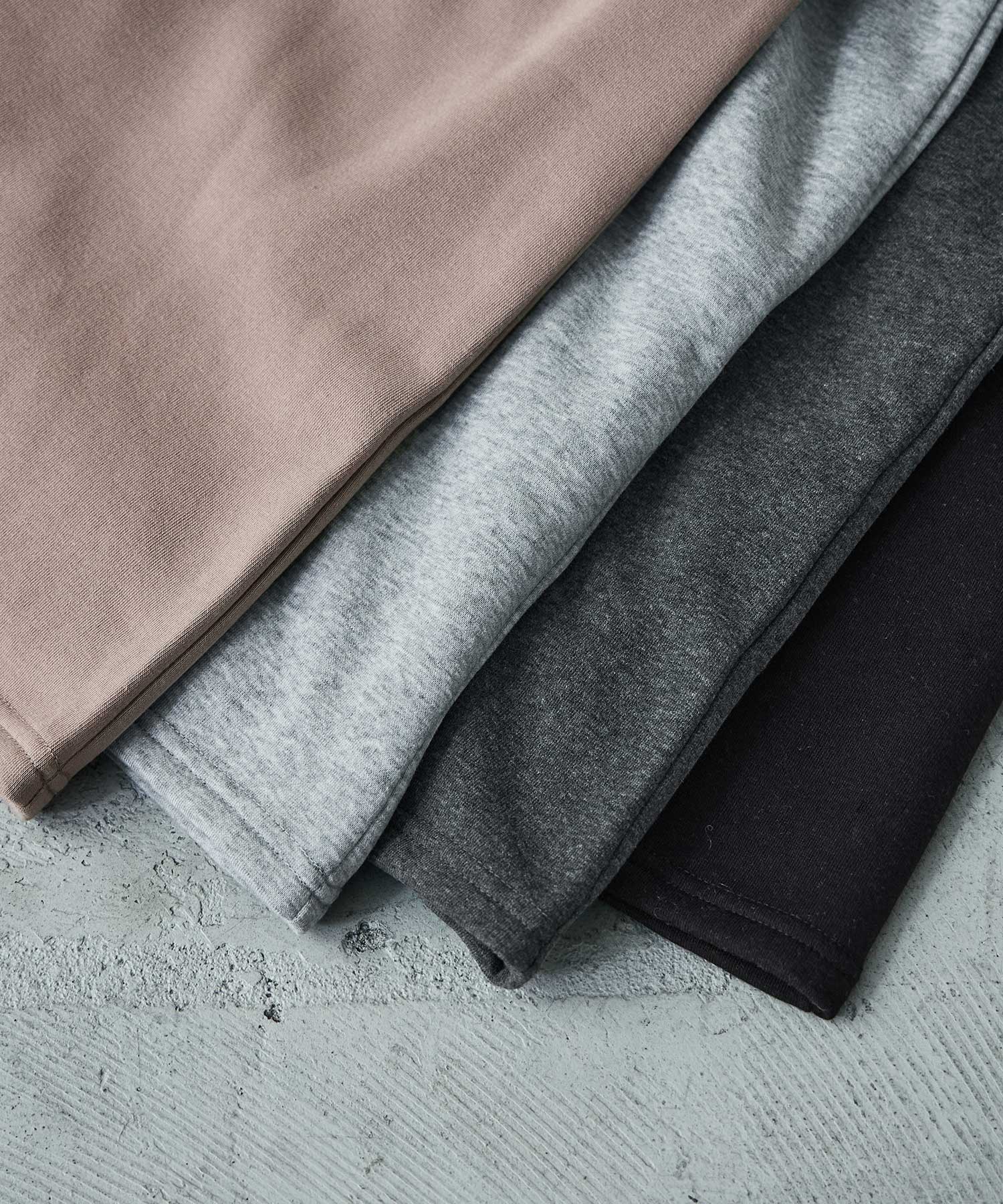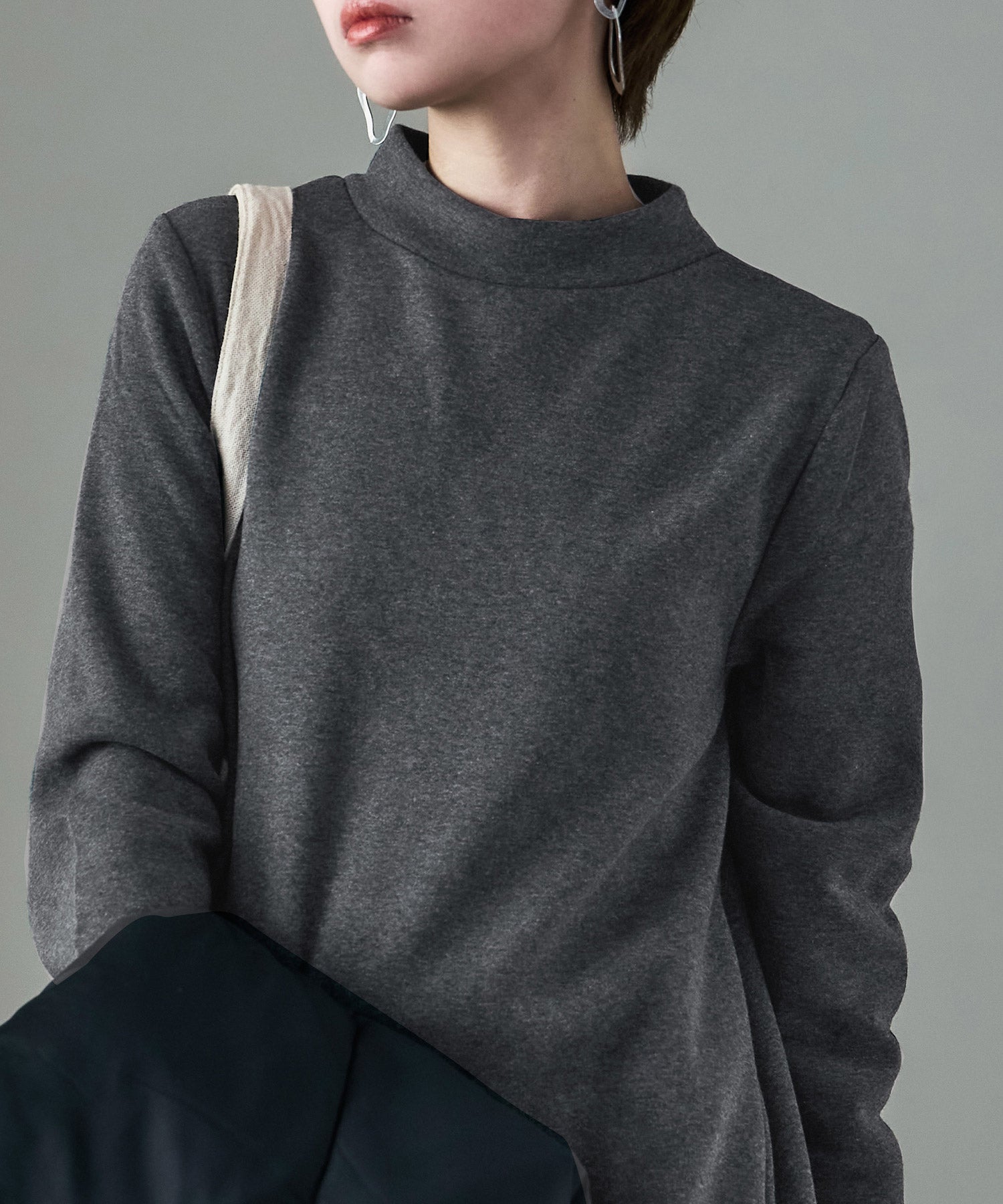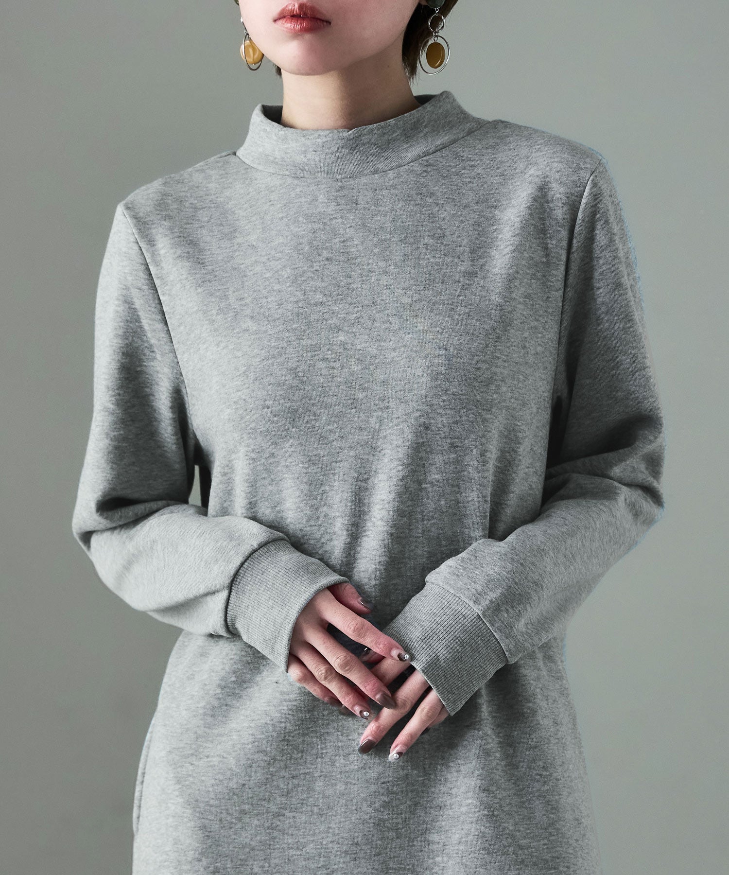 モックネックや袖口のリブがパジャマっぽくなく、ちょっとそこまでにもピッタリ。