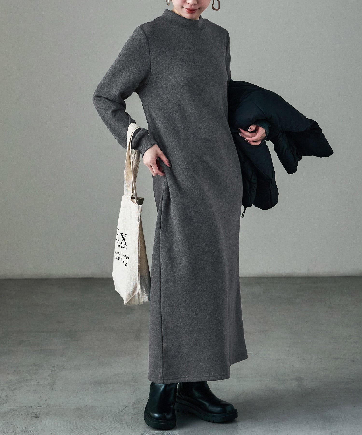 Zname M-LLsize 裏起毛 ハイネックルームワンピース