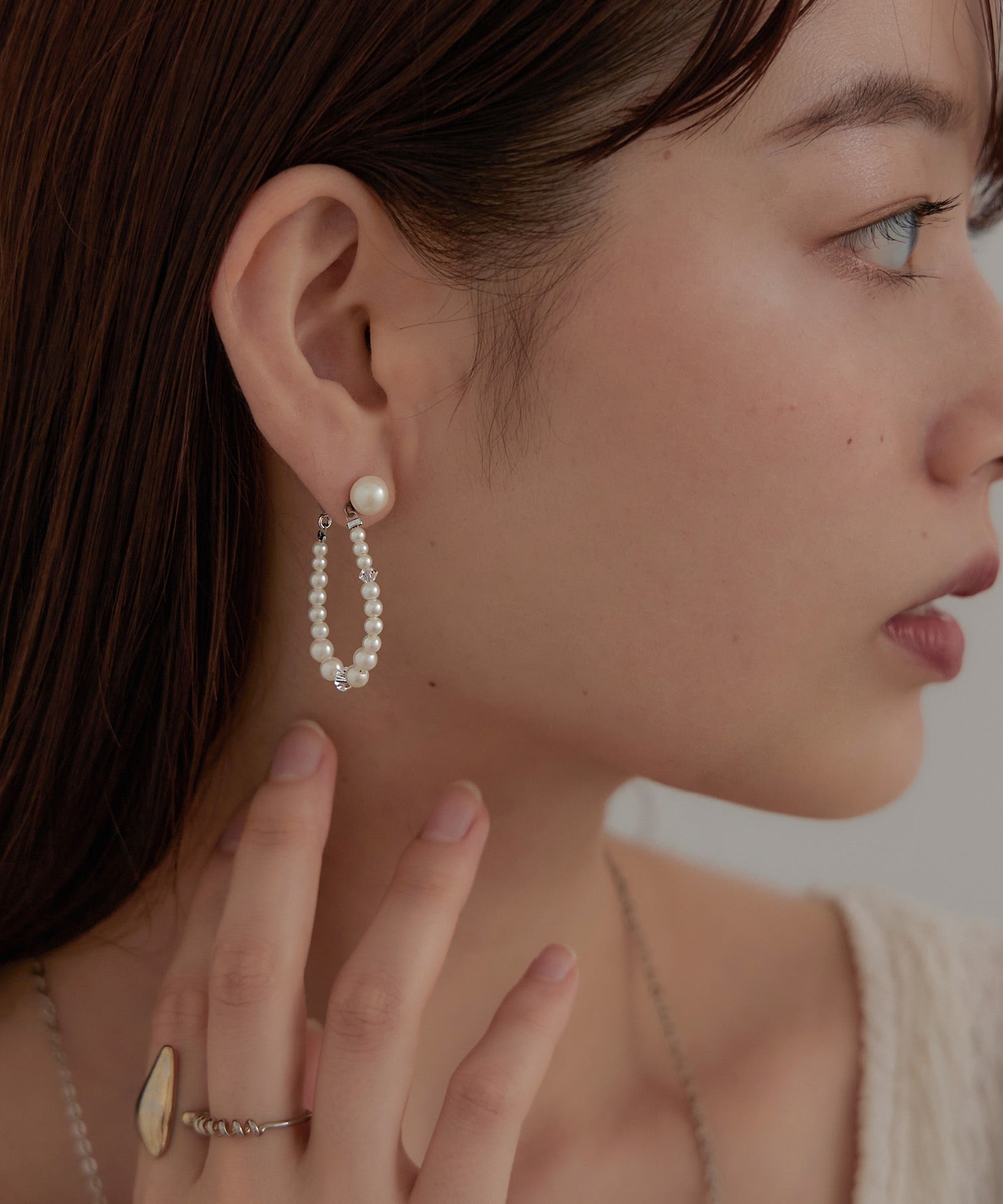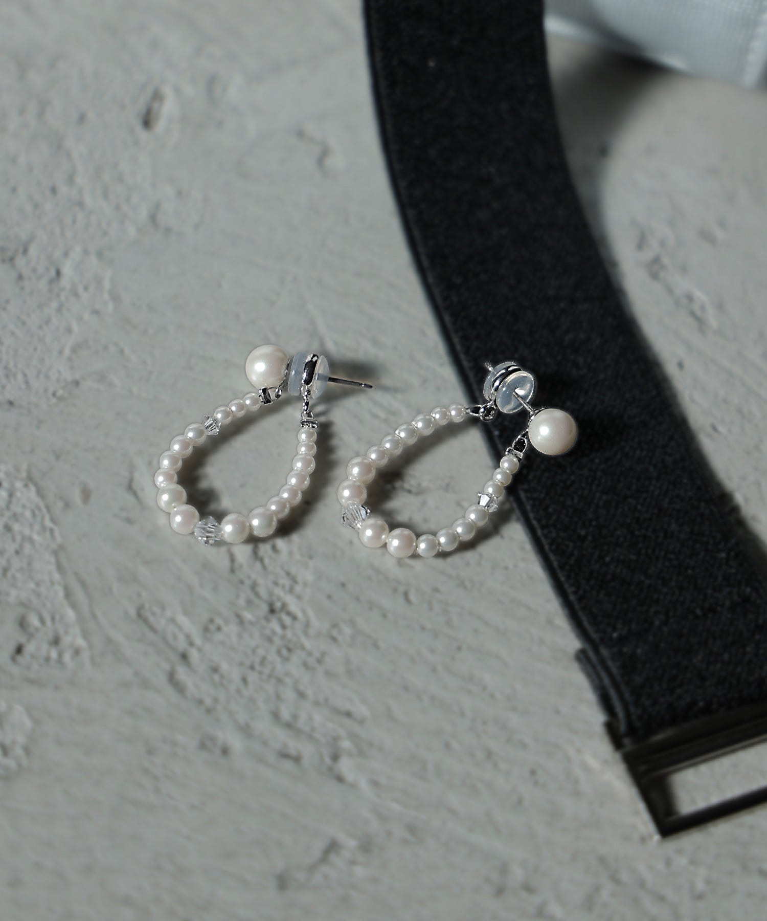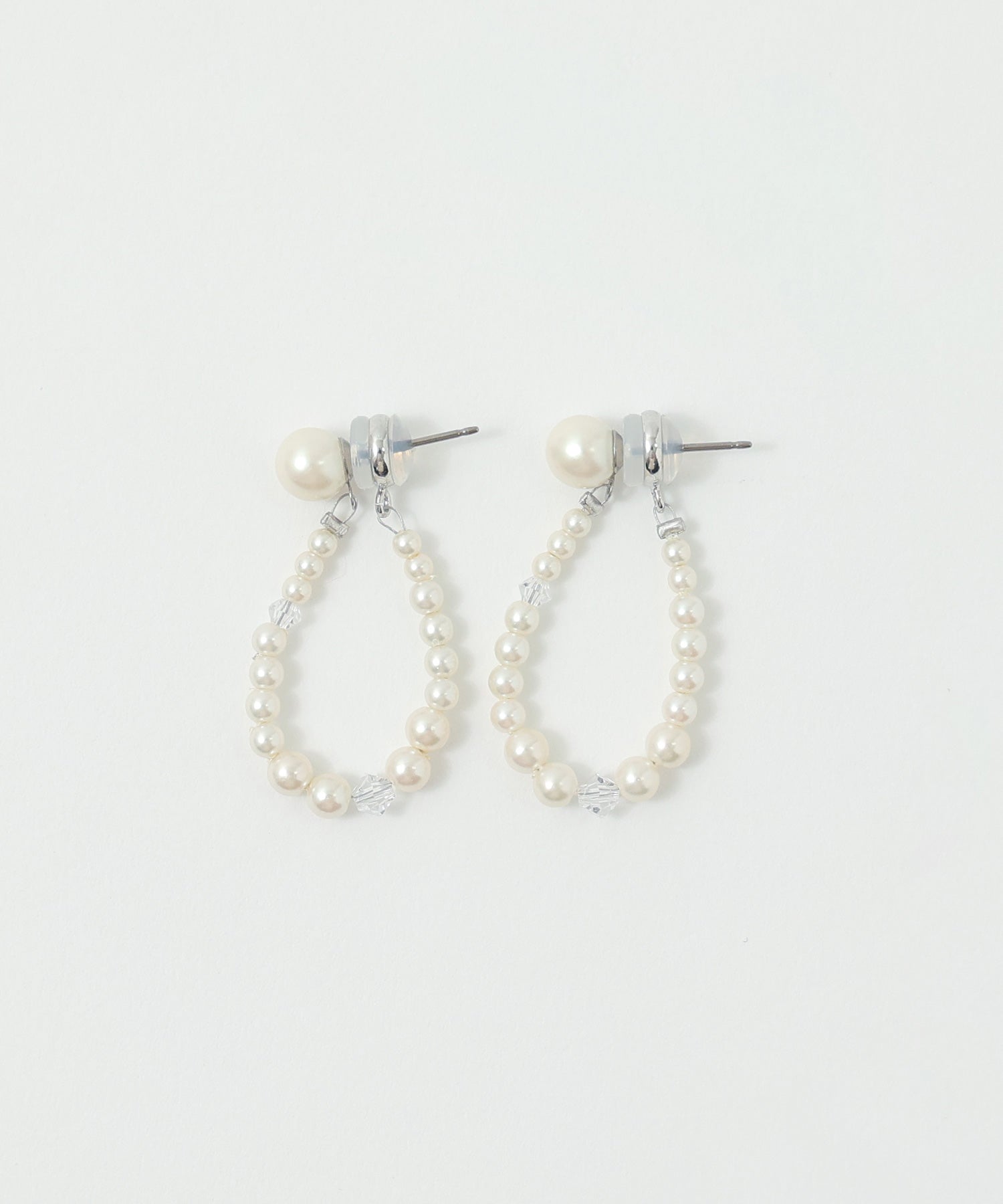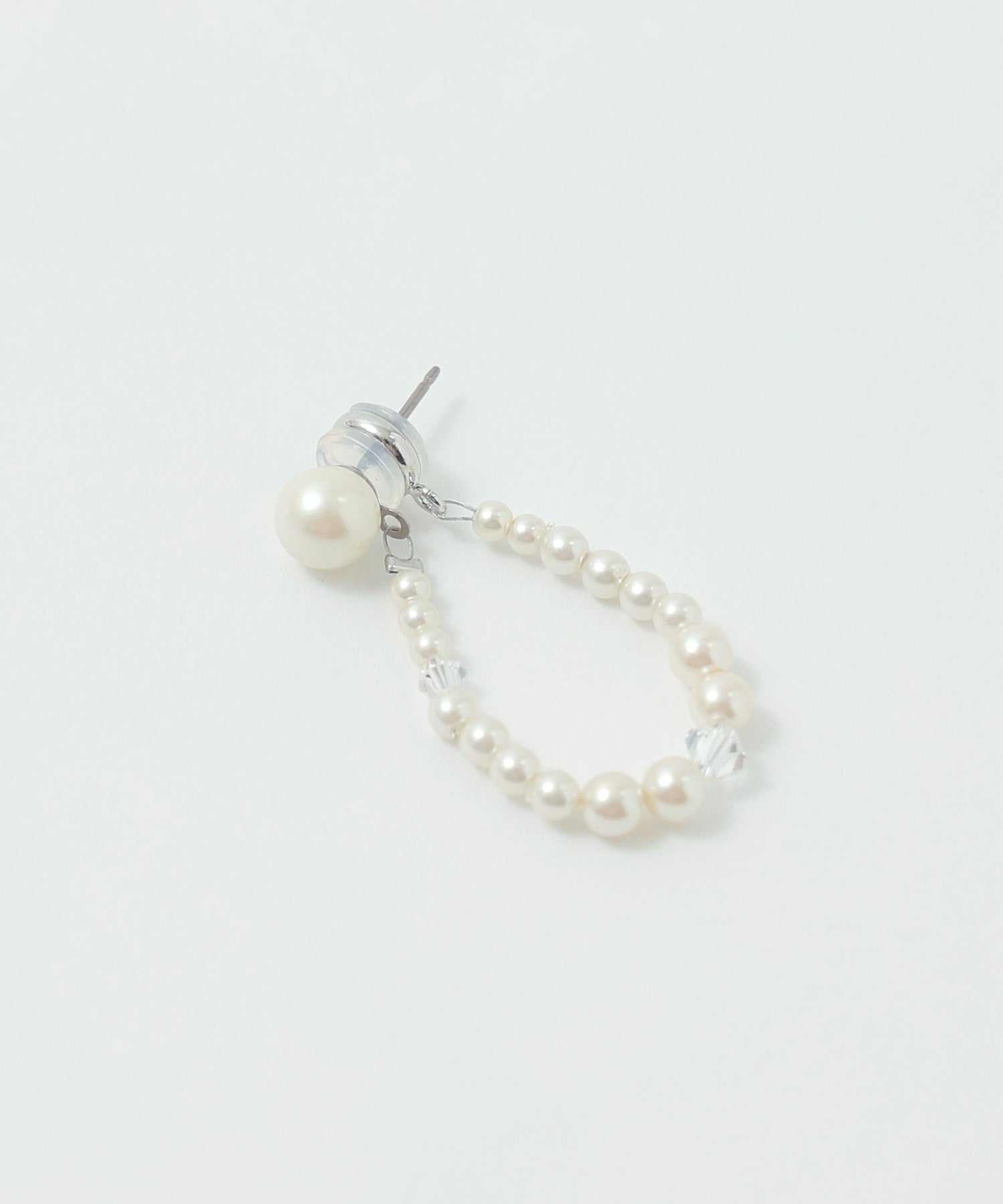 Rname パーティー ピアス 両耳 日本製 アクセサリー パール ロング リング ゆらゆら フェイクパール イミテーションパール ビジュー シルバー ドレス ワンピース シンプル 上品 結婚式 セレモニー 入園式 卒園式 入学式 卒業式 謝恩会 二次会 お呼ばれ 披露宴 オケージョン