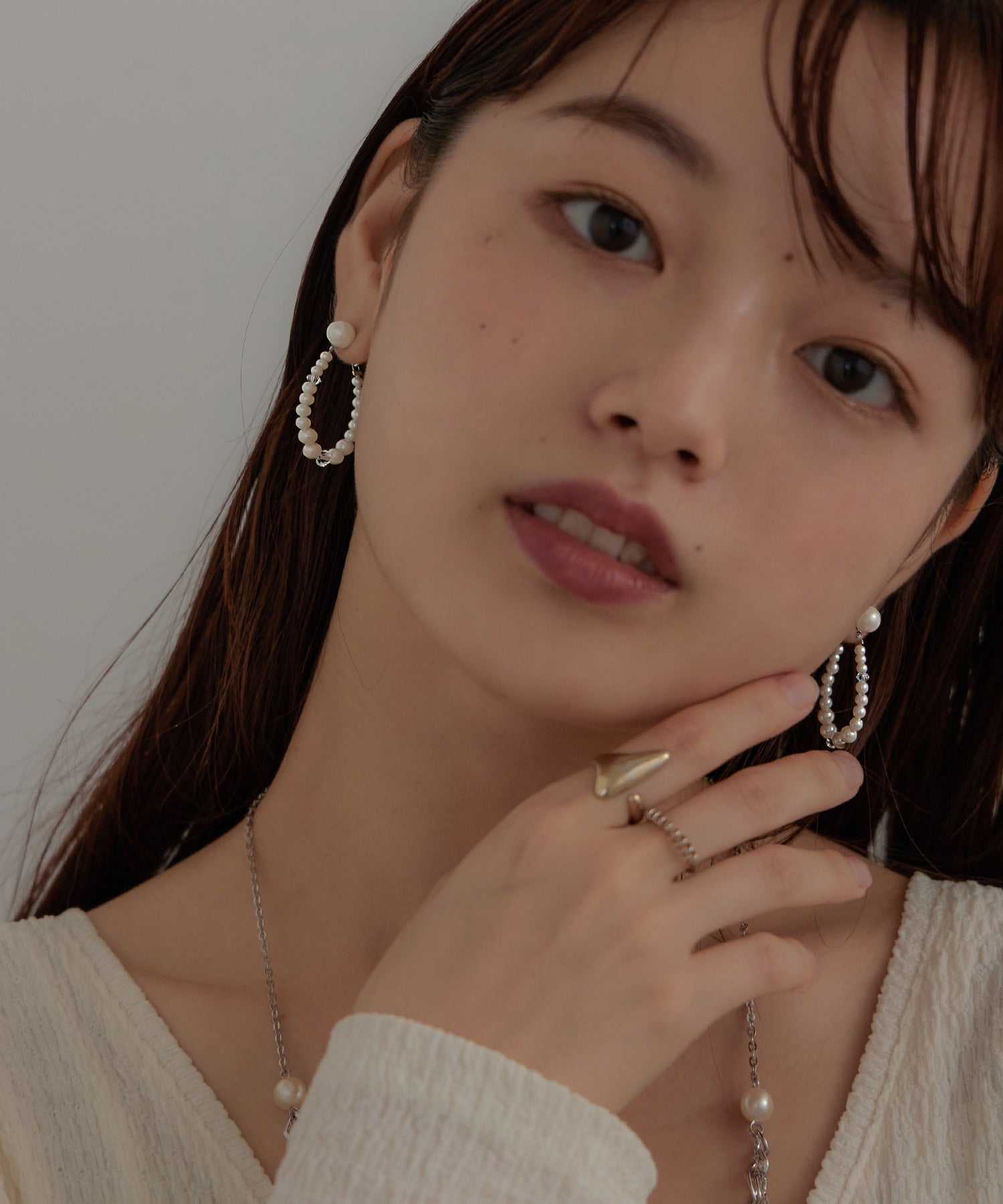 華やかなパールとさりげないビジューの組み合わせで、女性らしさをアップしてくれます。