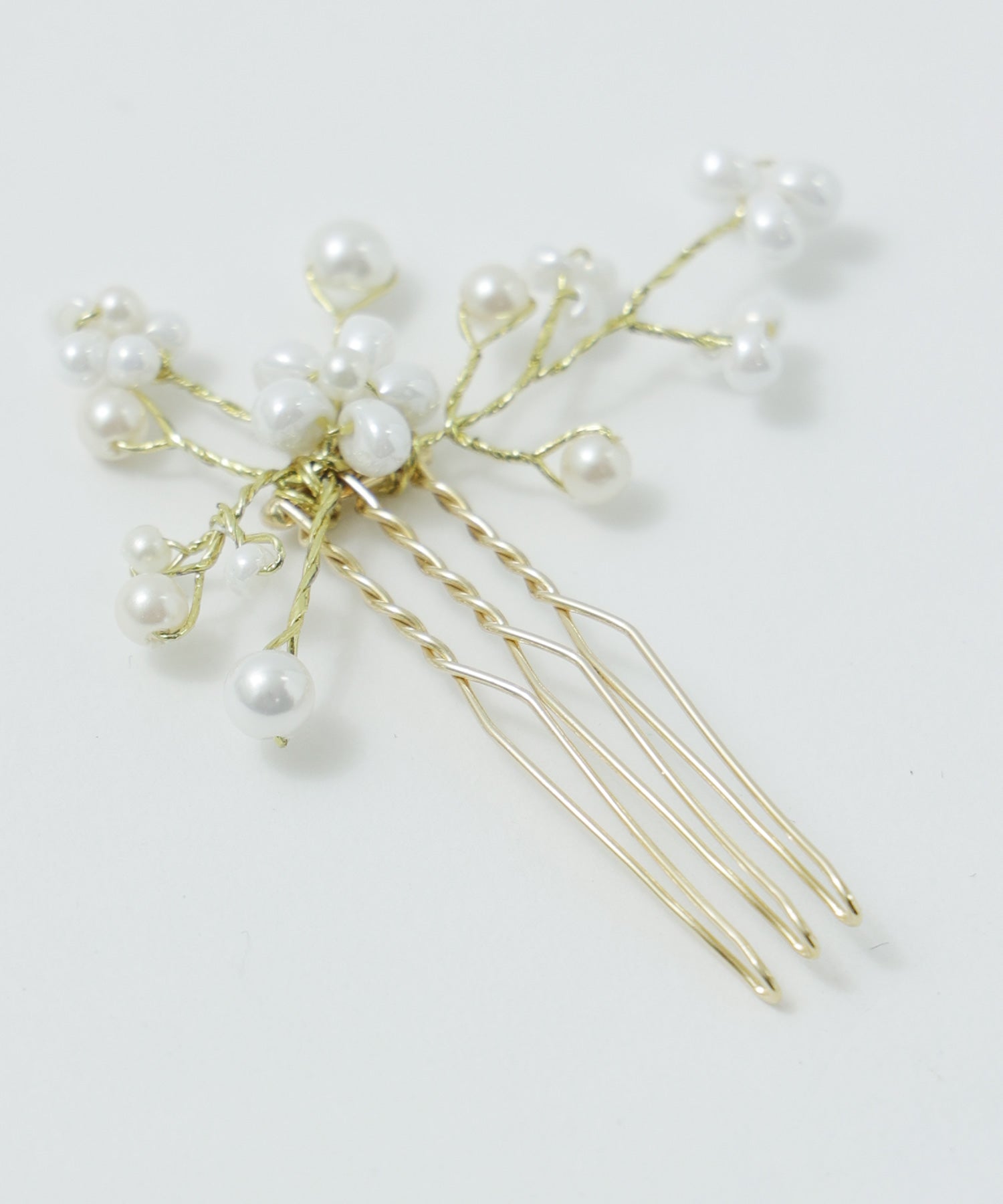 艶めく小粒パールでデザインされたヘアアクセサリー。