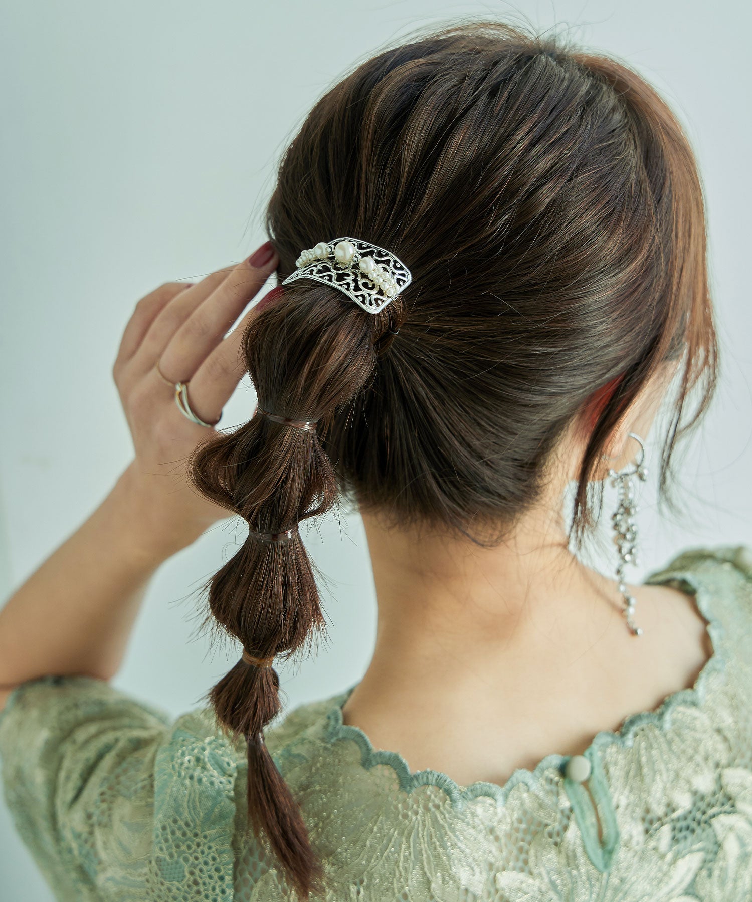Rname パーティー ドレス ポニーフック ヘアカフ ヘアピン クリップ バレッタ コーム ひとつ結び ヘアアクセサリー パール ゴールド シルバー 結婚式 披露宴 二次会 成人式 卒業式 入学式 お呼ばれ 女子会 セレモニー オケージョン アレンジ ウェディング 着物 髪飾り ブライダル