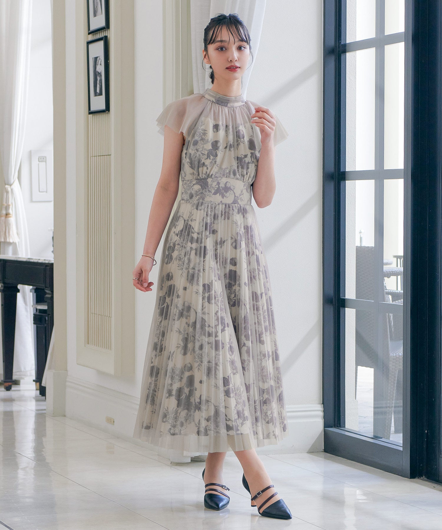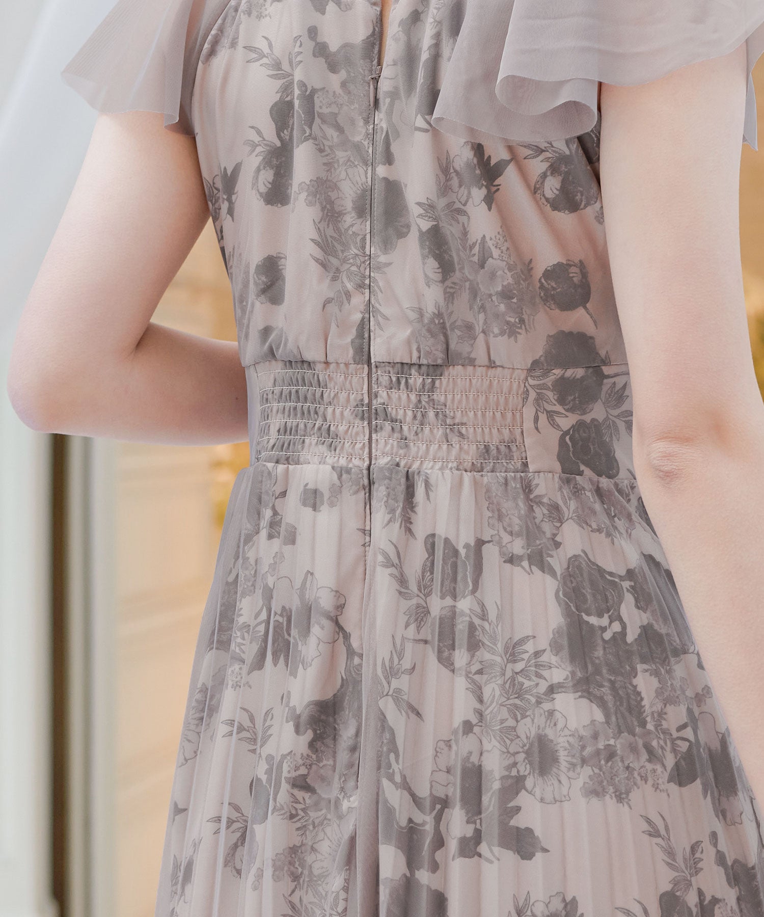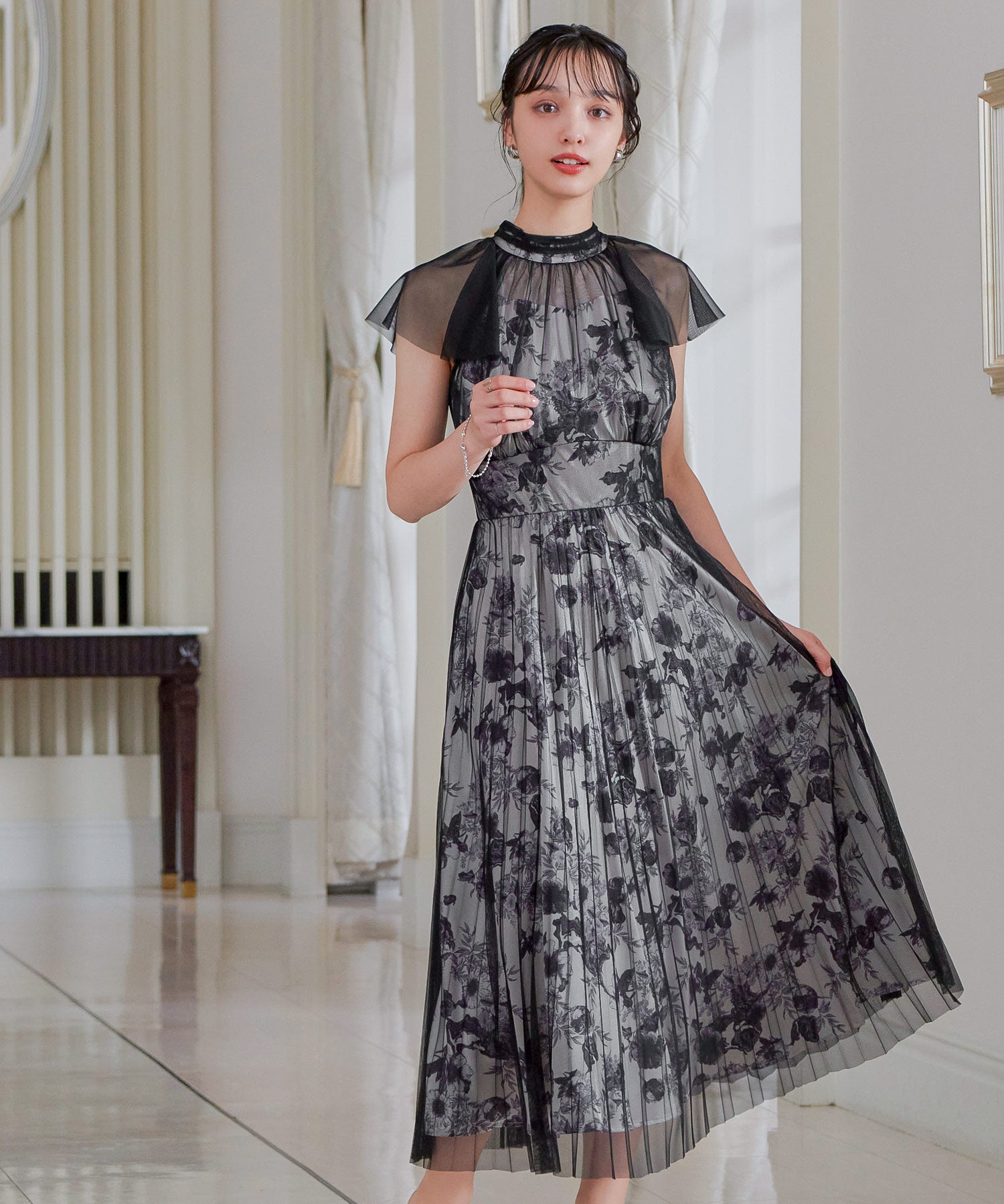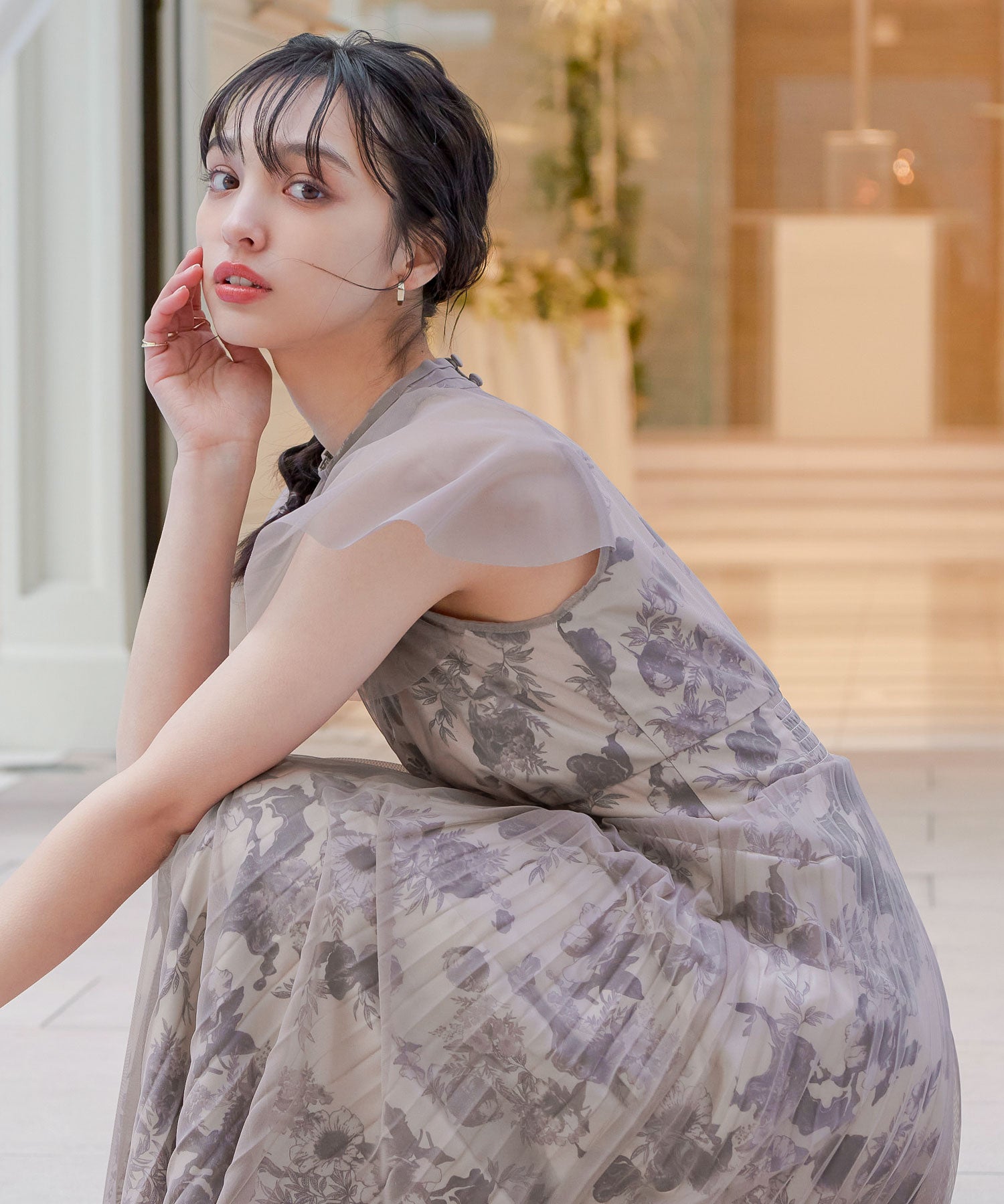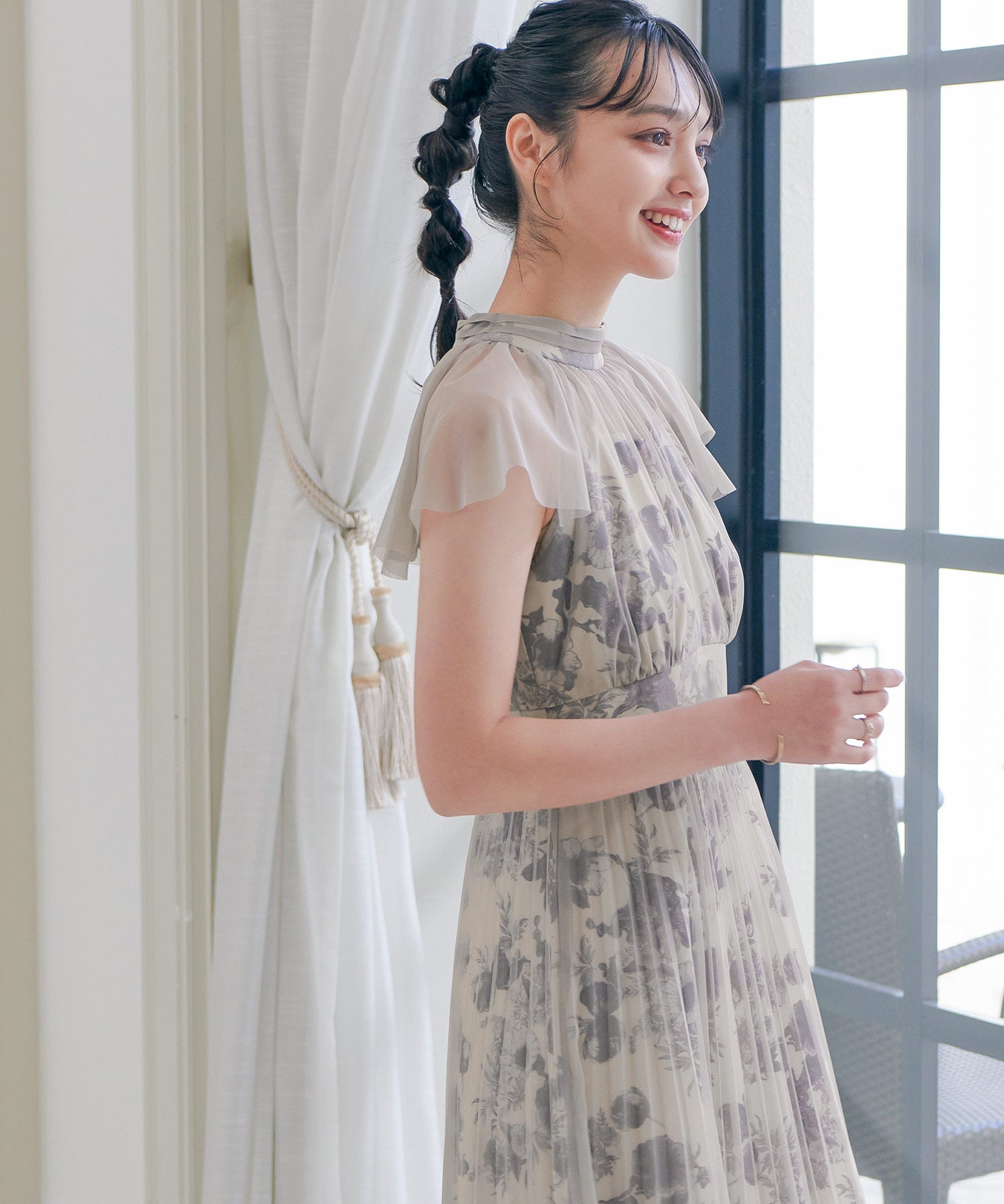 Zname オーバーチュールフラワープリントプリーツパーティードレス