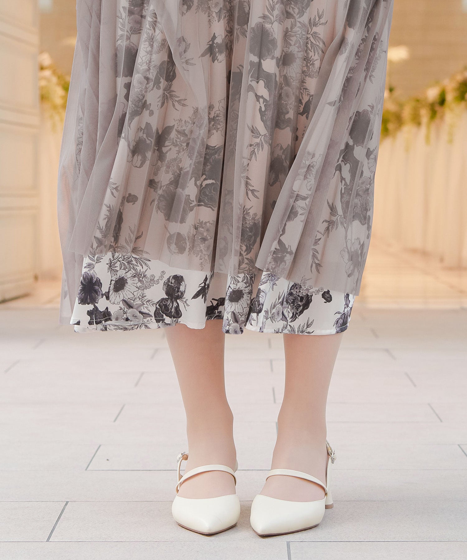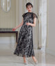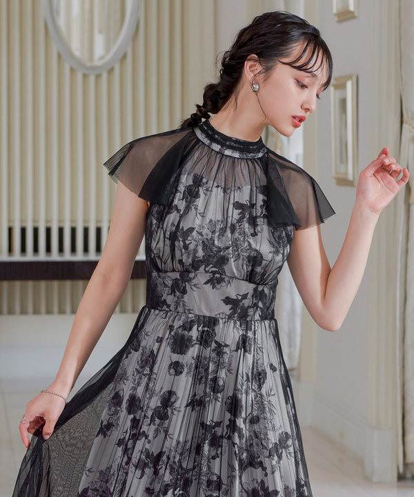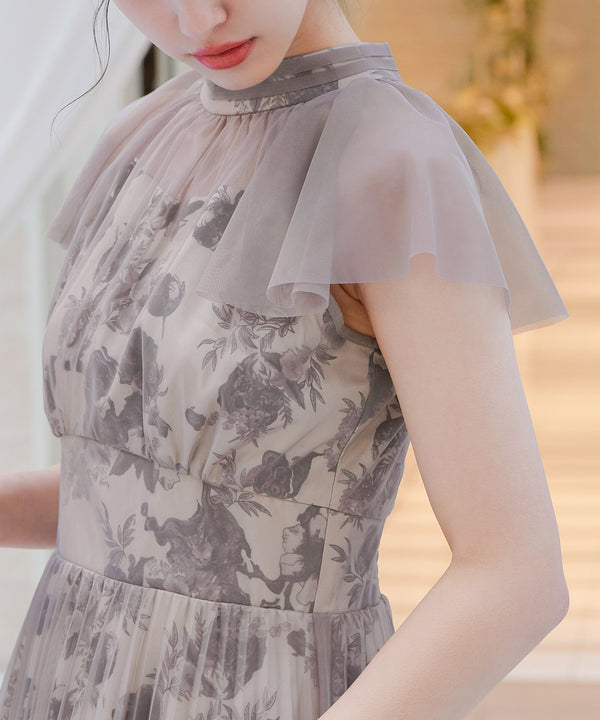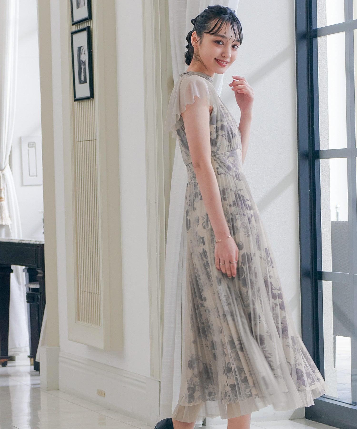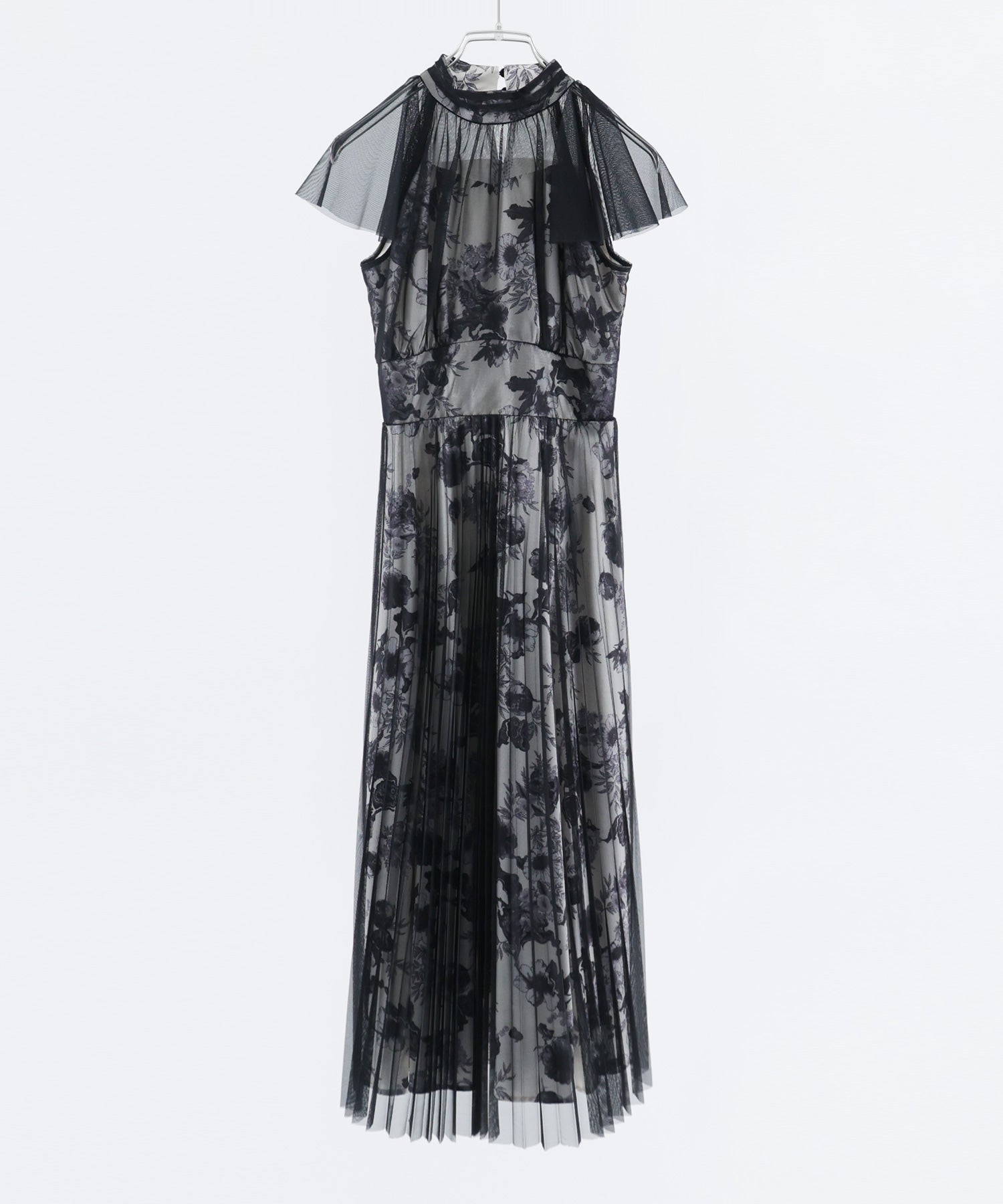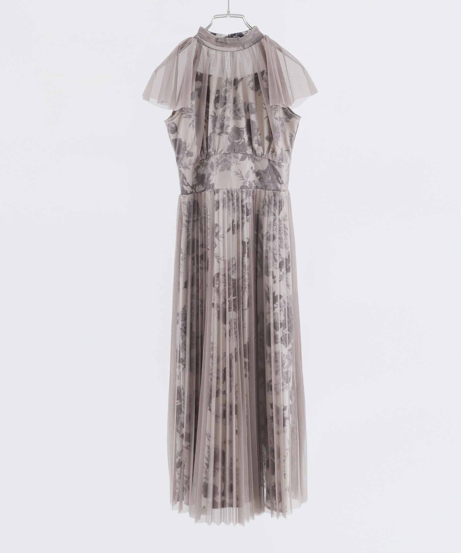 Zname オーバーチュールフラワープリントプリーツパーティードレス