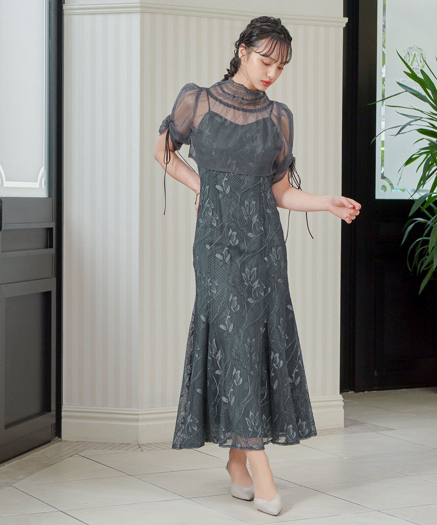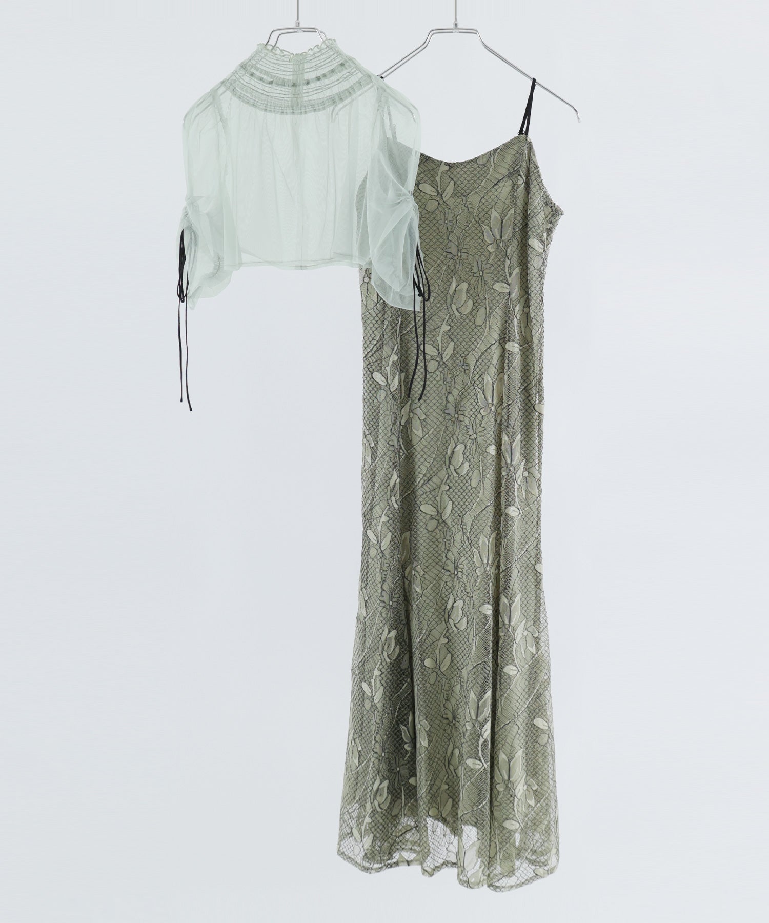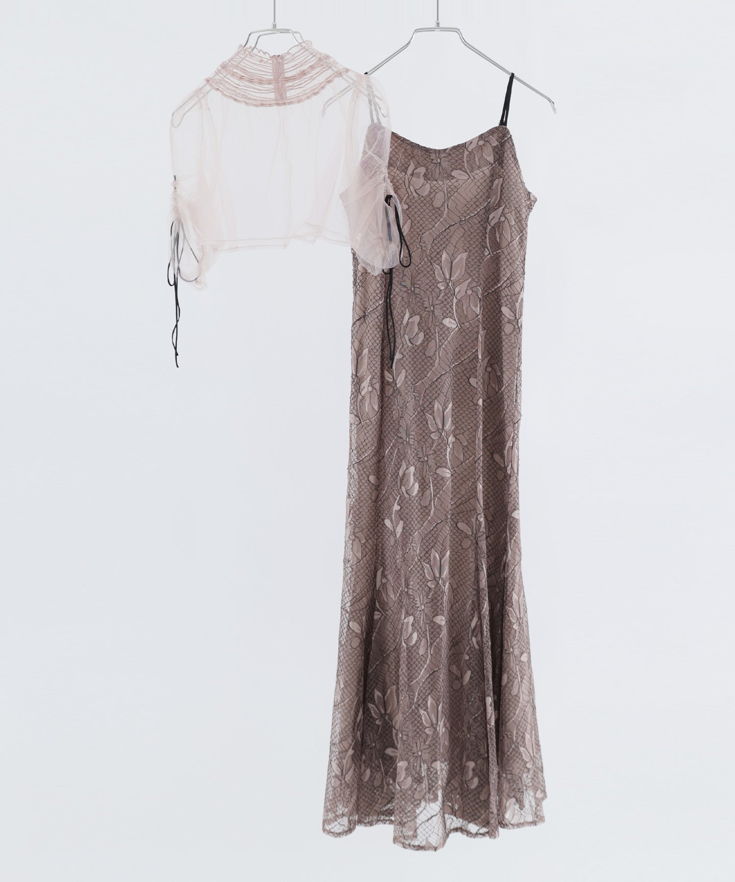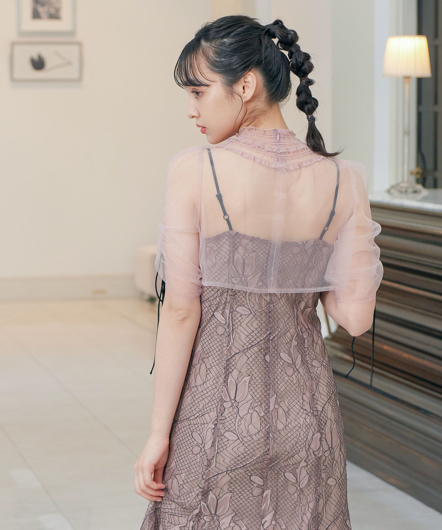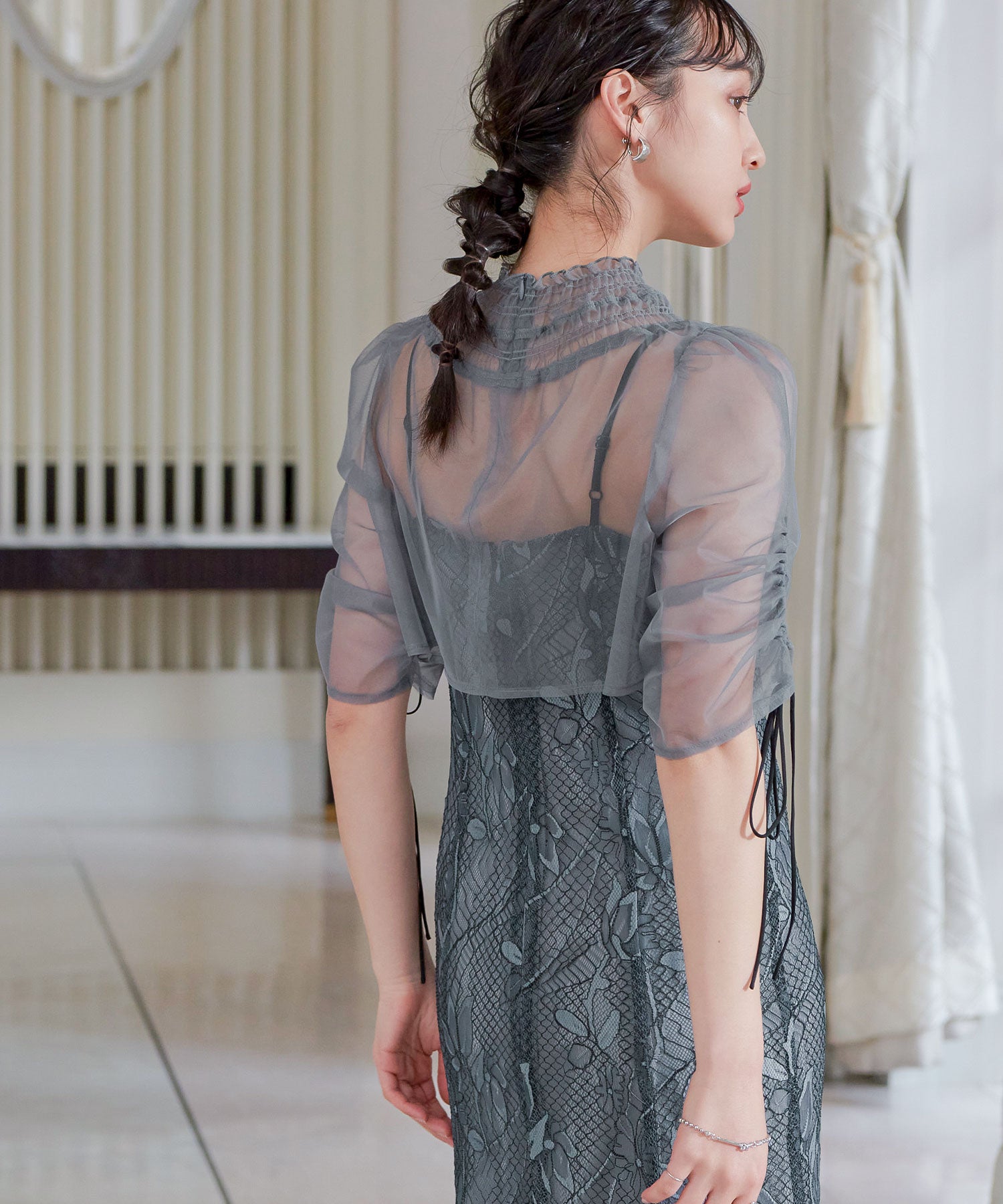 透け感あるチュール素材のデザインボレロを組み合わせた