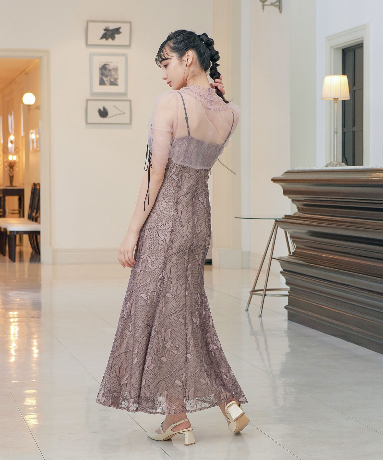 Zname チュールボレロレースキャミワンピレイヤードパーティードレス