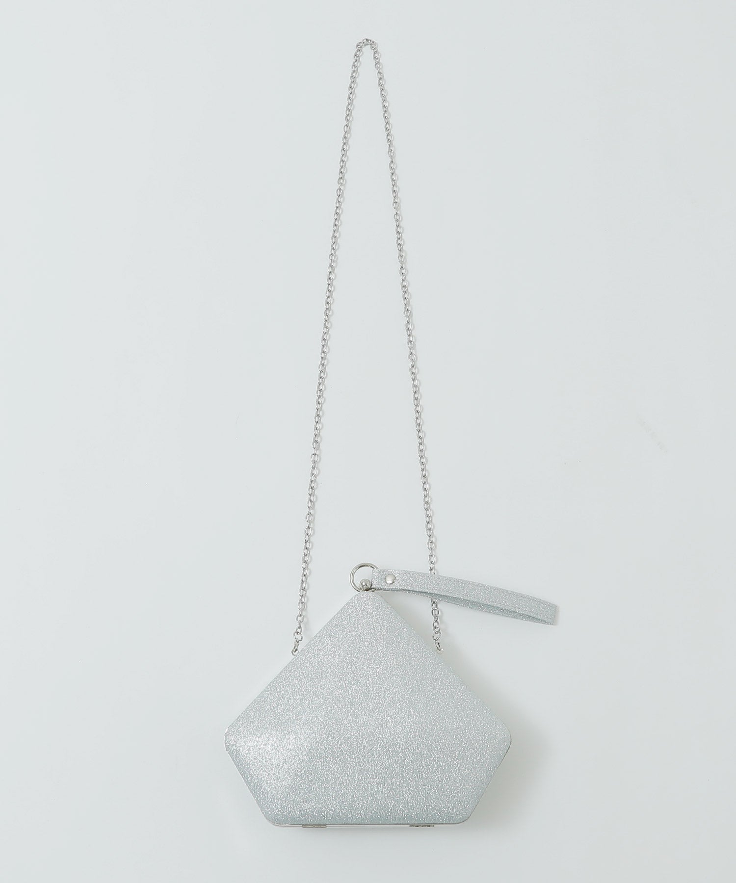 ラメコーティングのツヤが都会的な印象を与え、五角形の形状でアクセントに。