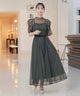 Rname 結婚式 ワンピース パーティードレス メッシュ ベルト付き ボリューム袖 ロング丈 袖あり 半袖 五分袖 フレア シンプル 無地 ロングドレス オケージョン 1.5次会 春夏 秋冬 二次会 謝恩会 成人式 同窓会 女子会 お呼ばれ 入学式 卒業式 デイリー使い 黒 ベージュ ブラウン