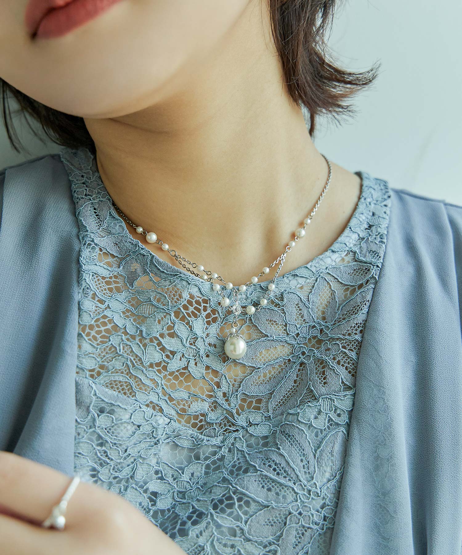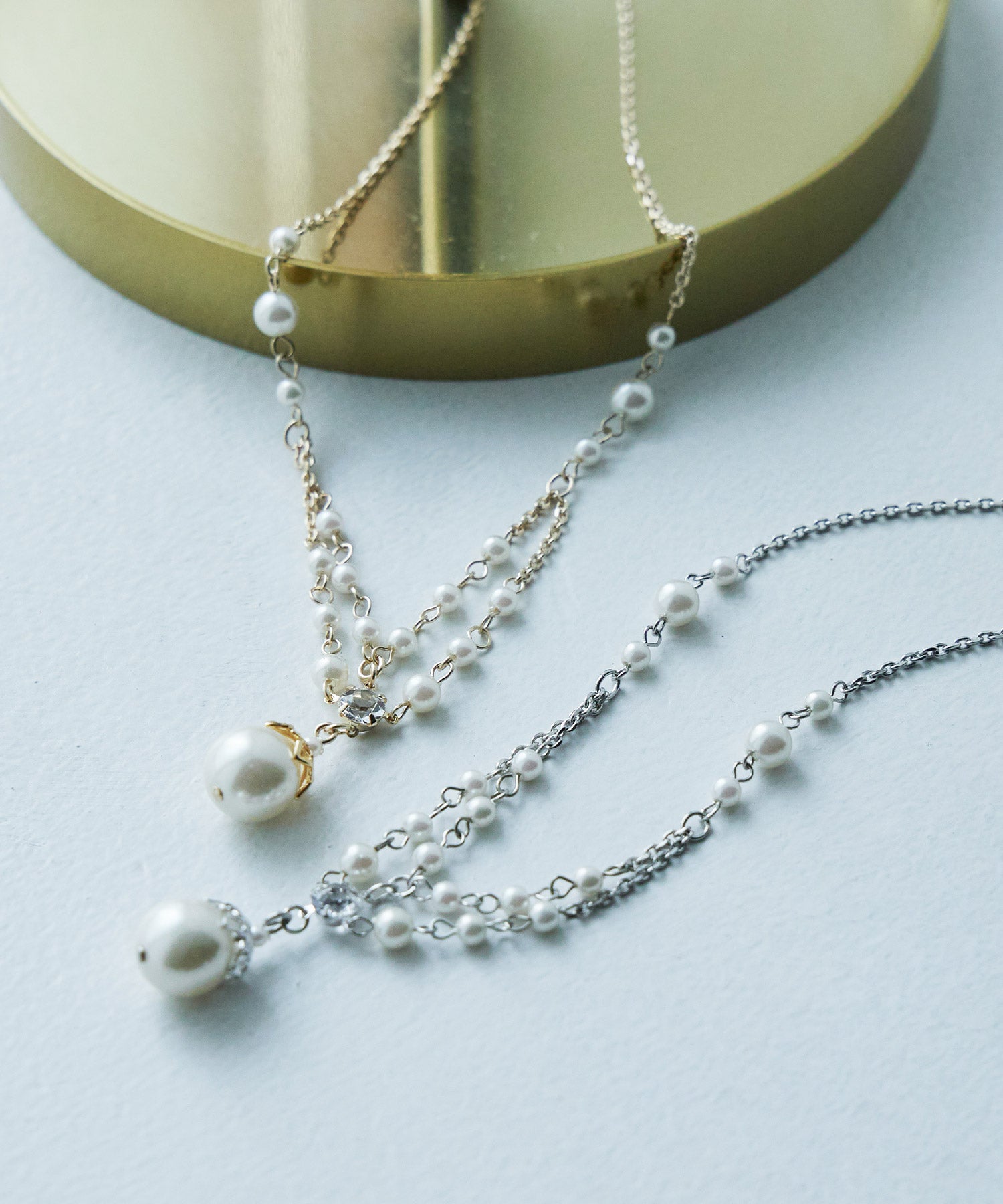 程よい大きさのパールが、デコルテラインに華やかな印象を与えてくれます。