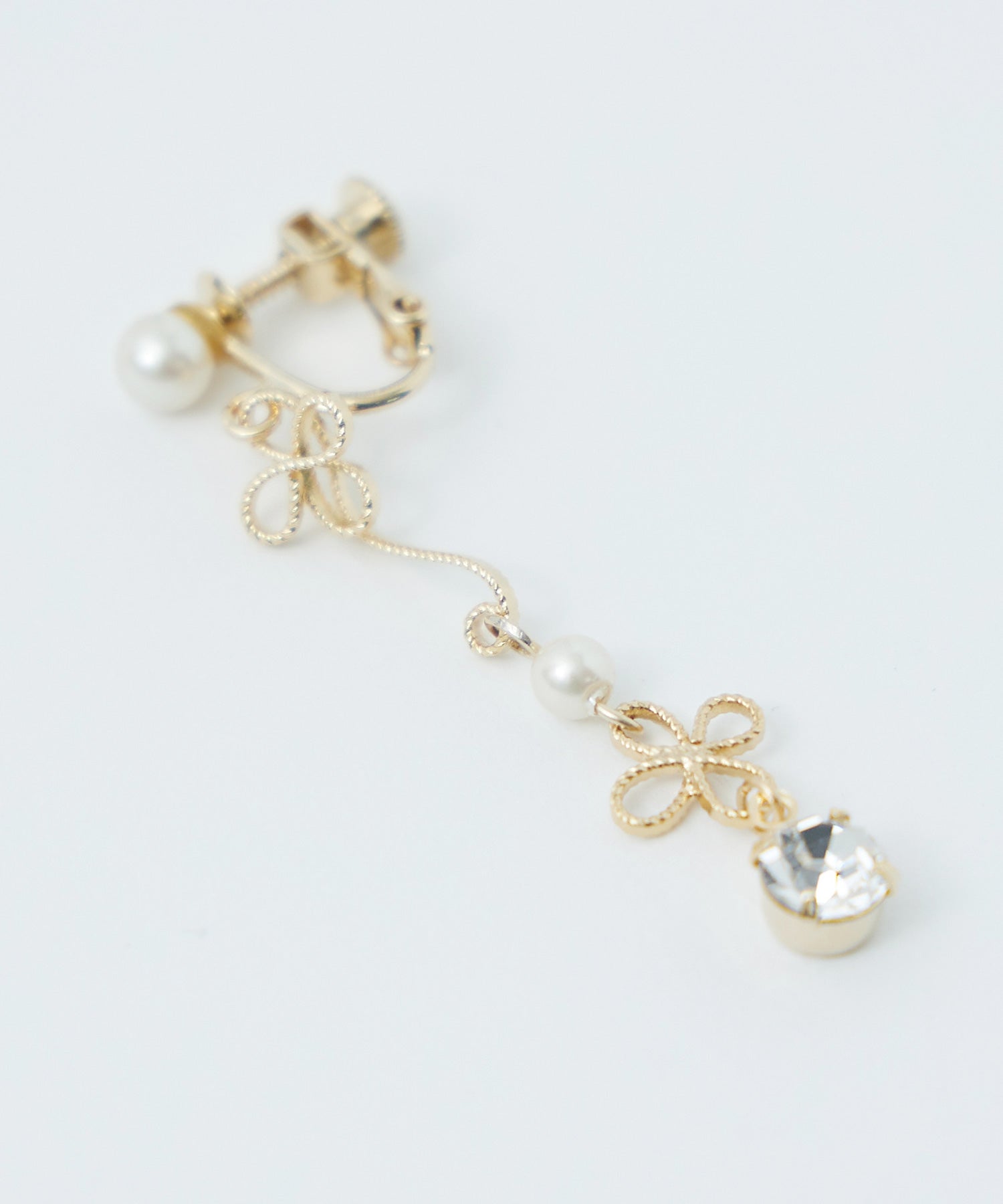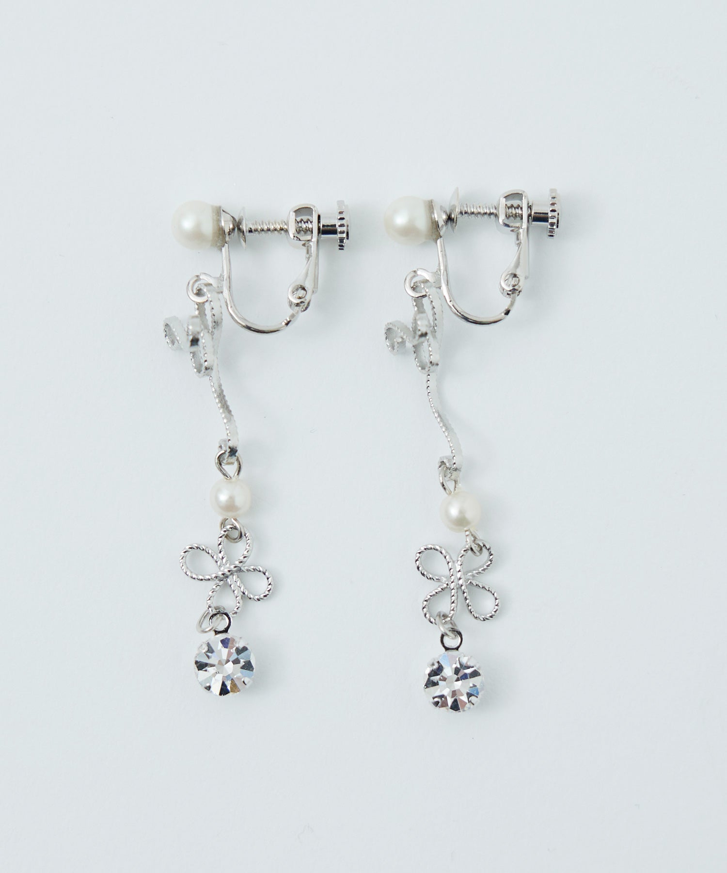 Rname パーティー イヤリング 両耳 アクセサリー フラワーモチーフ パール ビジュー ロング 華奢 ゴールド シルバー ドレス ジュエリー 結婚式 セレモニー 入園式 卒園式 入学式 卒業式 謝恩会 二次会 お呼ばれ 披露宴 成人式 オケージョン 2次会 プレゼント ギフト