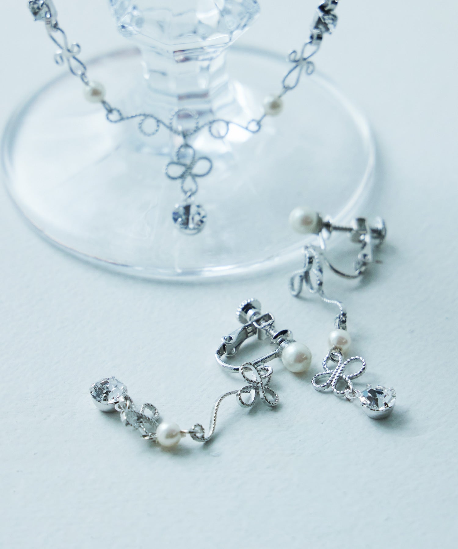 程よい大きさのストーンとフラワーモチーフが、顔周りに華やかな印象を与えてくれます。