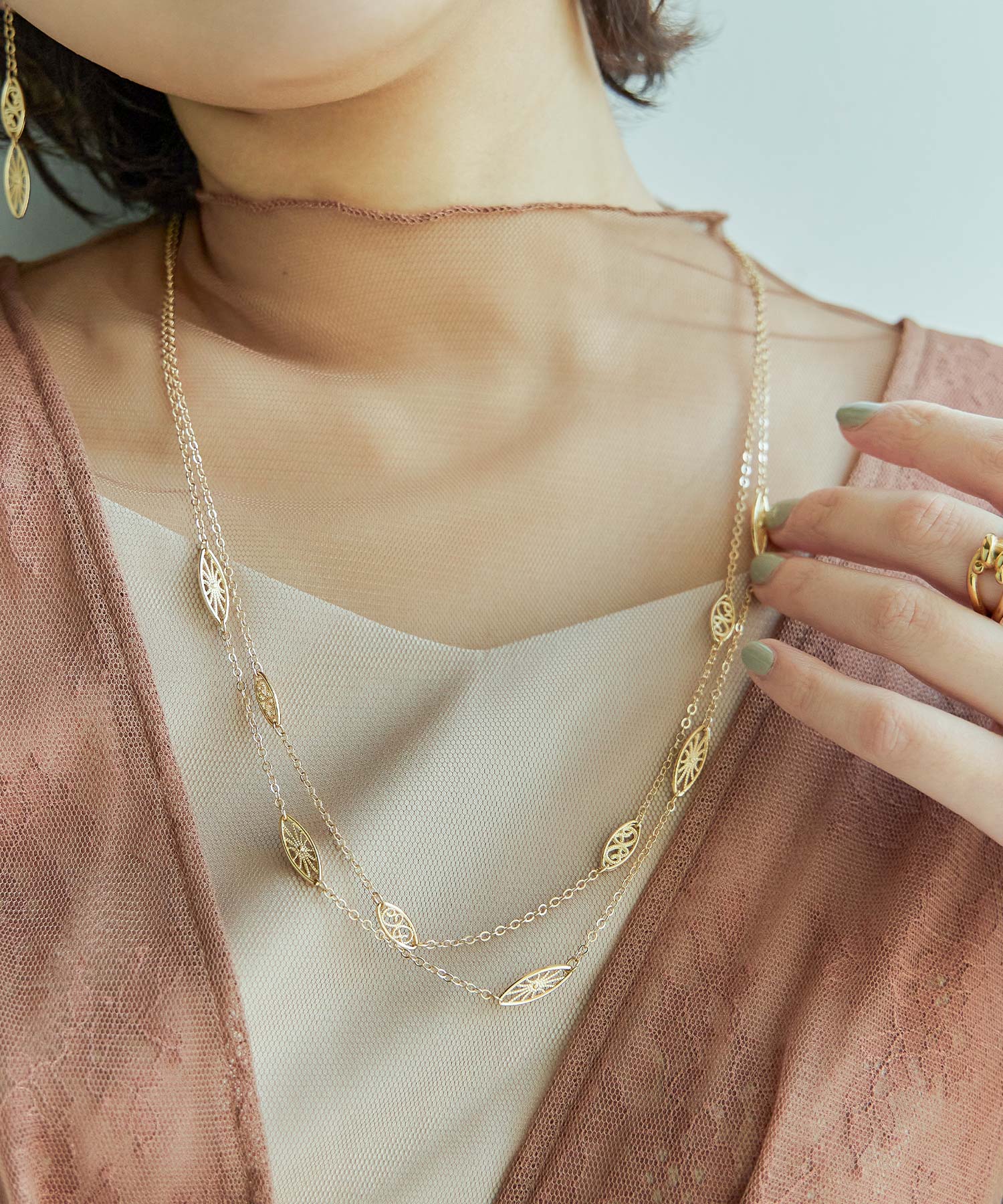Rname ネックレス レディース 2連 リーフモチーフ 結婚式 アクセサリー ロング チェーン 華奢 シンプル ジュエリー ゴールド シルバー パーティー 大人 フォーマル 二次会 成人式 謝恩会 お呼ばれ パーティ 卒業式 オケージョン ドレス プレゼント ギフト 日本製