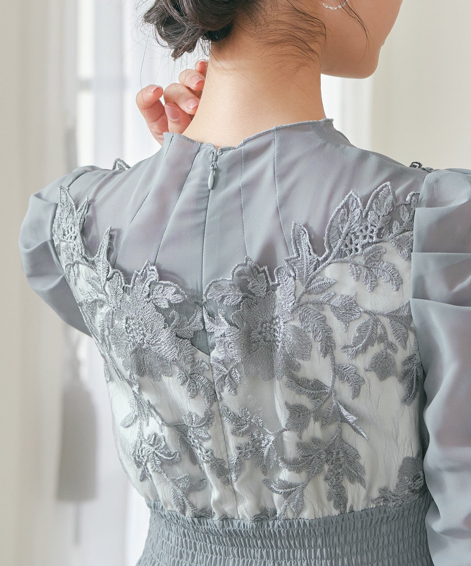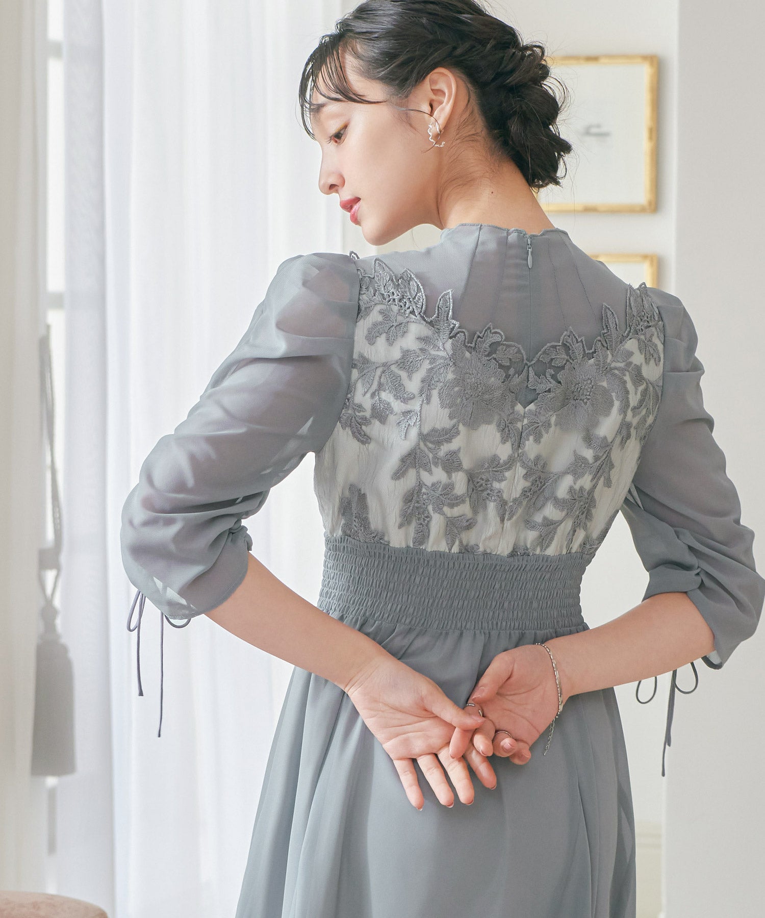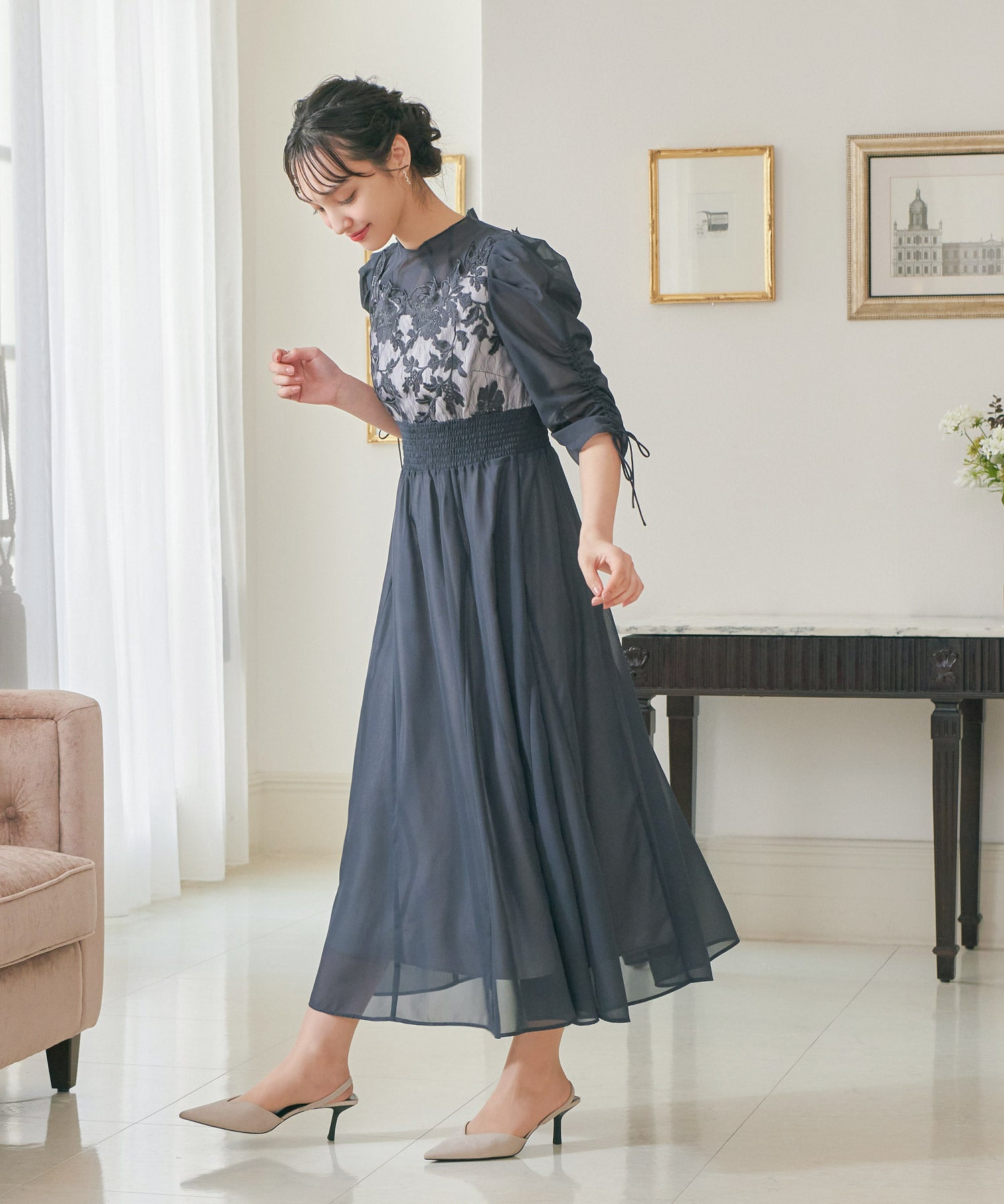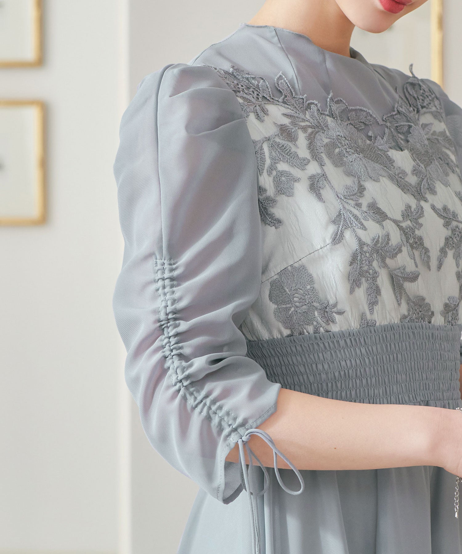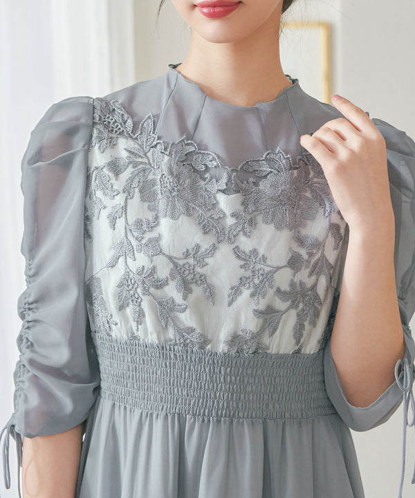 程良い透け感のオーガンジーパーティードレス。