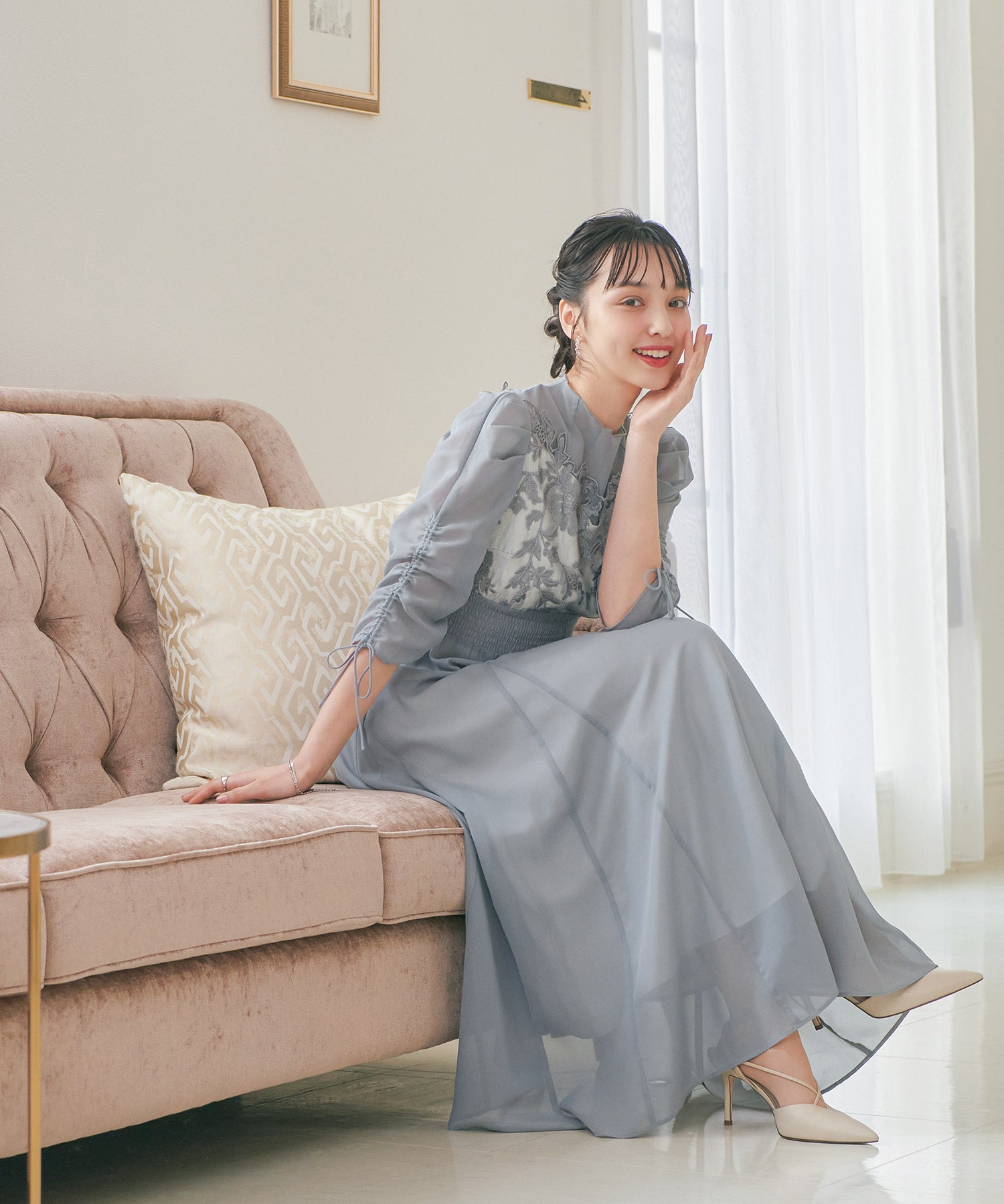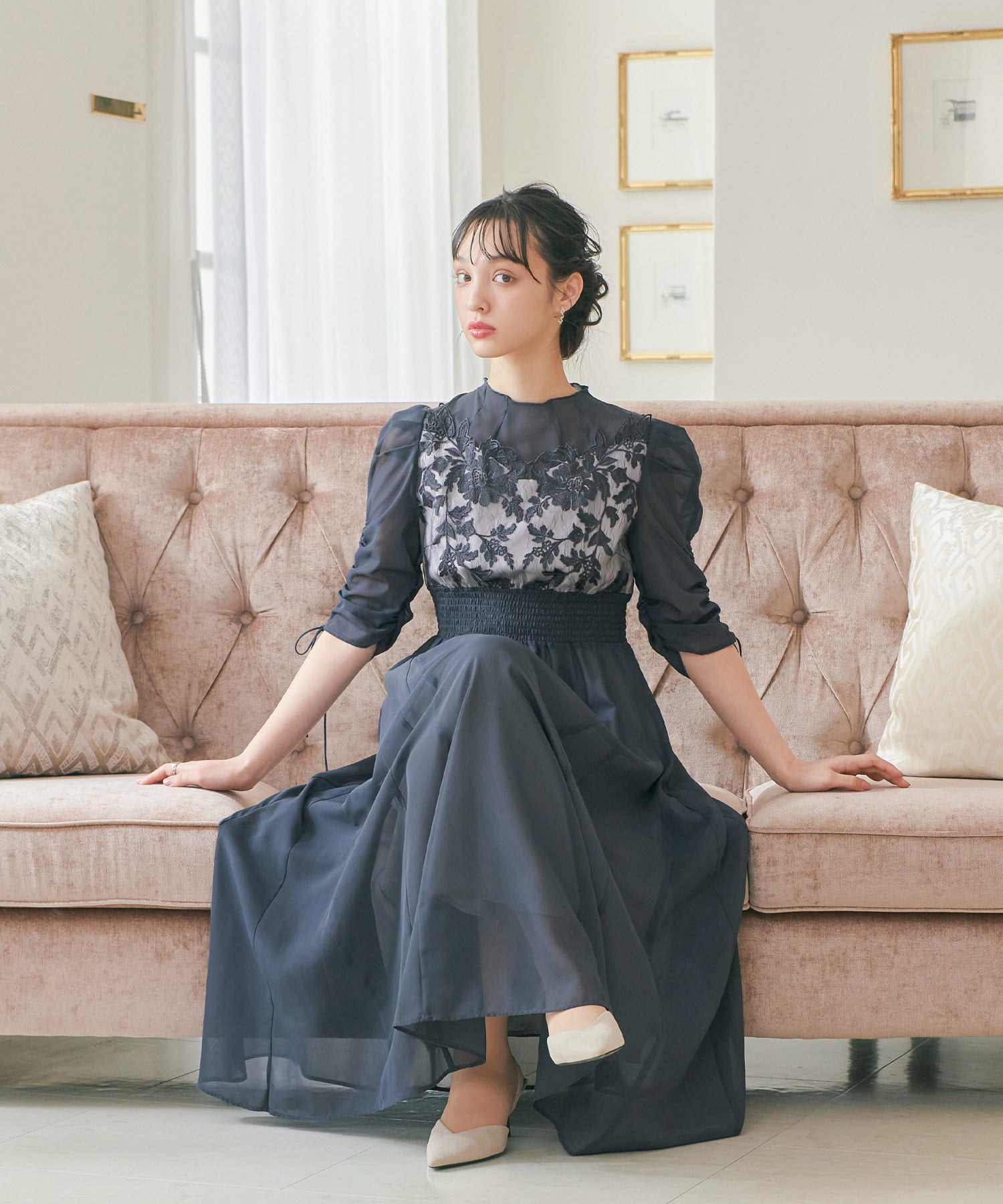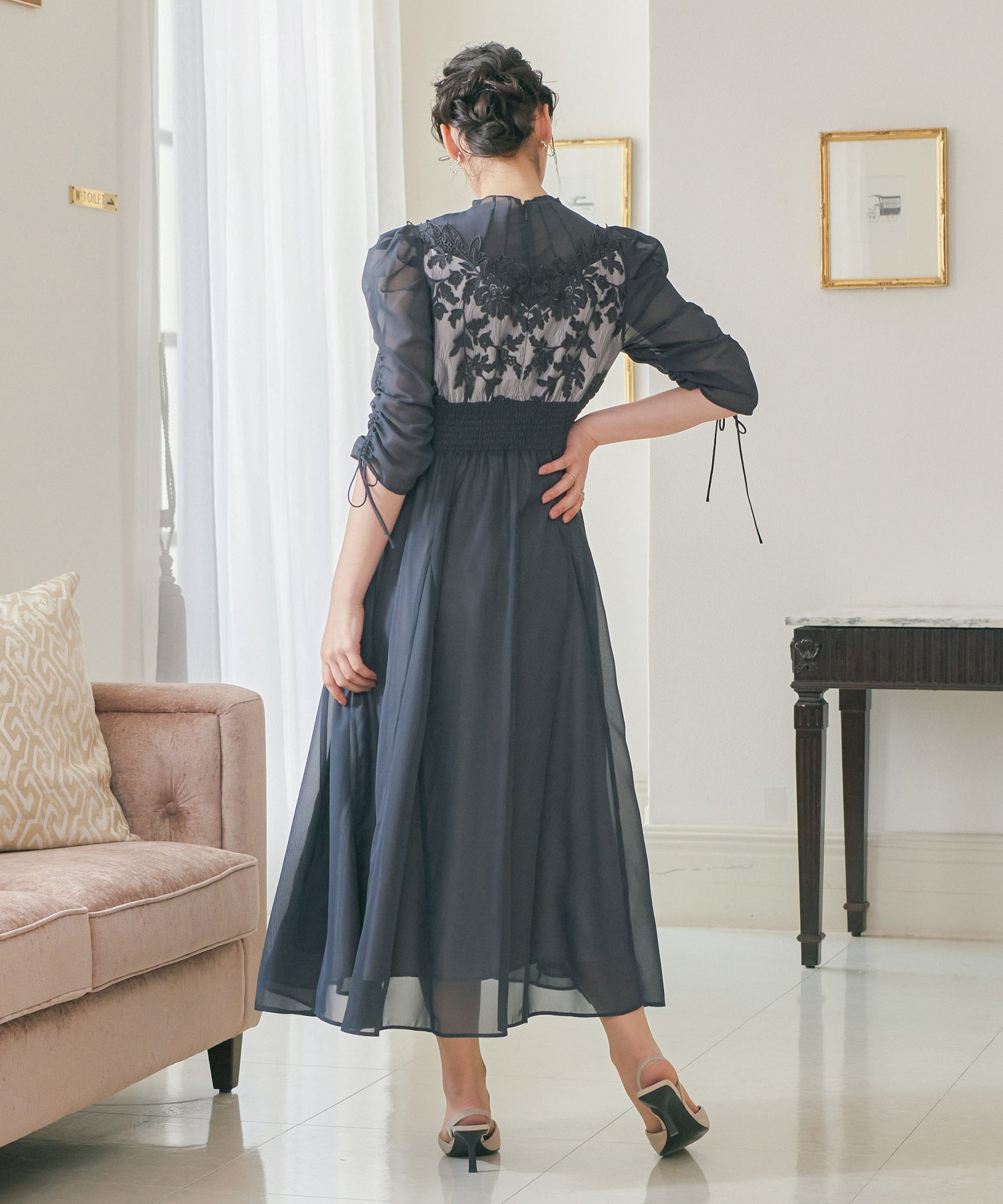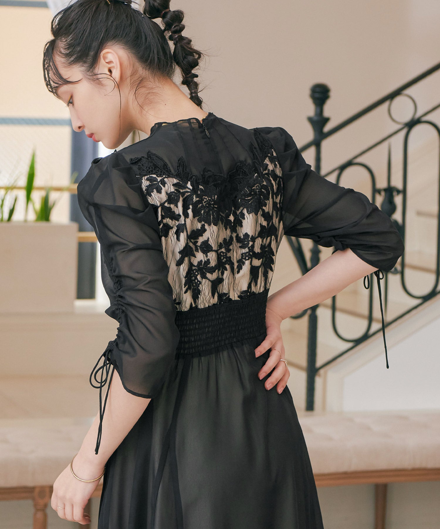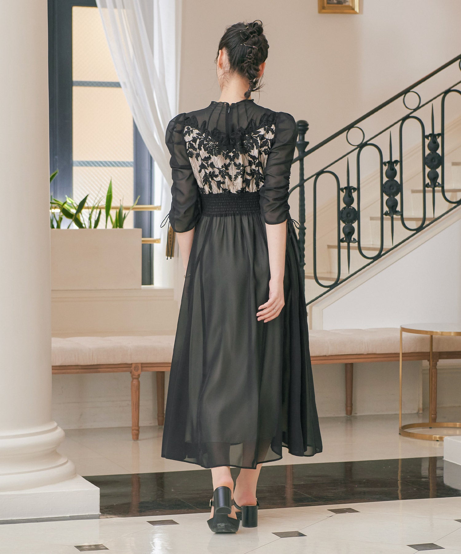 程良い透け感のオーガンジーパーティードレス。
