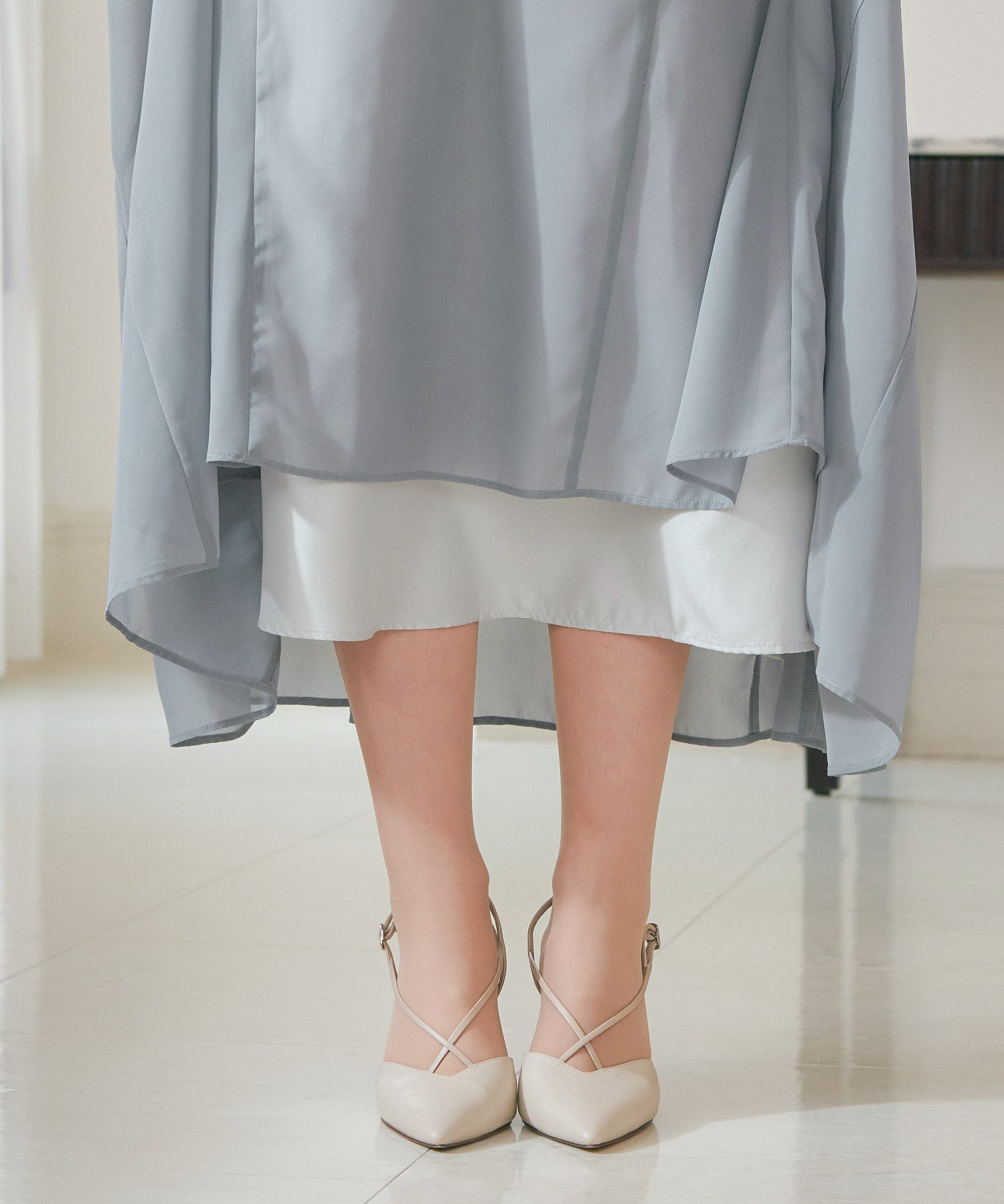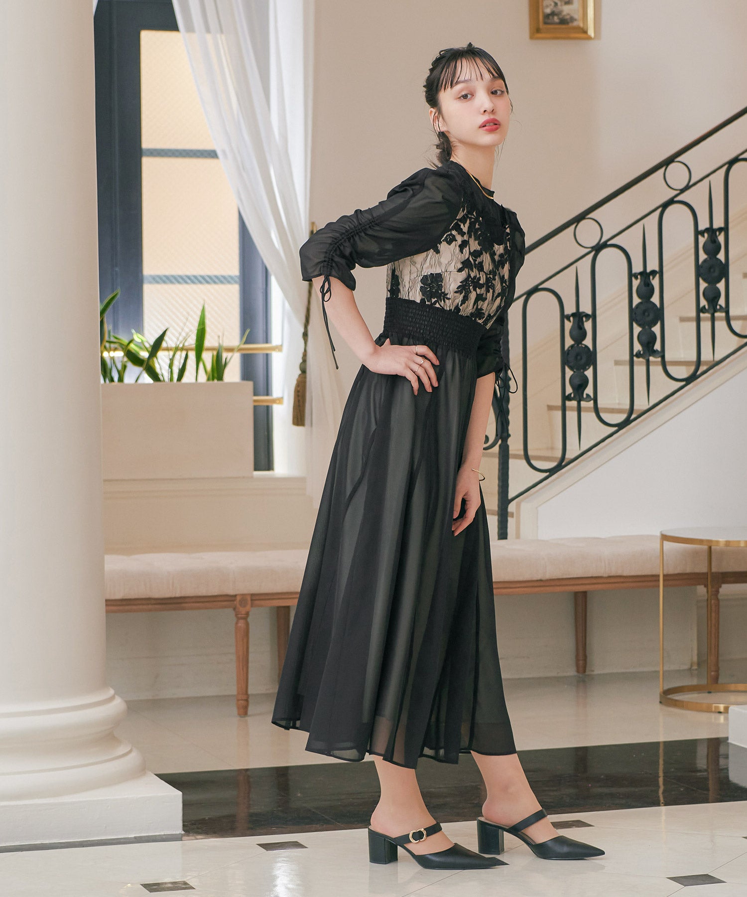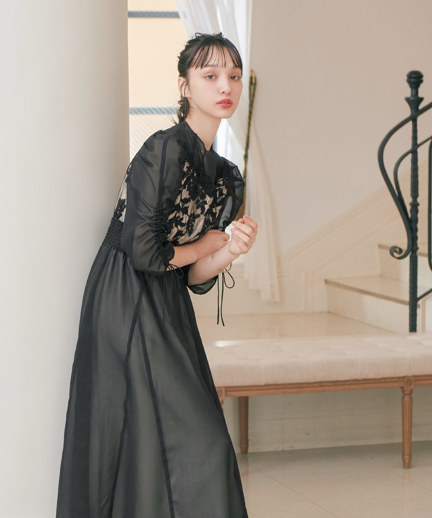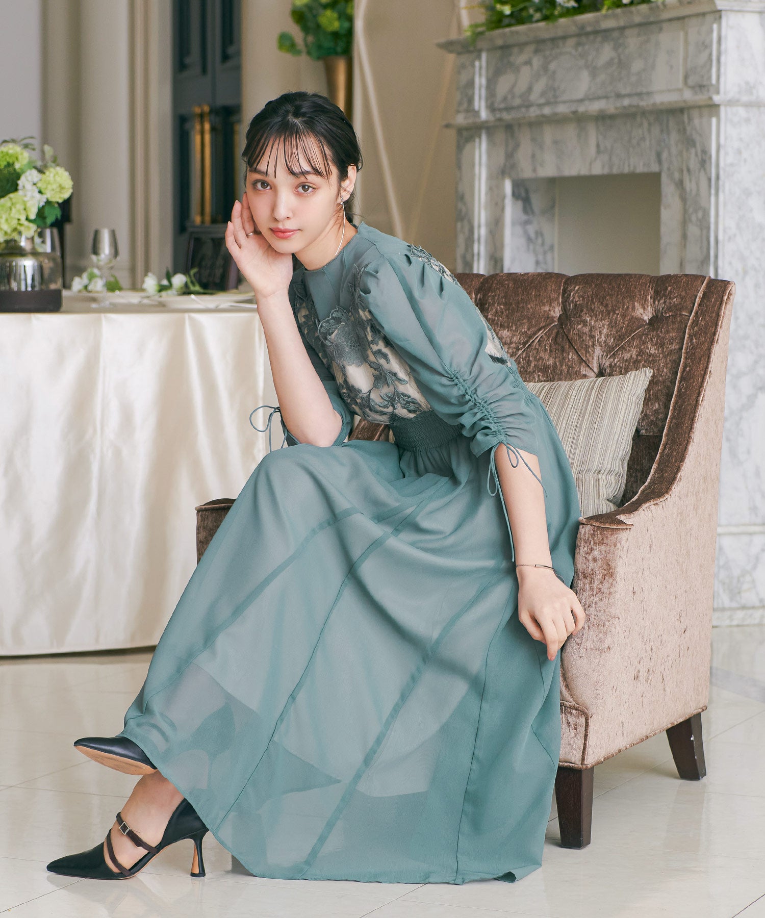 程良い透け感のオーガンジーパーティードレス。