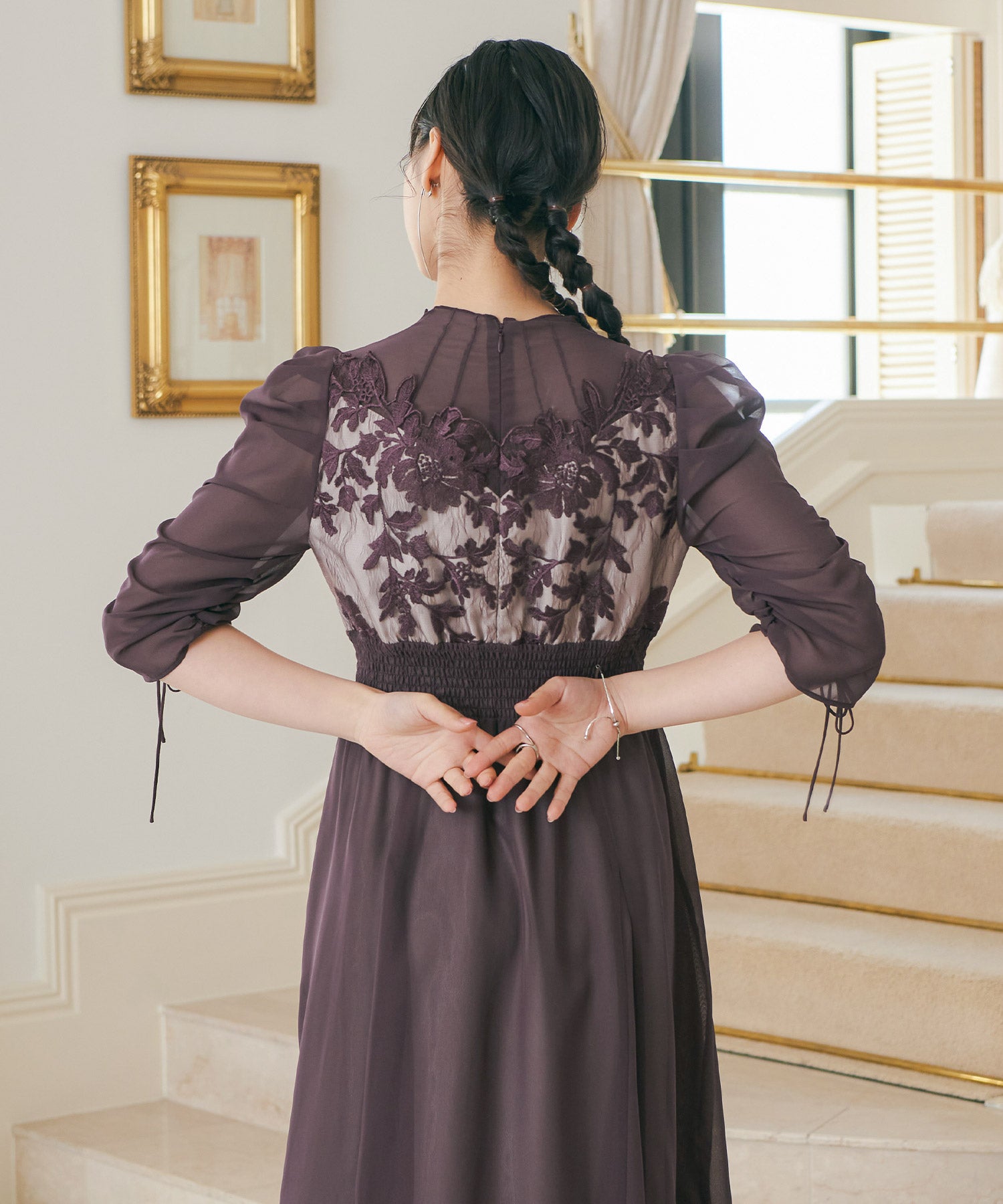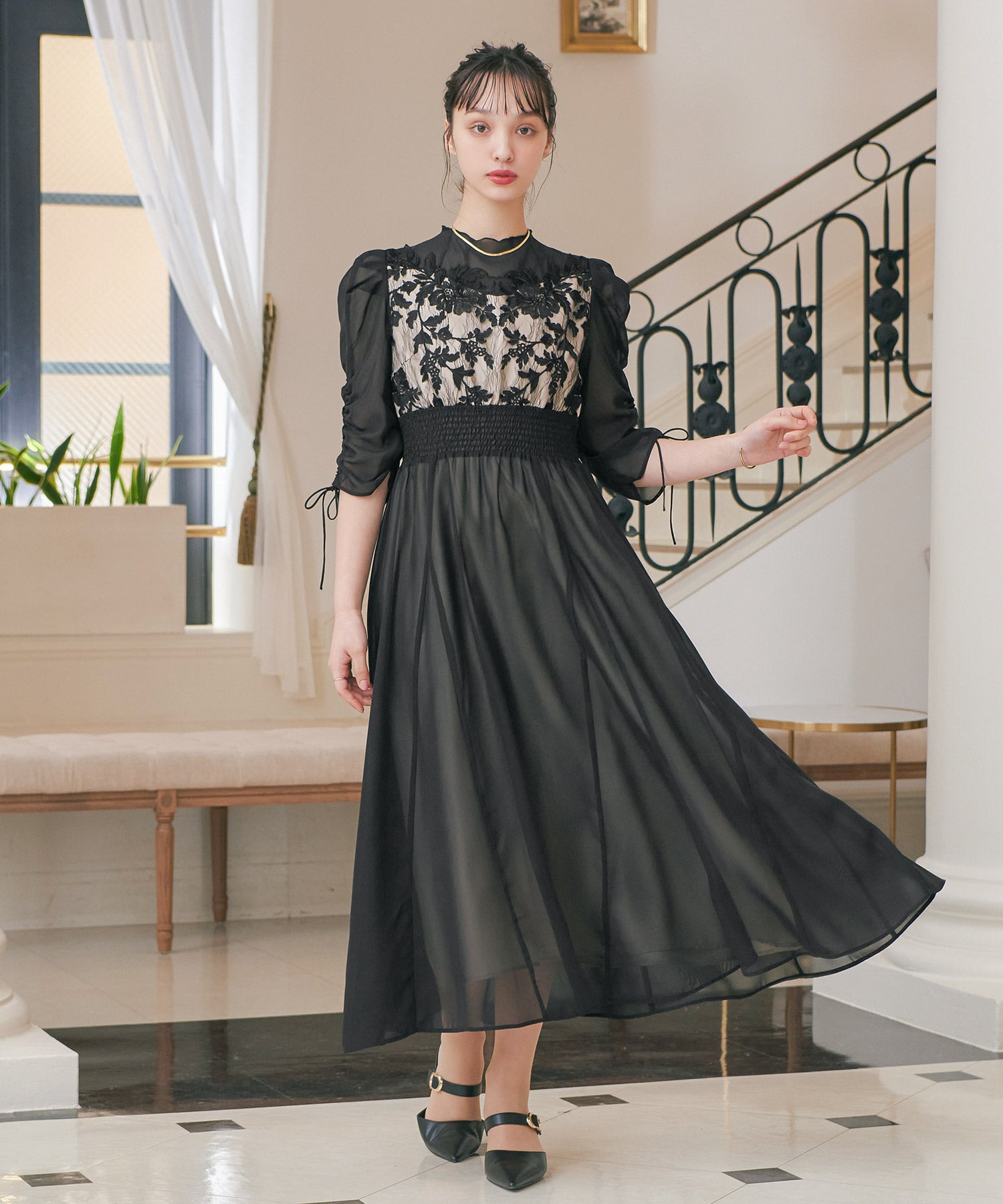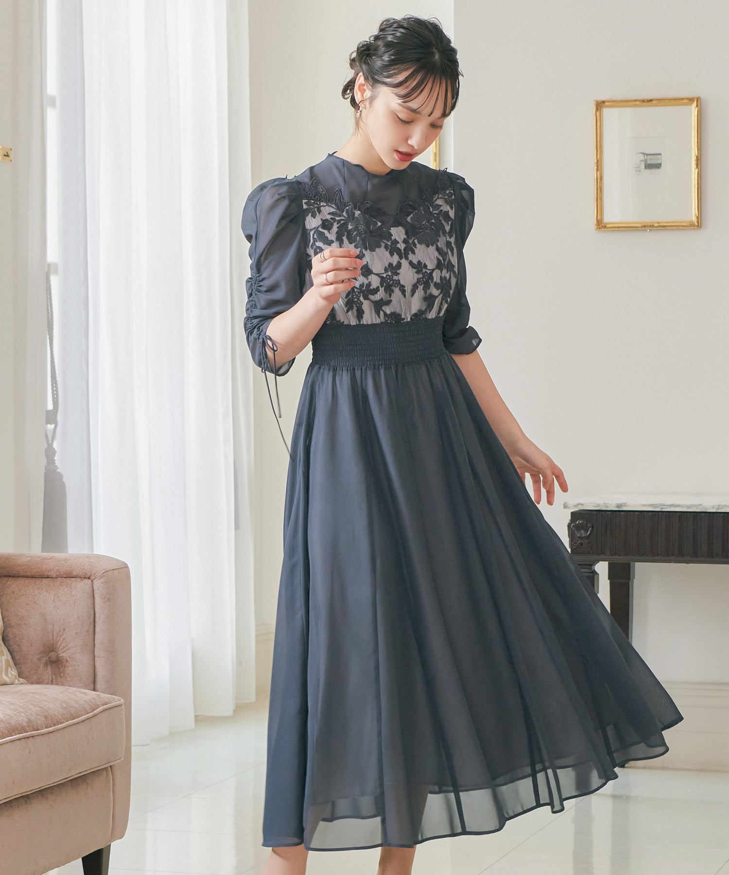 Zname フラワーレース×オーガンジーパーティードレス